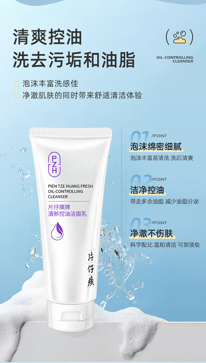 片仔癀【两支装】片仔癀牌清新控油洁面乳100g 保湿清洁可卸妆洗面奶 控油洁面乳100g*两支