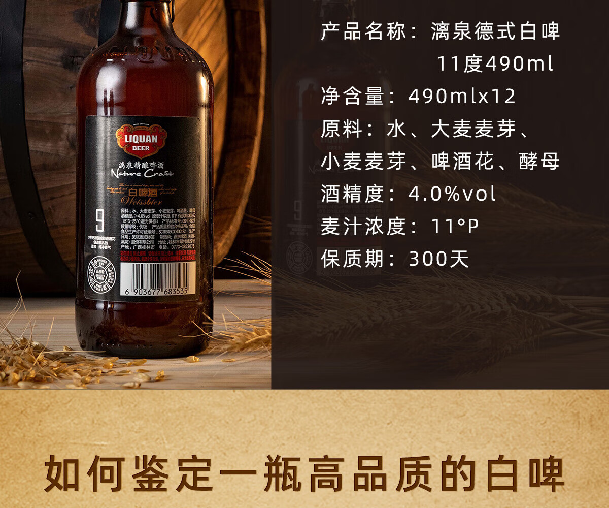 漓泉精酿啤酒 精酿白啤490ml*12瓶diy定制聚餐团建年会送礼啤酒 漓泉精酿定制款 490mL 12瓶 490ml*1箱