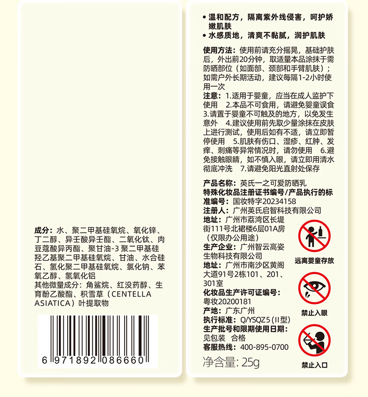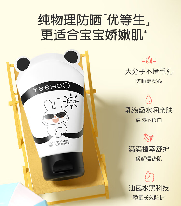 英氏(YEEHOO)儿童防晒霜宝宝专用夏季防晒乳液0岁可用婴儿红晒伤隔离紫外线 【到手3瓶】儿童防晒霜25g*3