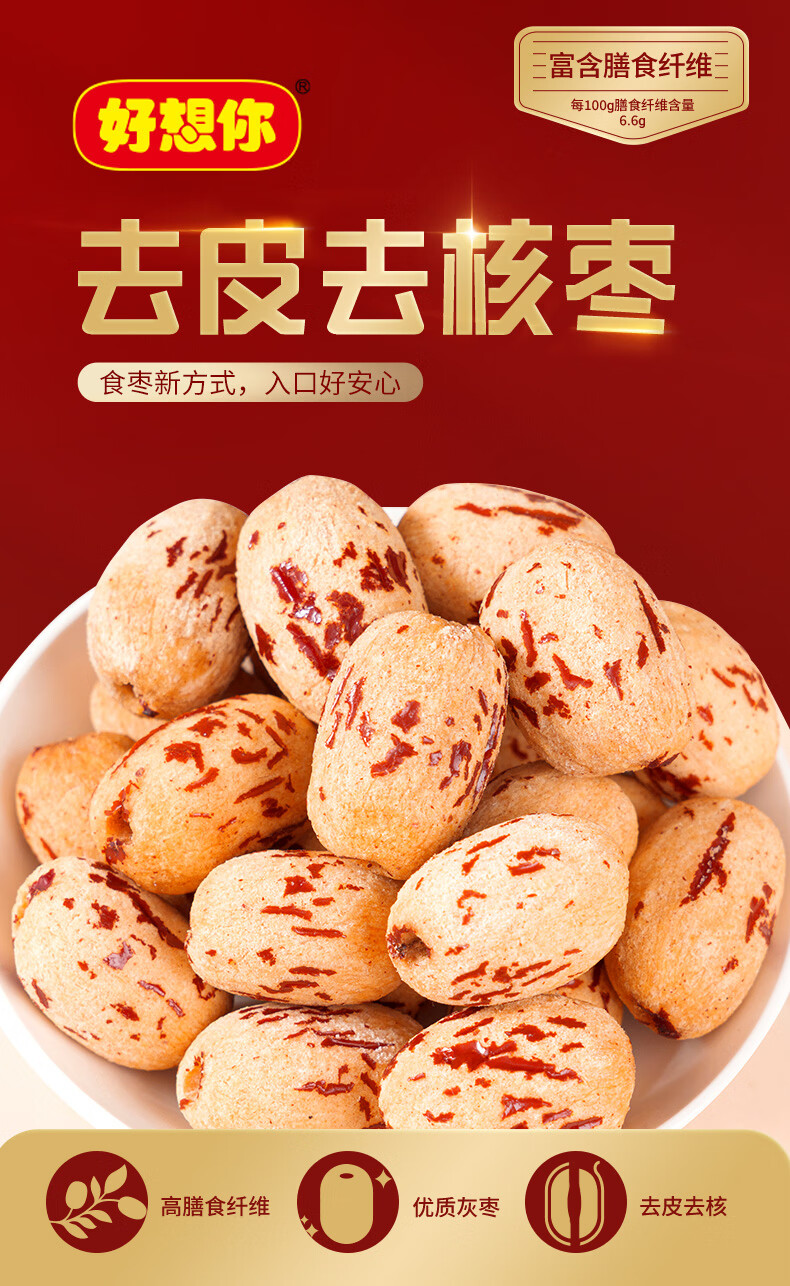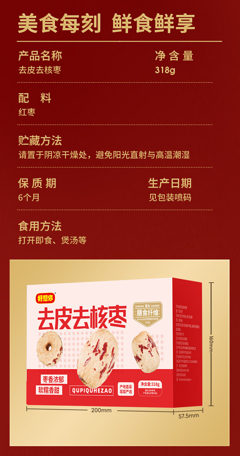 好想你去皮去核红枣去皮香甜不卡嗓煲汤煮粥休闲零食蜜饯 【盒装】318g去皮去核枣*2