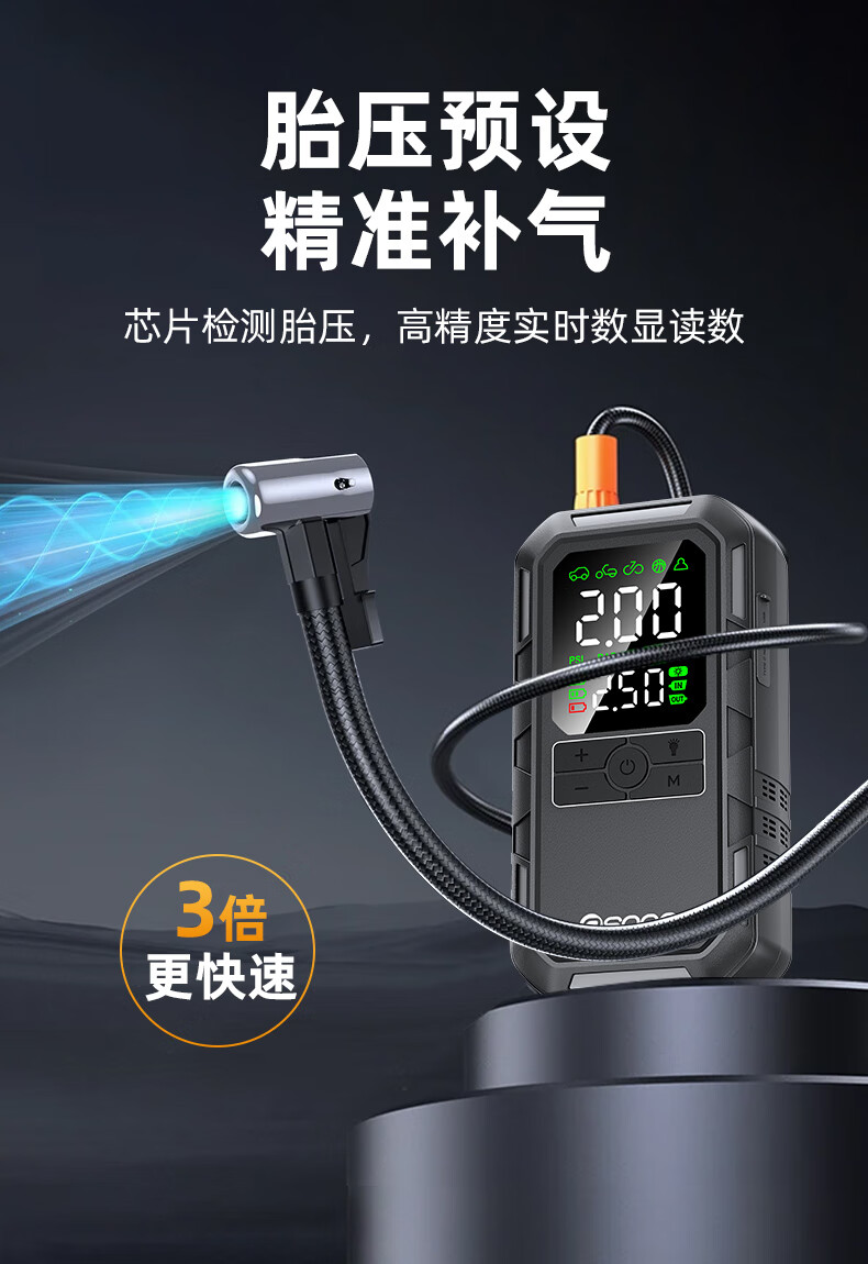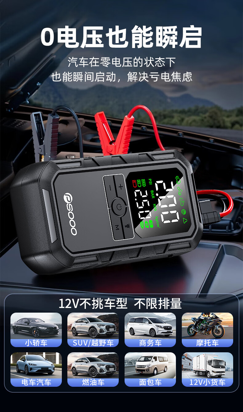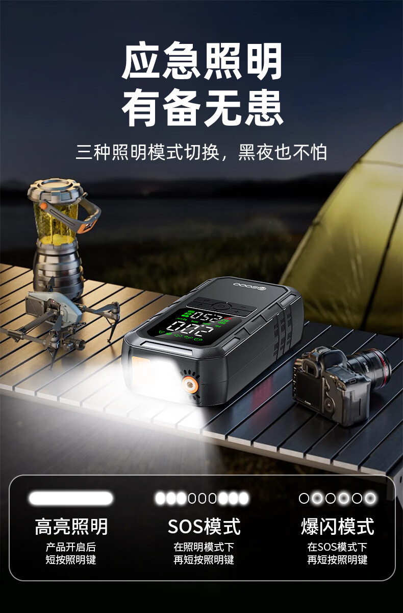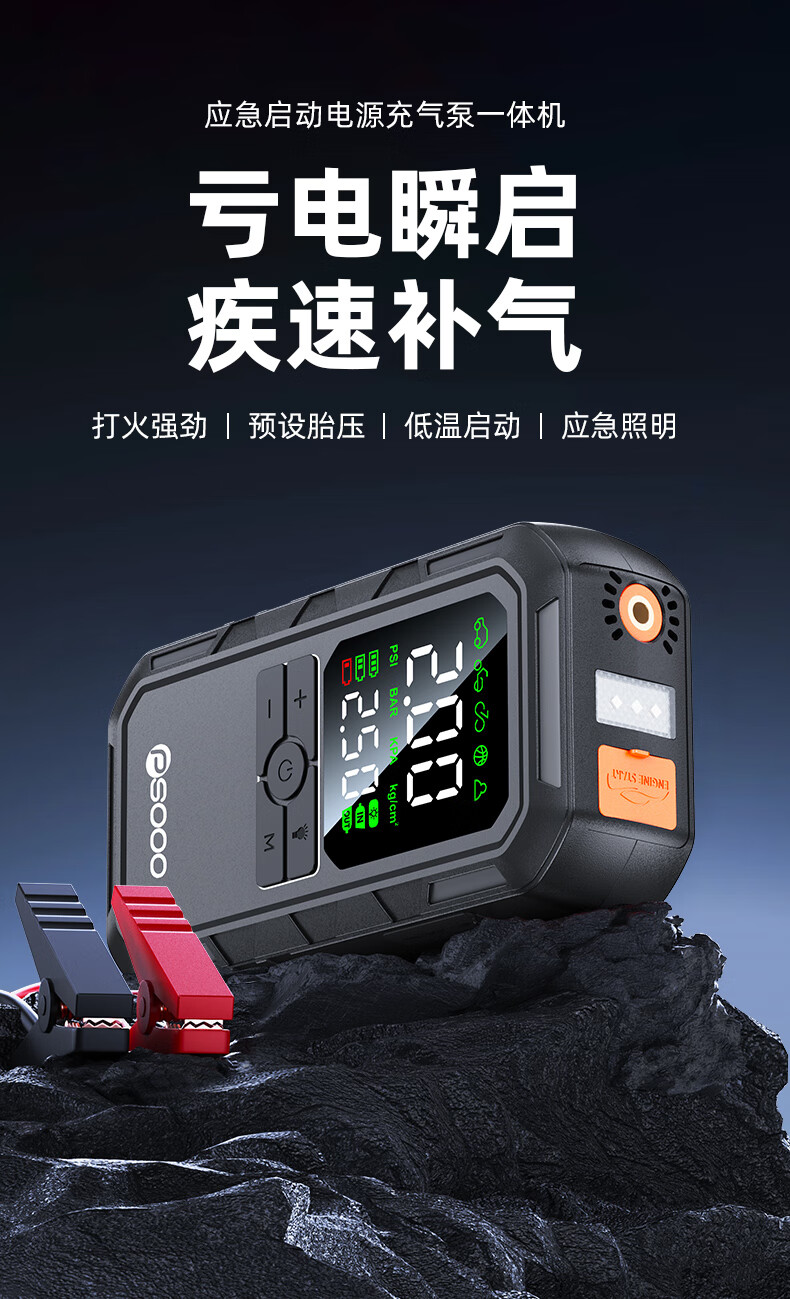 谱硕汽车应急启动电源搭电宝充气泵一体机车载电瓶便携打火神器户外强启打气照明救援 【应急电源+充气泵】不限排量丨防反接智能夹*送收纳袋