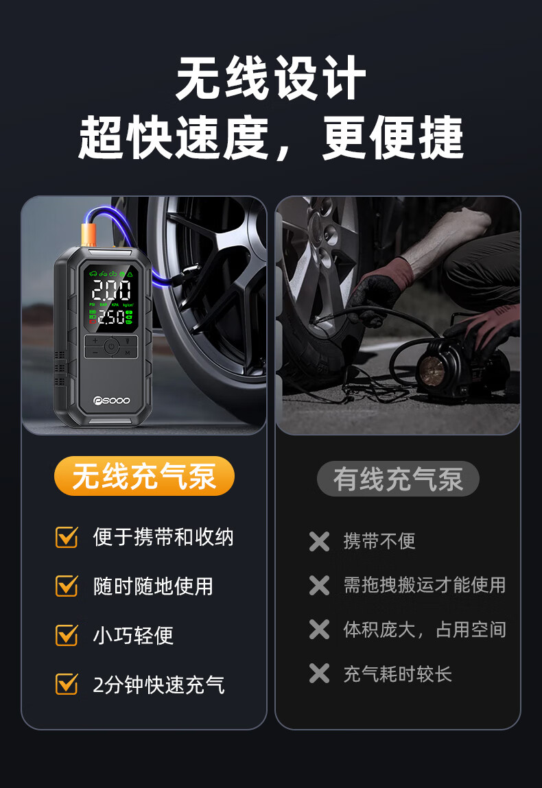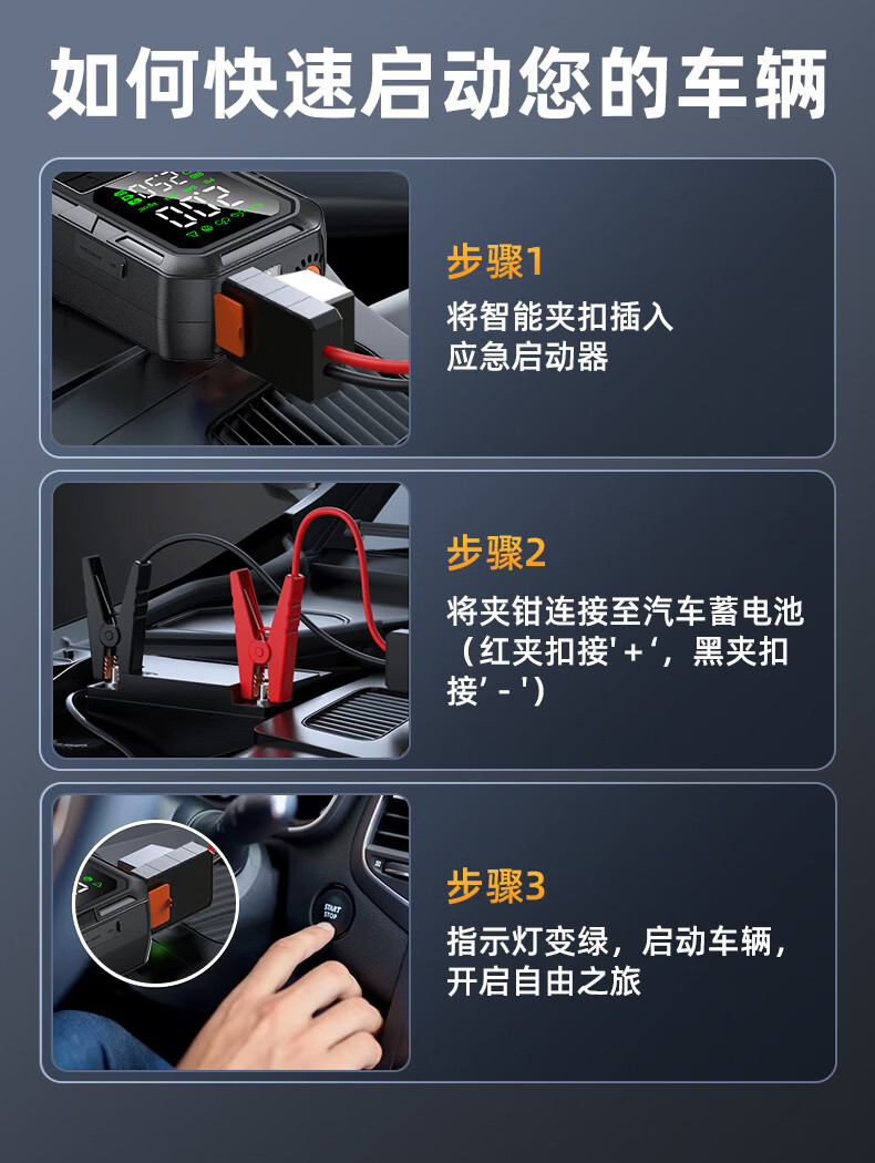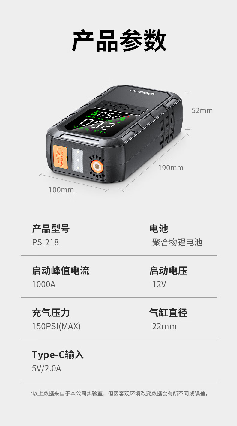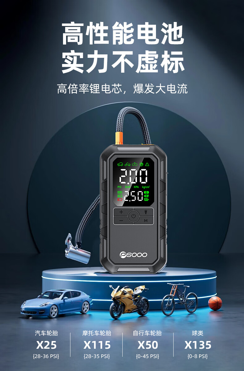谱硕汽车应急启动电源搭电宝充气泵一体机车载电瓶便携打火神器户外强启打气照明救援 【应急电源+充气泵】不限排量丨防反接智能夹*送收纳袋
