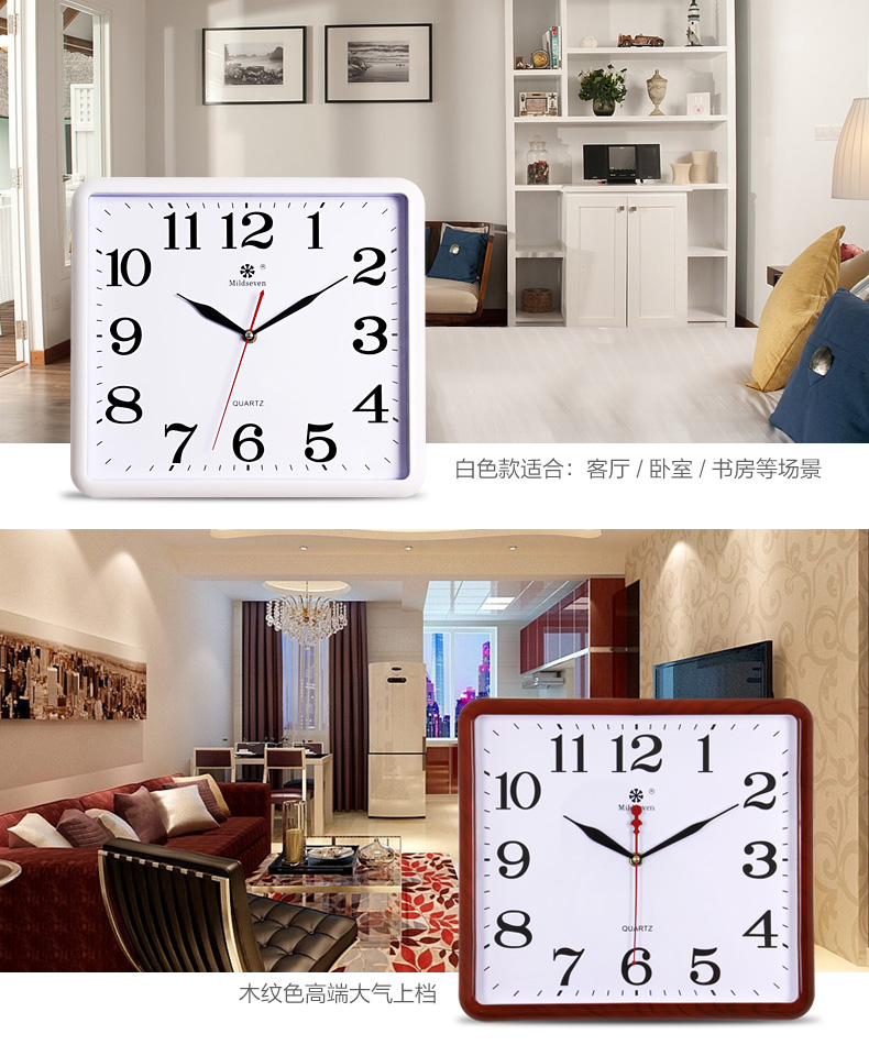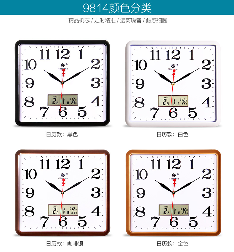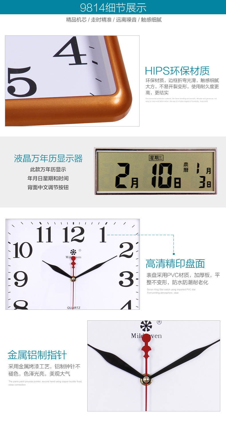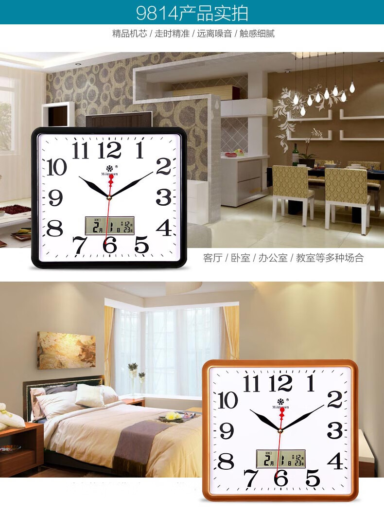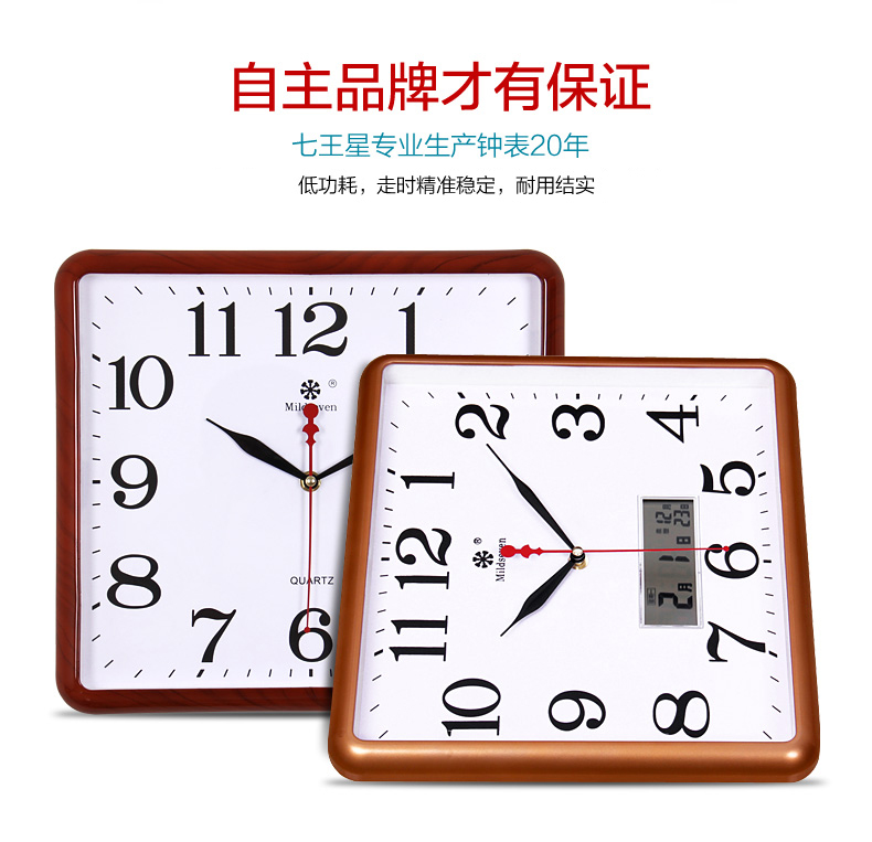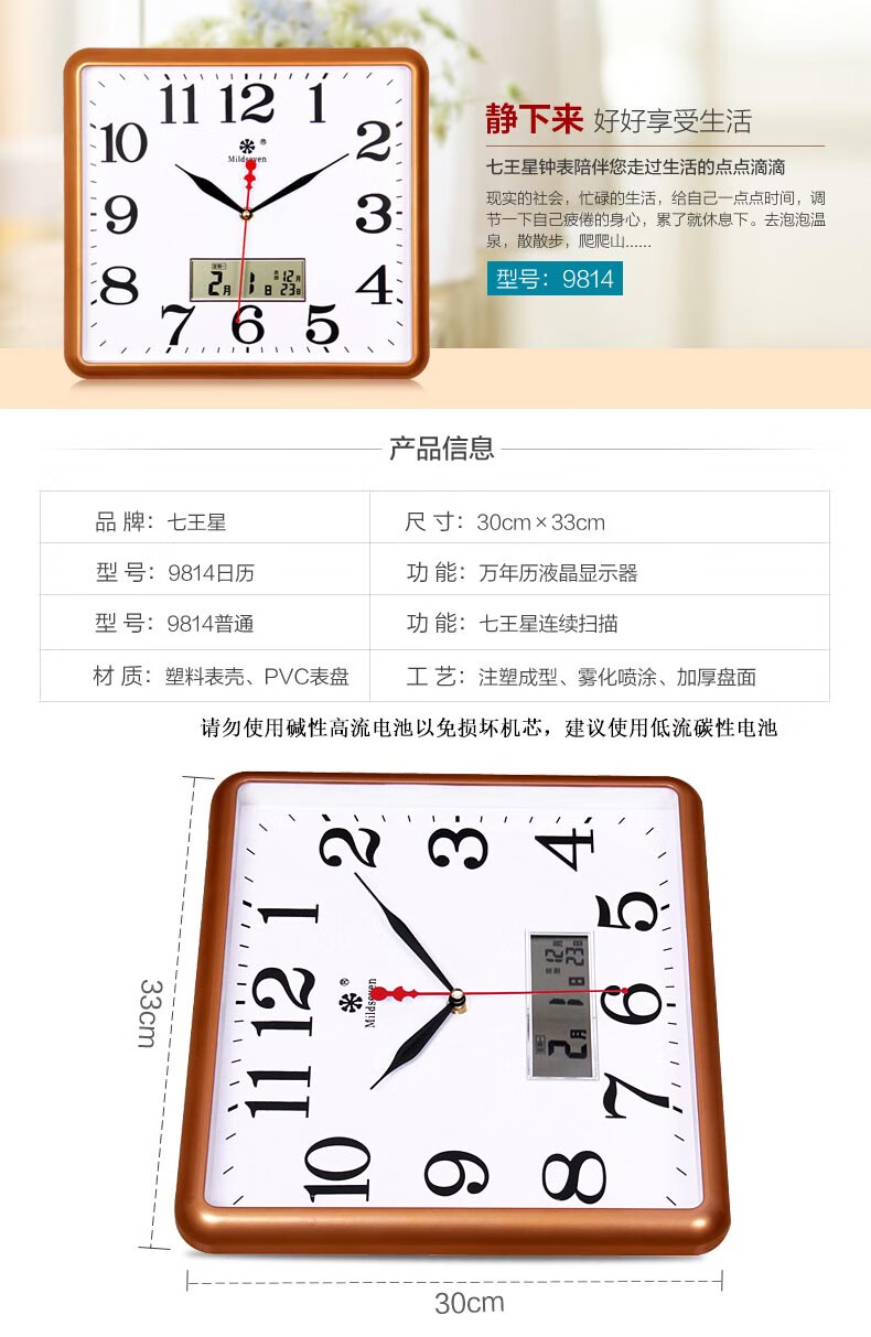 七王星七王星长方形现代简约客厅挂钟创意电子墙壁挂表石英钟免打孔钟表 9814黑边日历 13英寸 长33厘米高30厘米