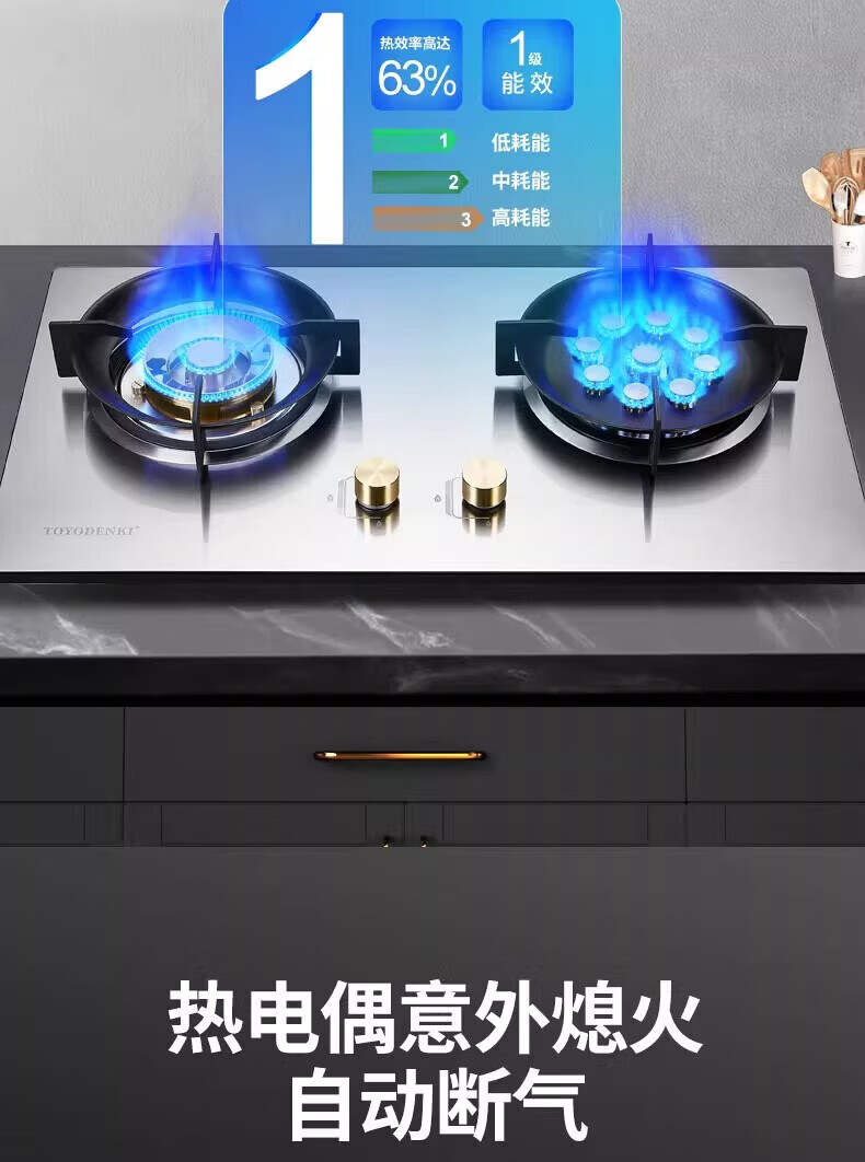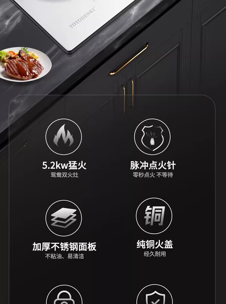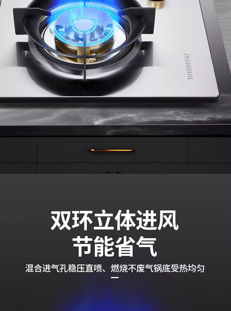 TOYODENKI家用5.2kw九腔燃气灶嵌入式天然气灶厨房煤气灶一级能效台嵌两用不锈钢 5.2KW 加厚全不锈钢【九腔鸳鸯】 液化气