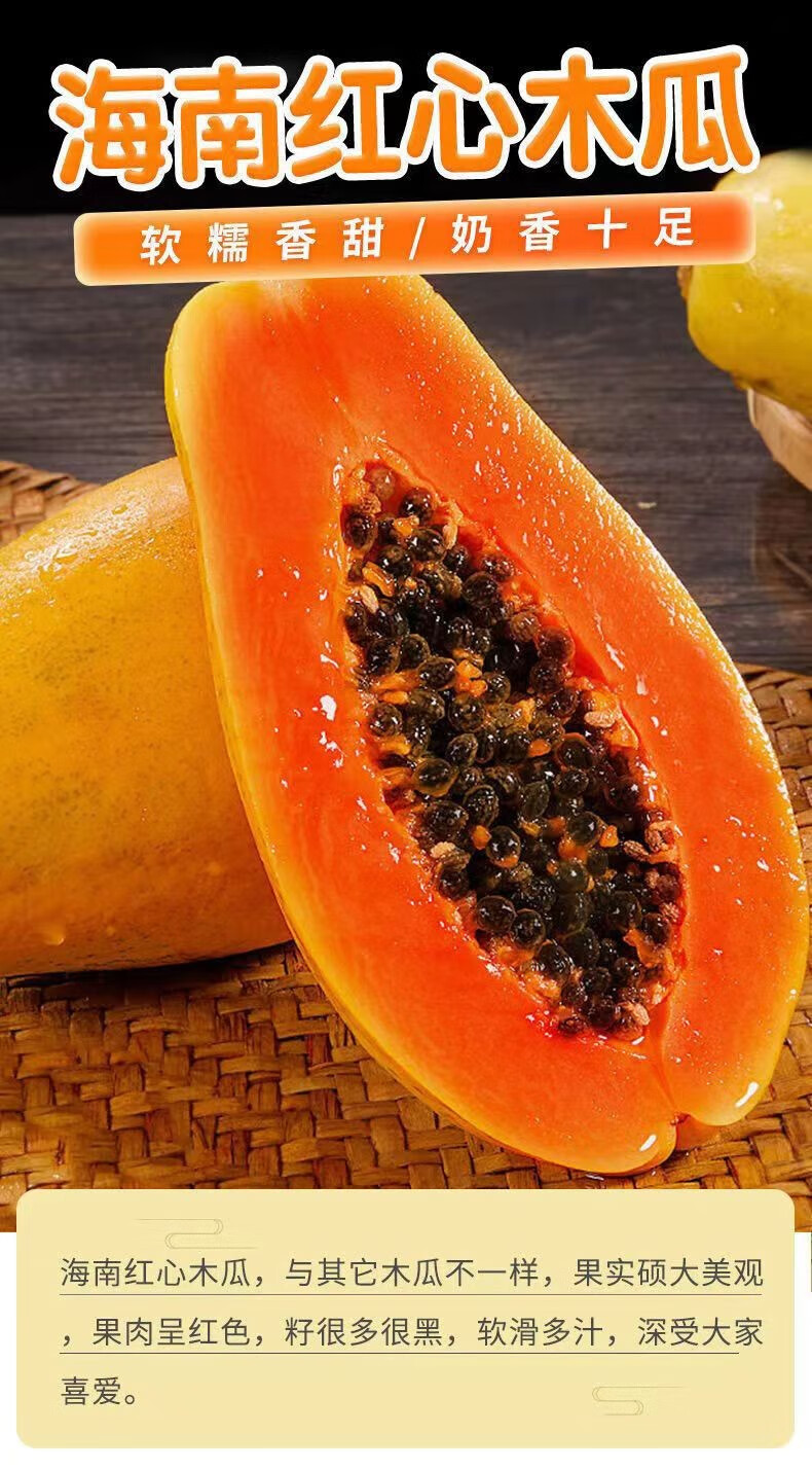 田园东方 ORIENT IDYLL海南冰糖心红心木瓜 (表皮变黄变软再吃)牛奶木瓜 新鲜应季水果 带箱5斤普通装(净重4.5斤)