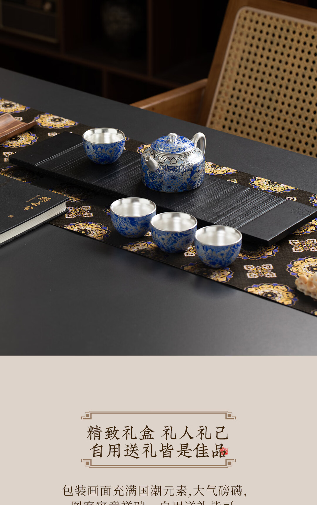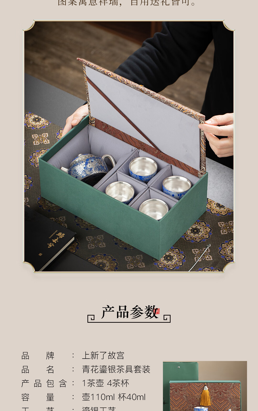 上新了文创 故宫高档鎏银茶具礼盒套装 品茗杯茶壶茶杯送长辈领导生日礼物 一壶四杯