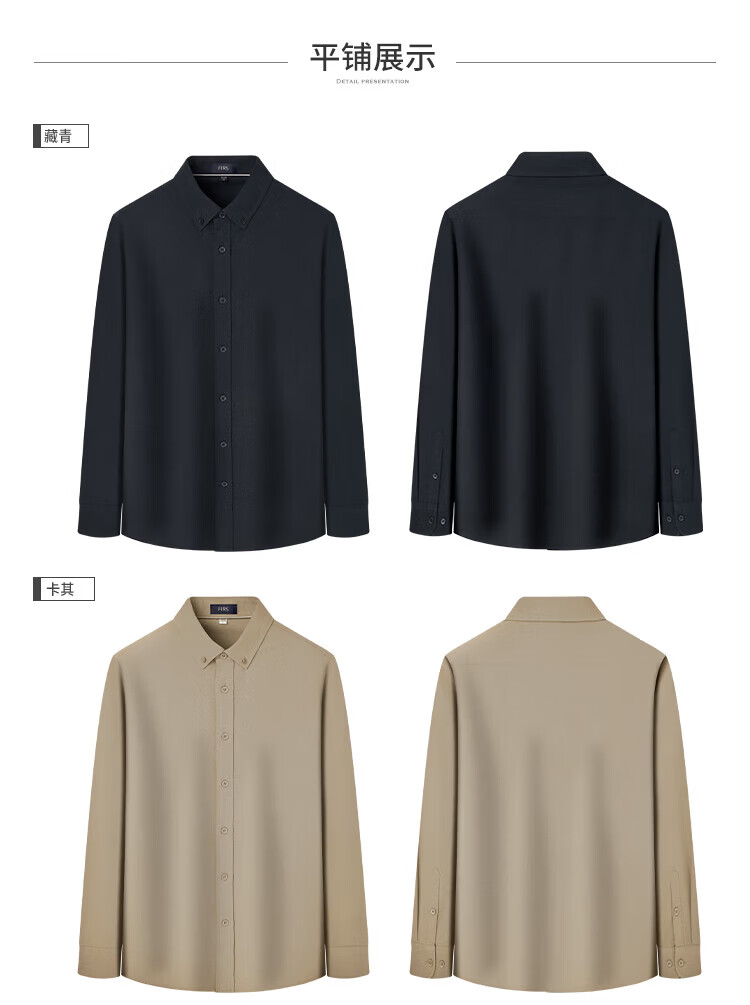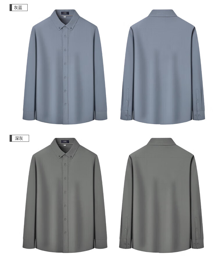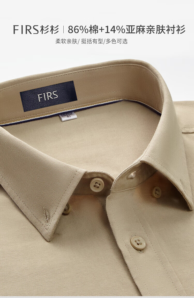 杉杉(FIRS)【亚麻+长绒棉】长袖衬衫男春秋2025新款商务透气易打理衬衣 黑灰 38 165/84A(38)