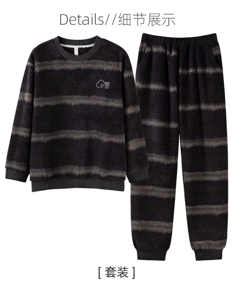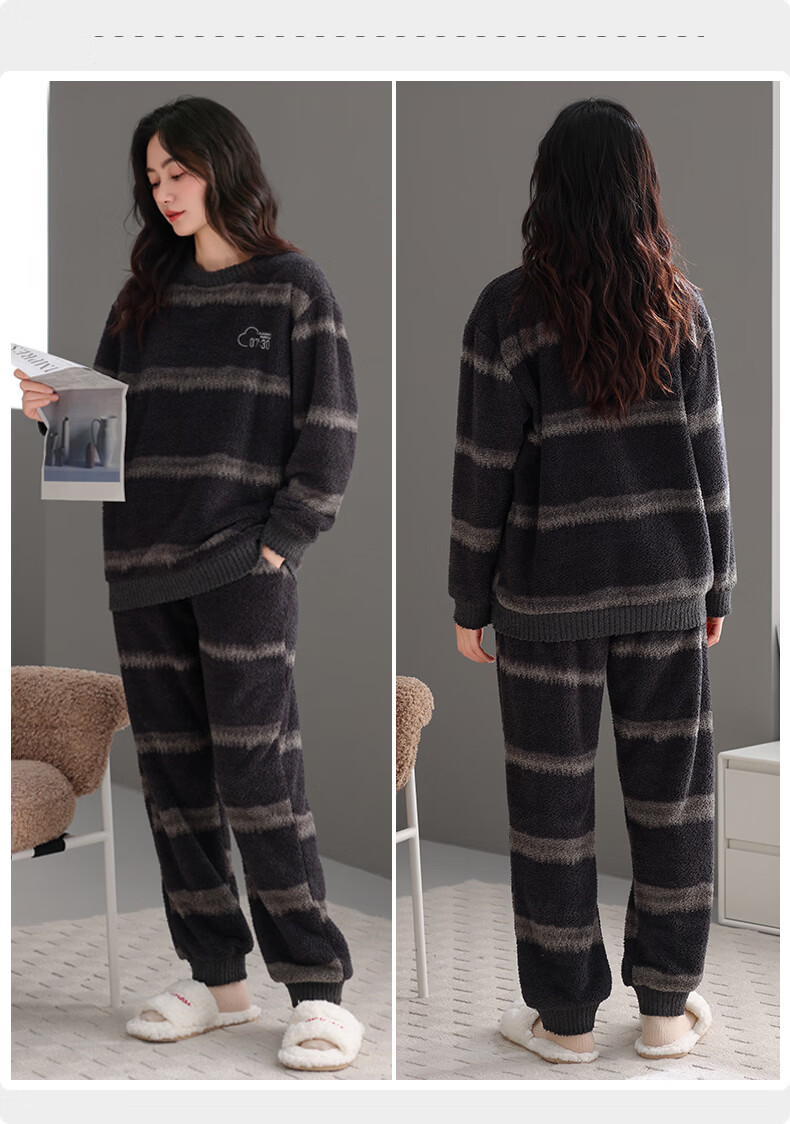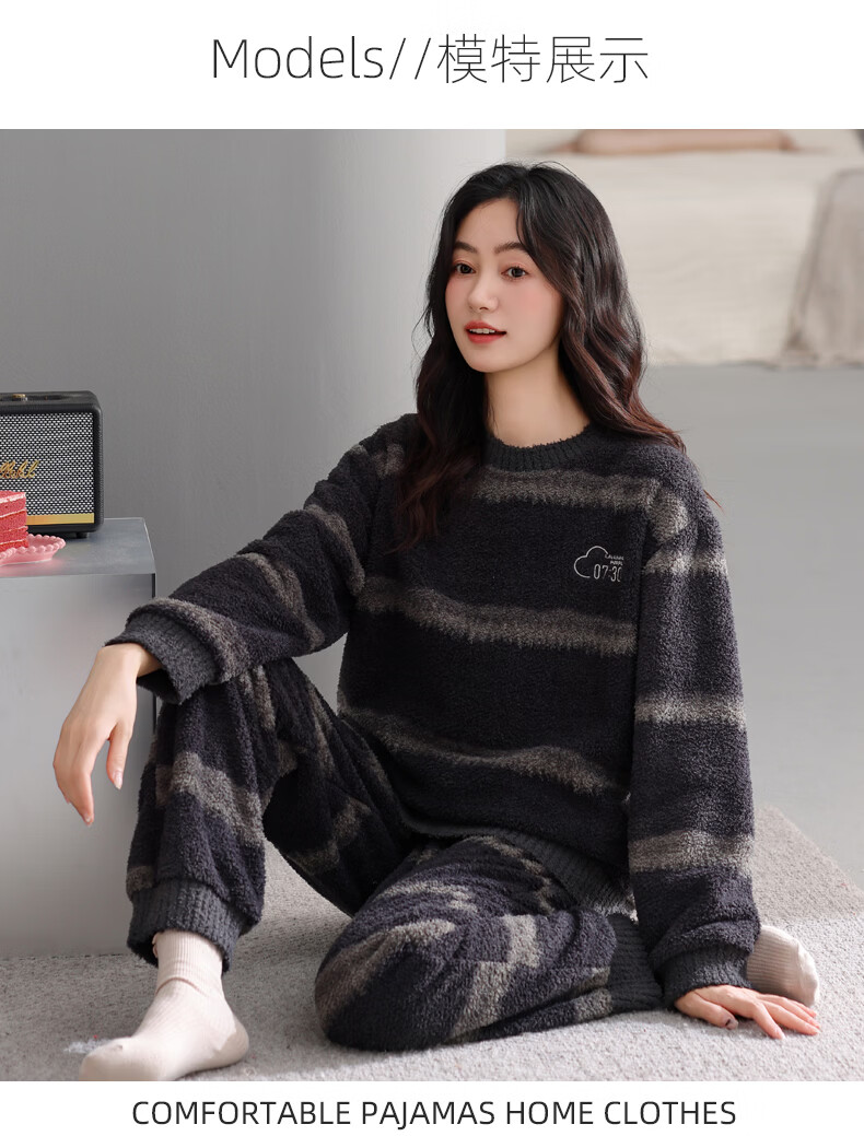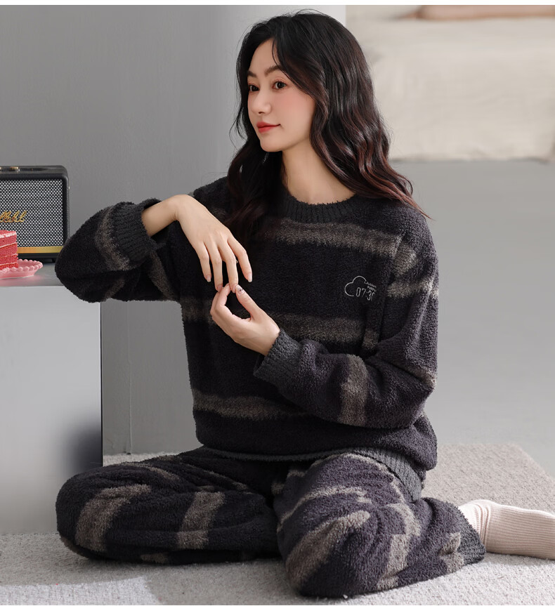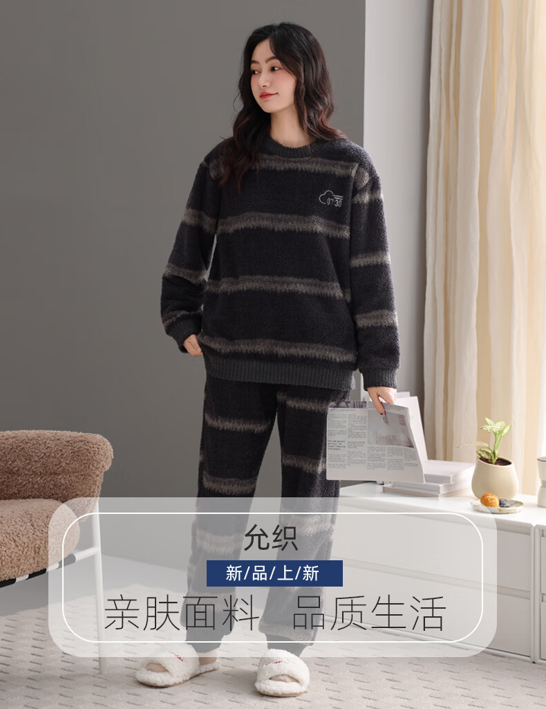 允织睡衣女士冬季半边绒加绒加厚套头女款高级感可外穿女款家居服套装 82804-暖灰咖 M (160) :建议90-110斤穿着