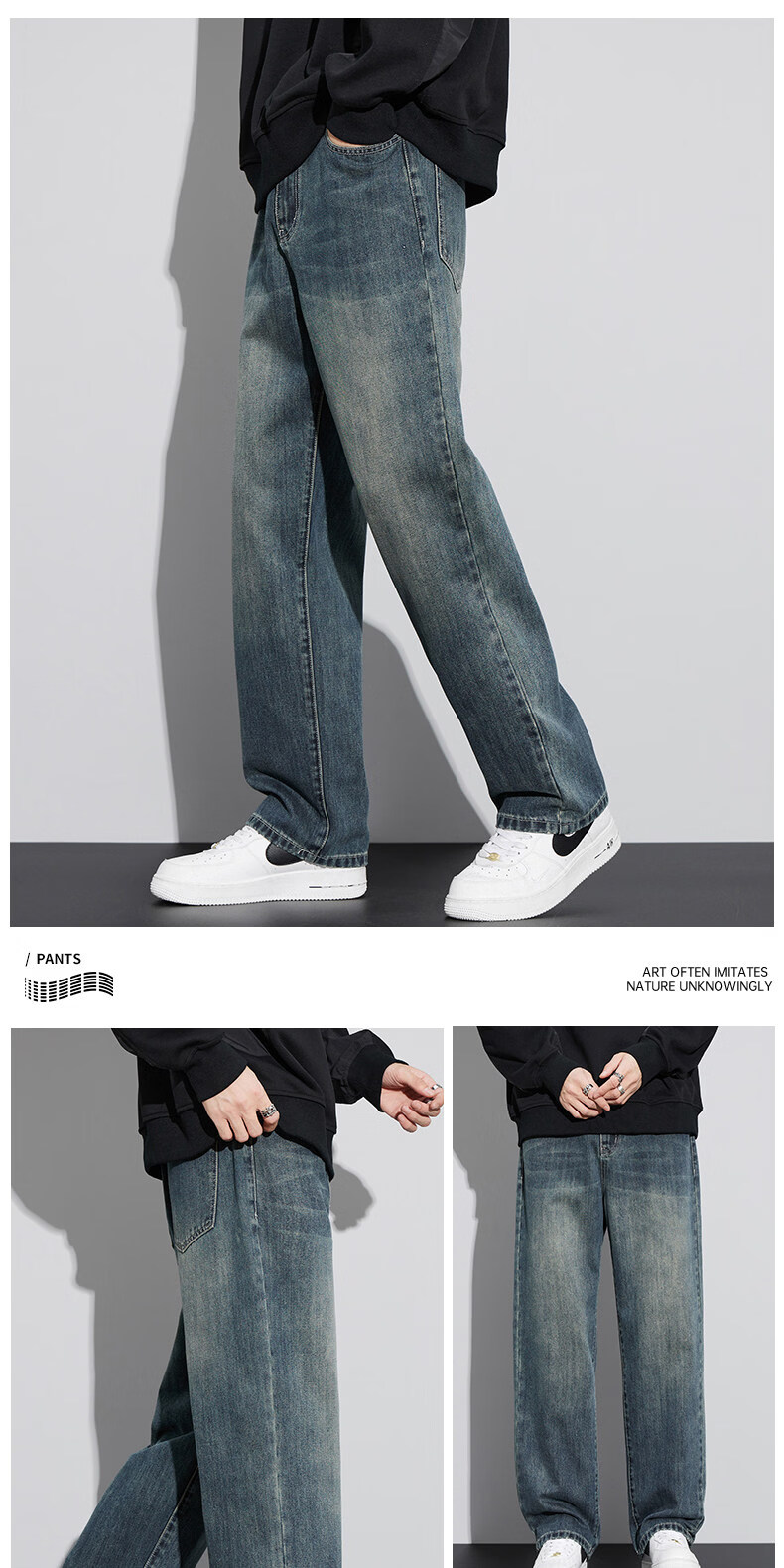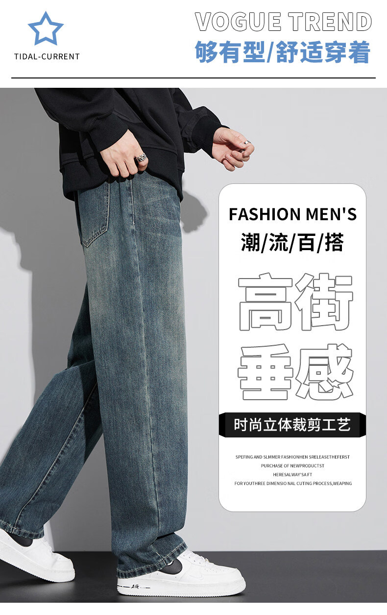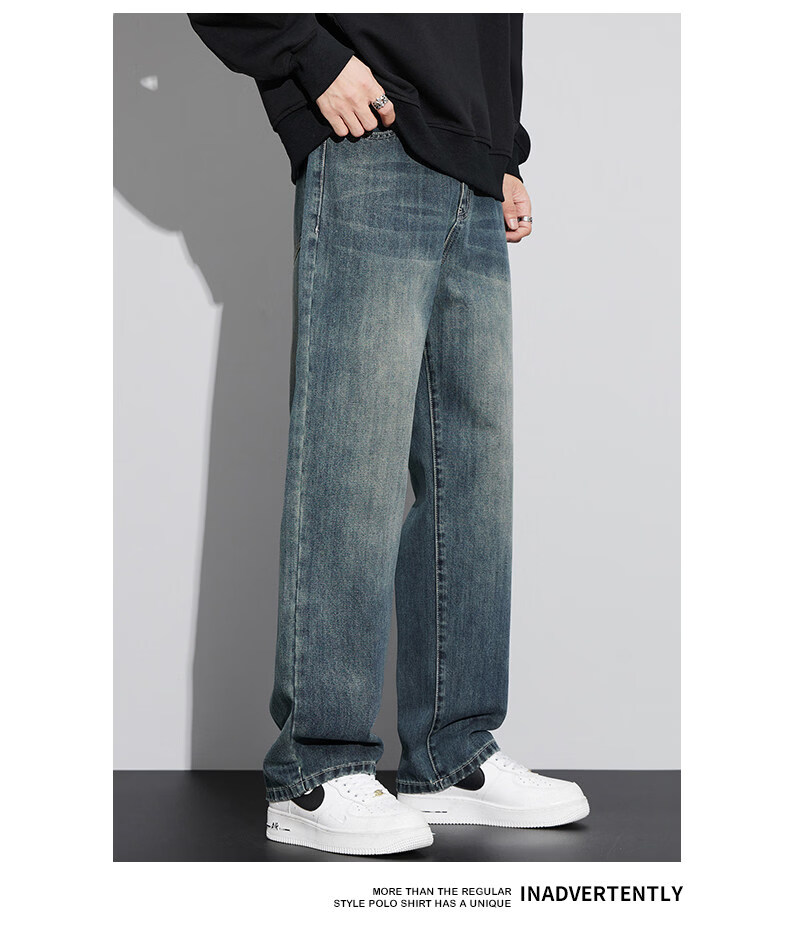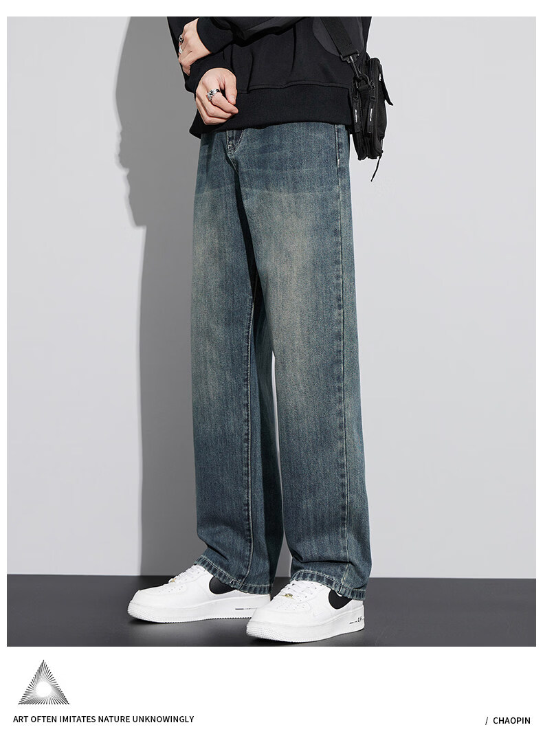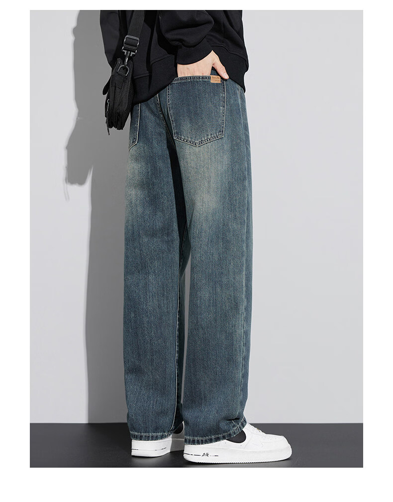 真维斯(Jeanswest)美式直筒牛仔裤男士春季2026新款宽松复古阔腿水洗长裤子男 6843复古蓝 【官方正品】 28 建议【90-110斤】