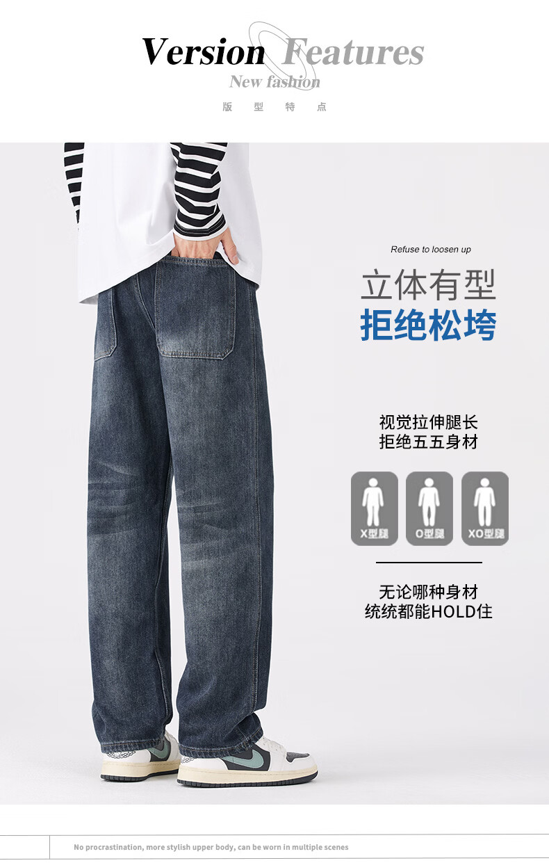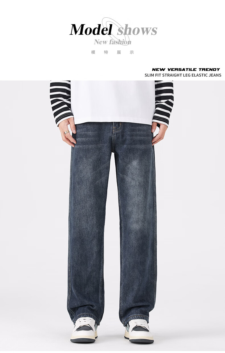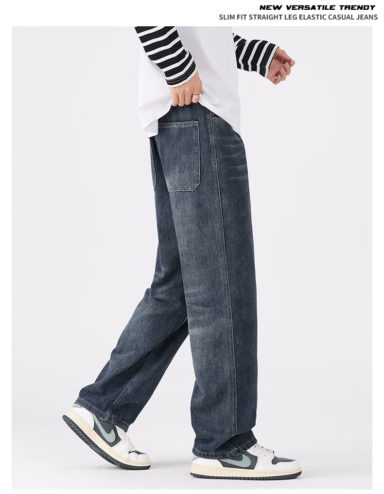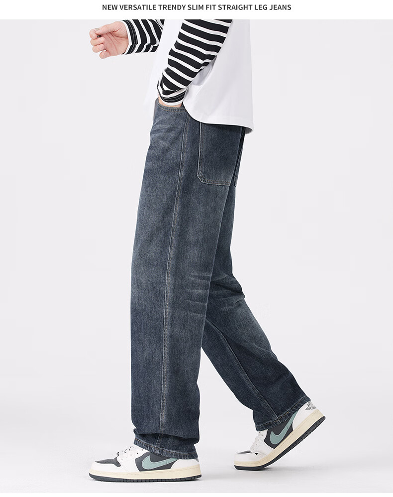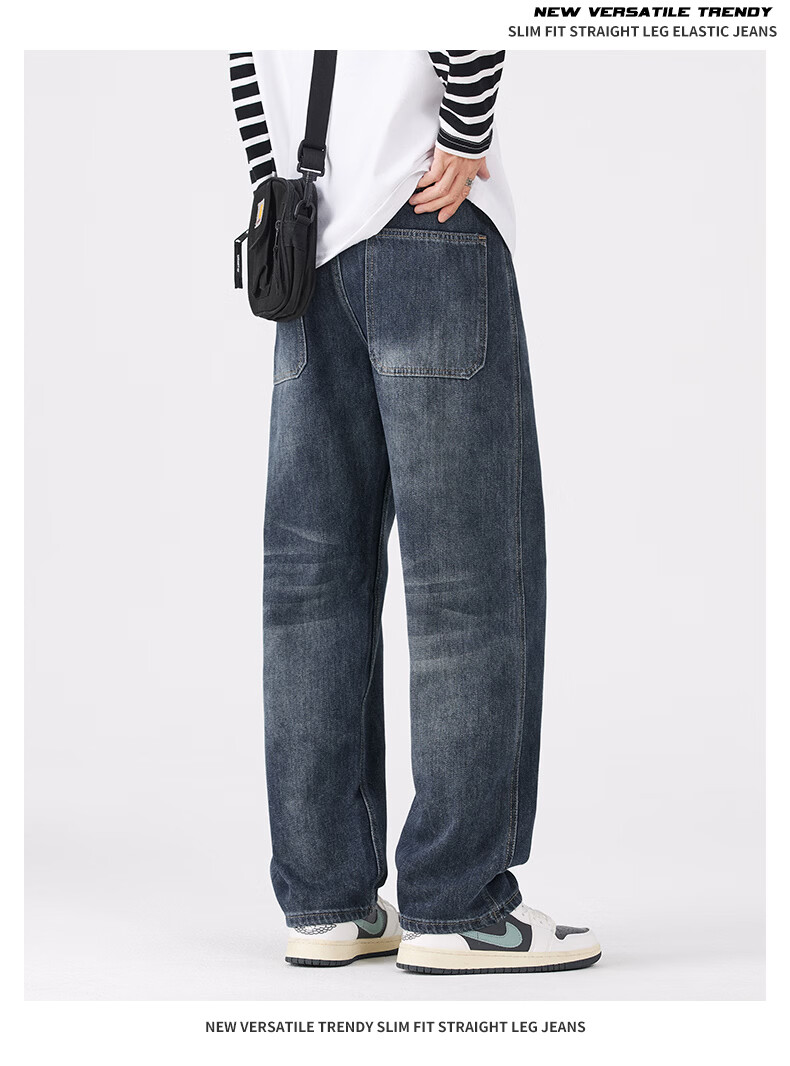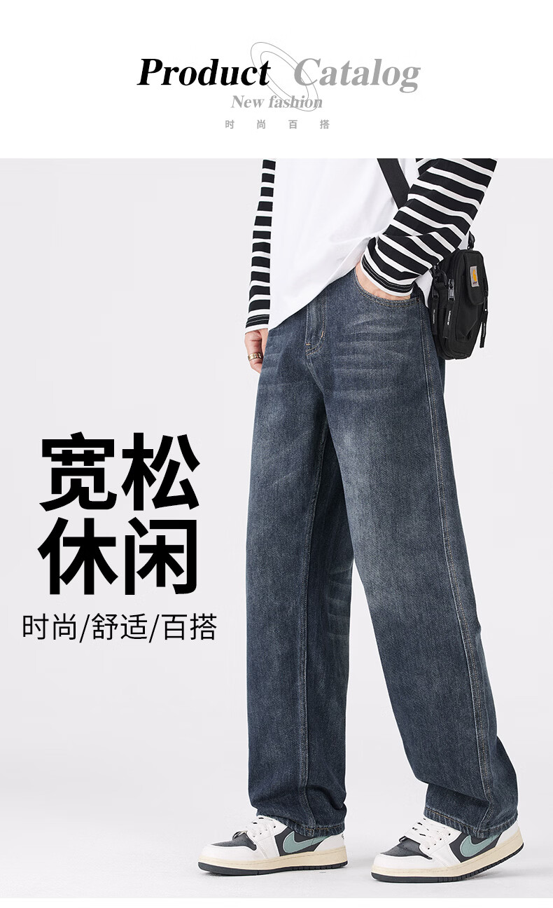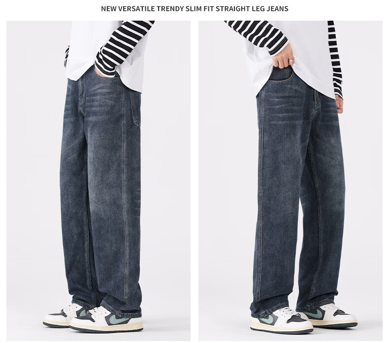 真维斯牛仔裤男春秋季宽松百搭直筒裤男新款潮牌复古棉弹舒适长裤男 蓝灰 28