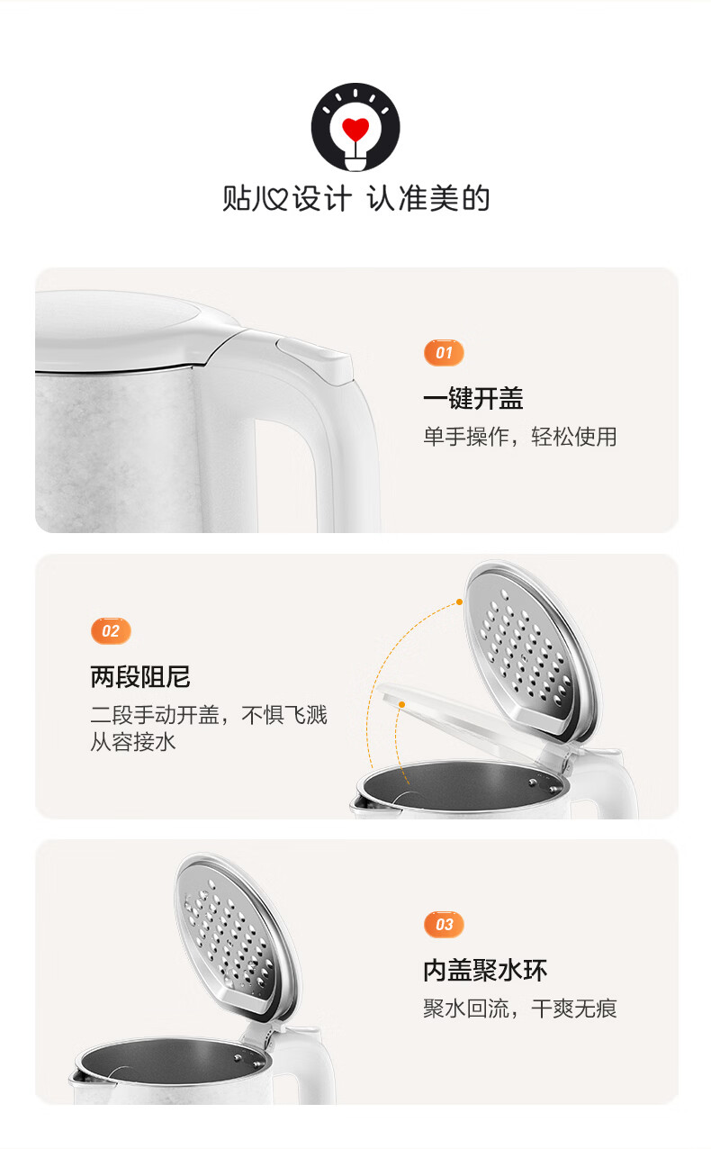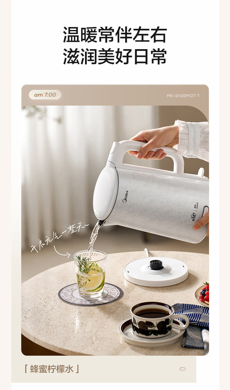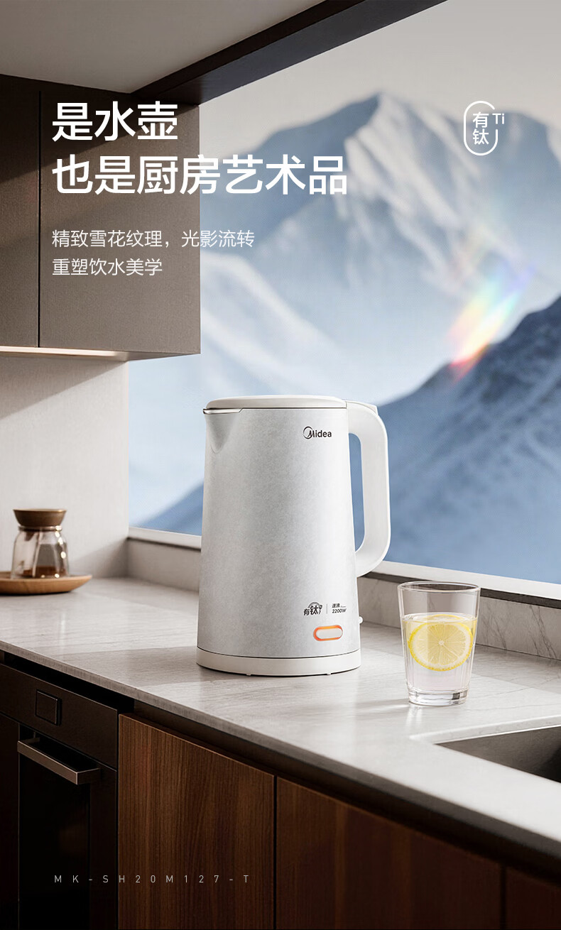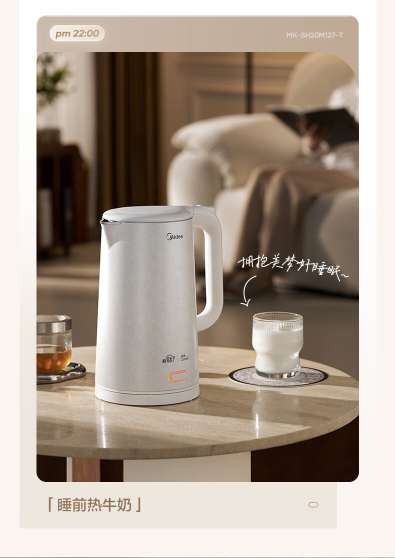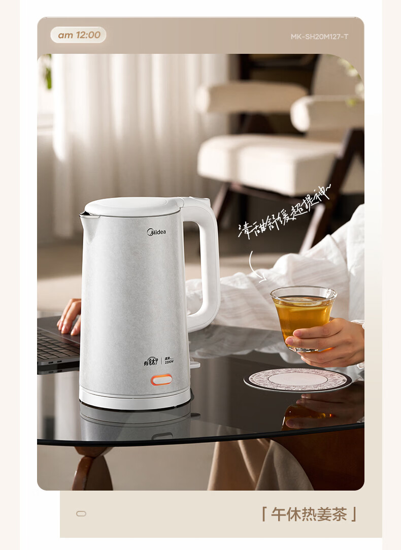 美的(Midea)电热水壶有钛材质2200W大功率恒温烧水壶自动断电保温一体2L大容量316L母婴不锈钢无缝一体内胆 2L 【有钛重磅升级】-大功率大容量好材质