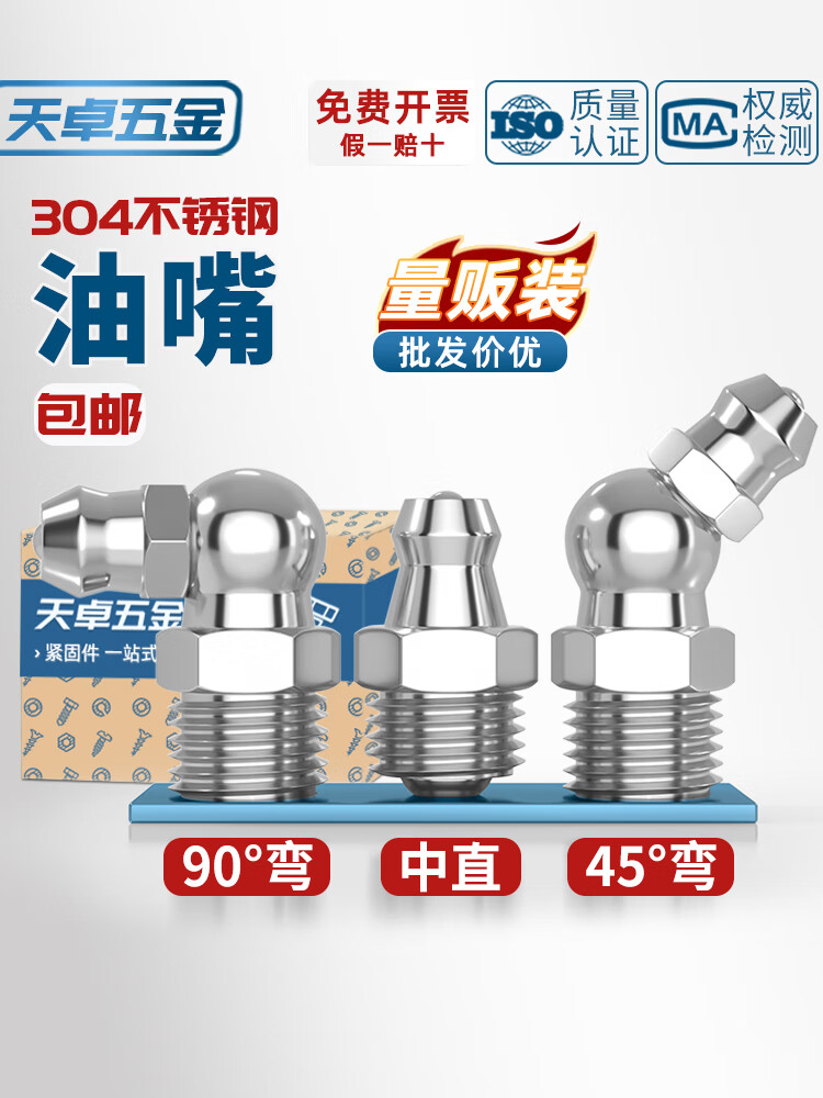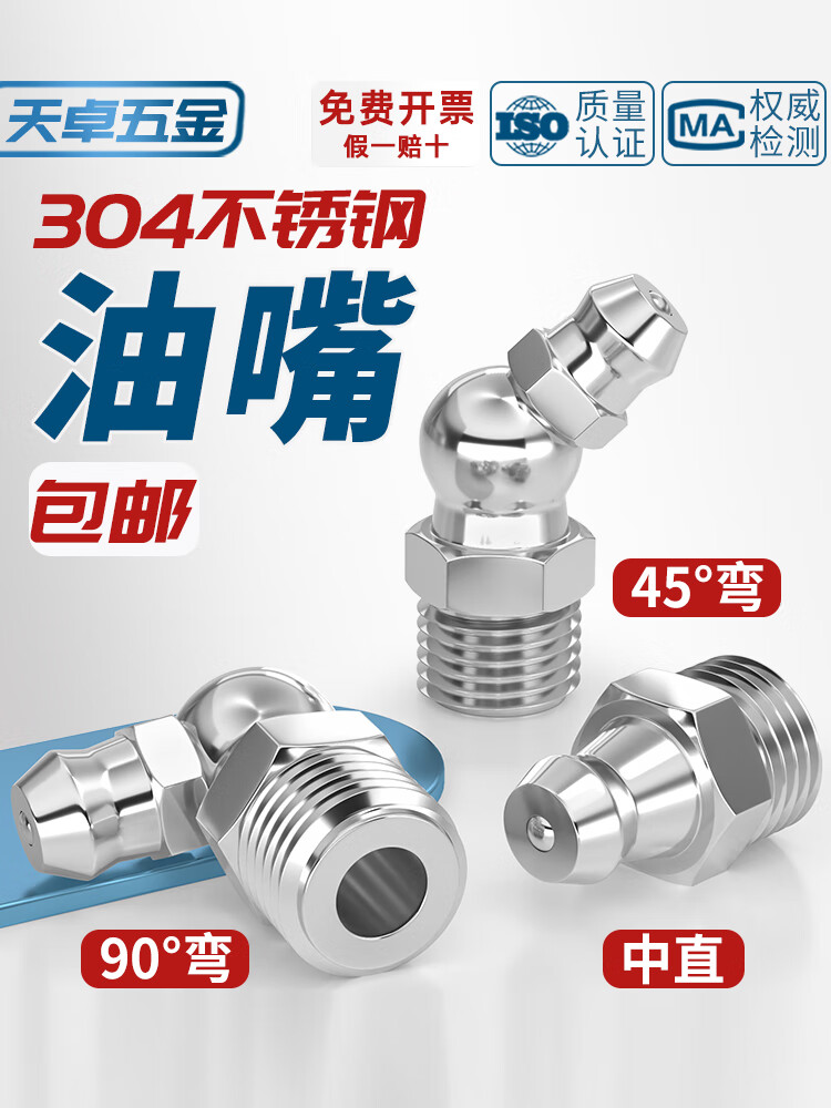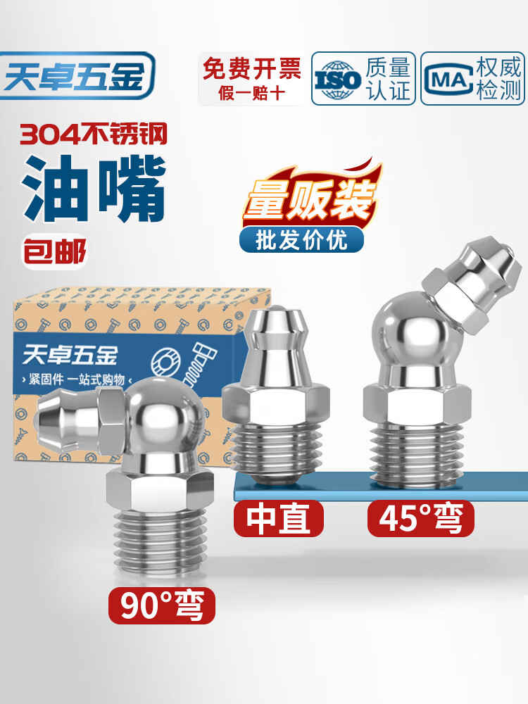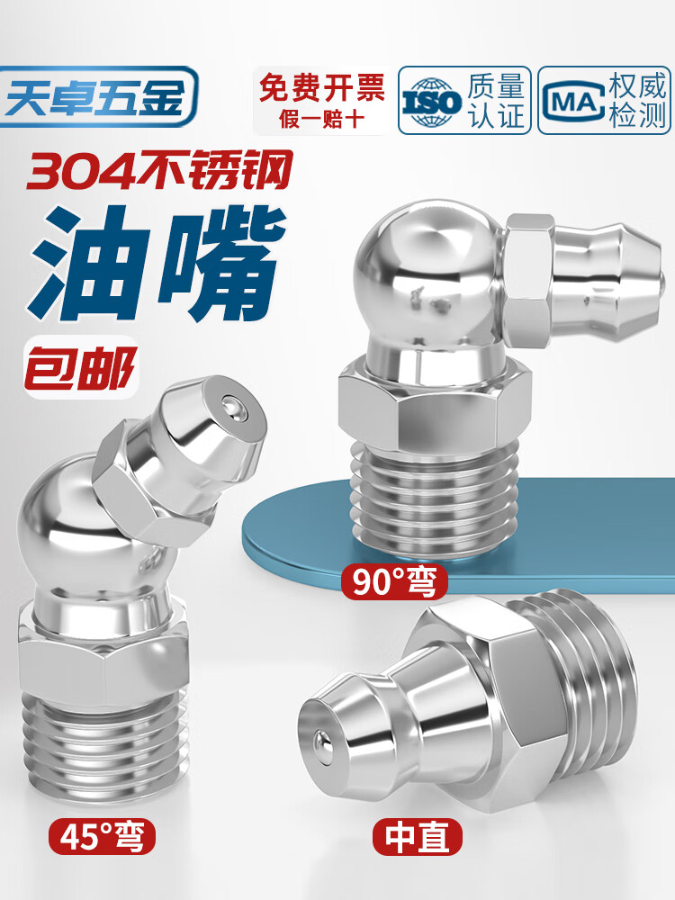 天卓五金304不锈钢黄油嘴油嘴头油枪注油嘴 国标黄油枪头弯油嘴M6M8M10mm M6*1 (中直) 对边7【8个】