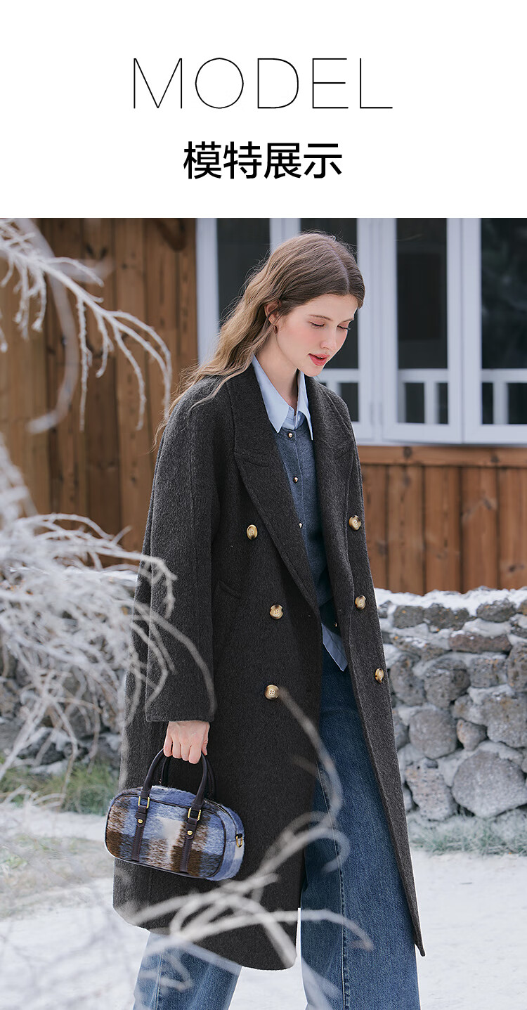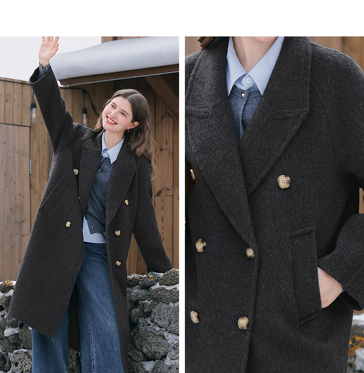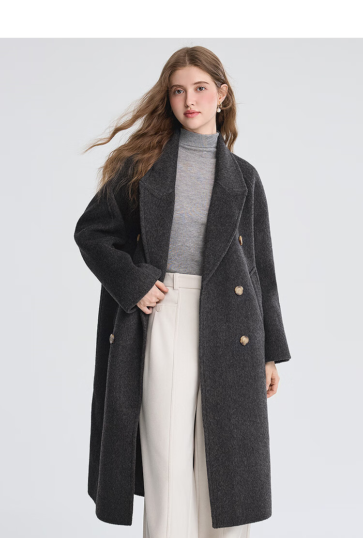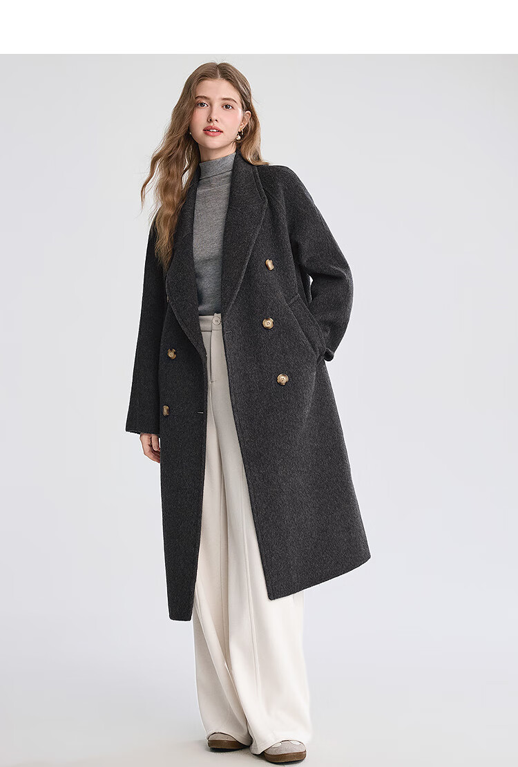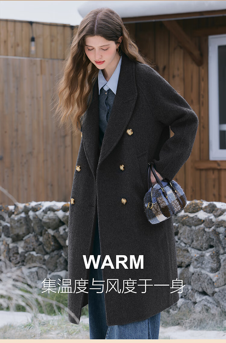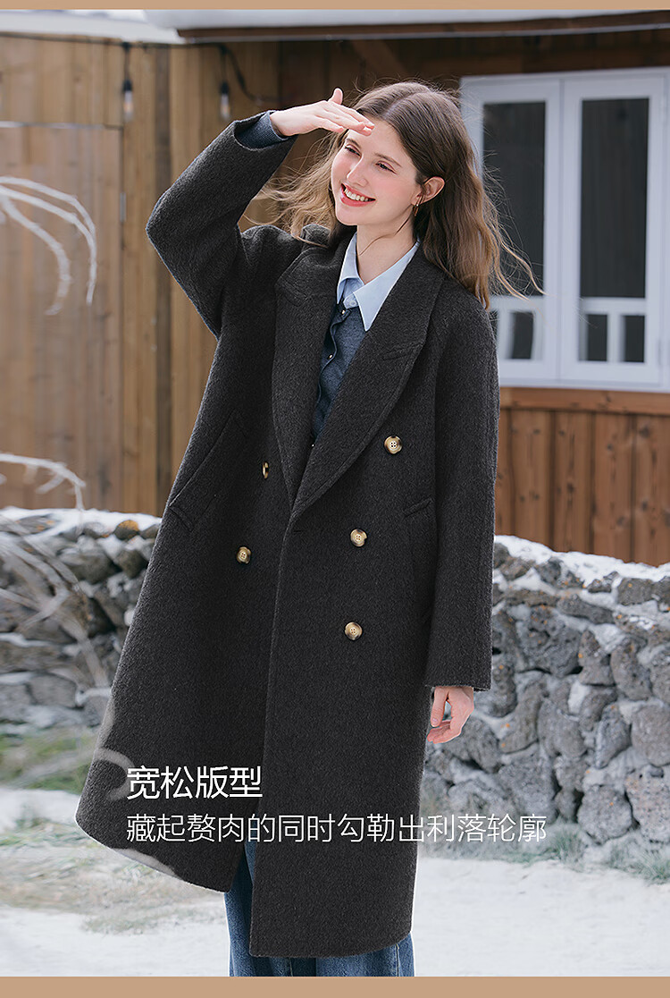 百图(betu)女装2025年冬季新款毛呢外套高级感100%绵羊毛毛呢大衣女2511T22 深灰 L