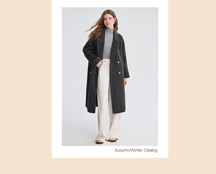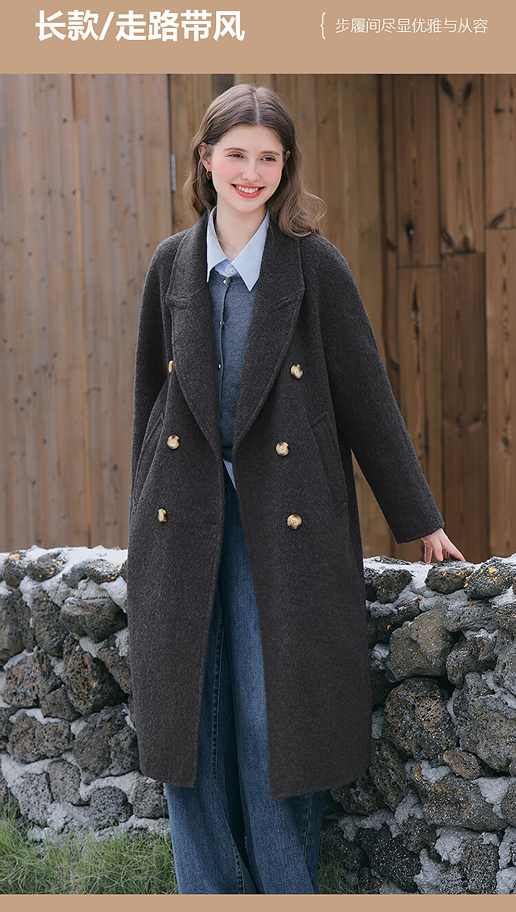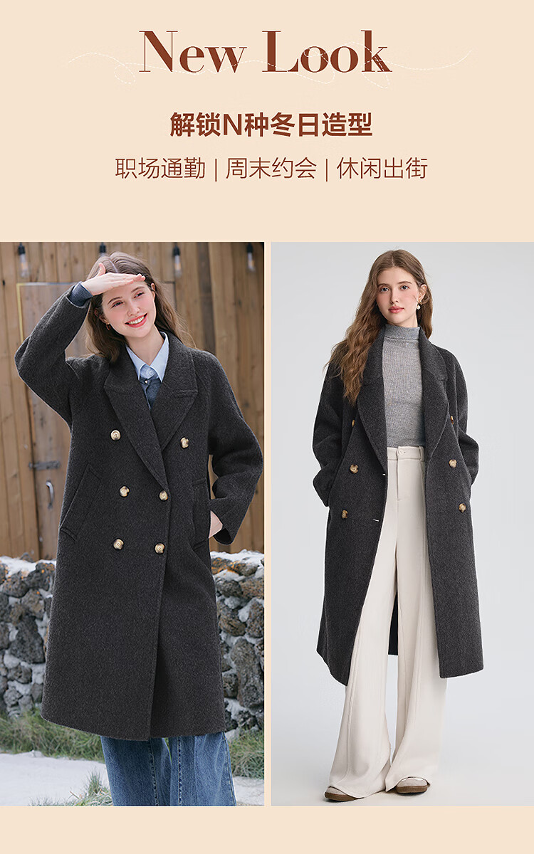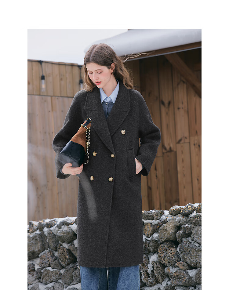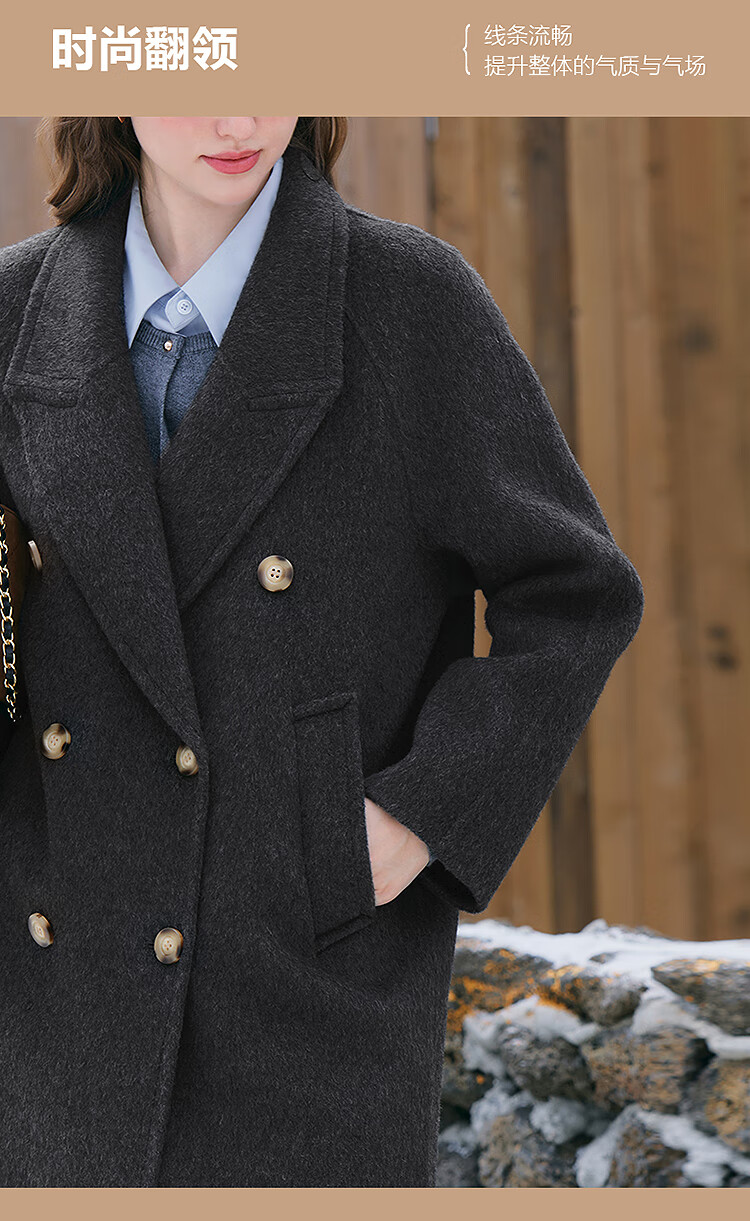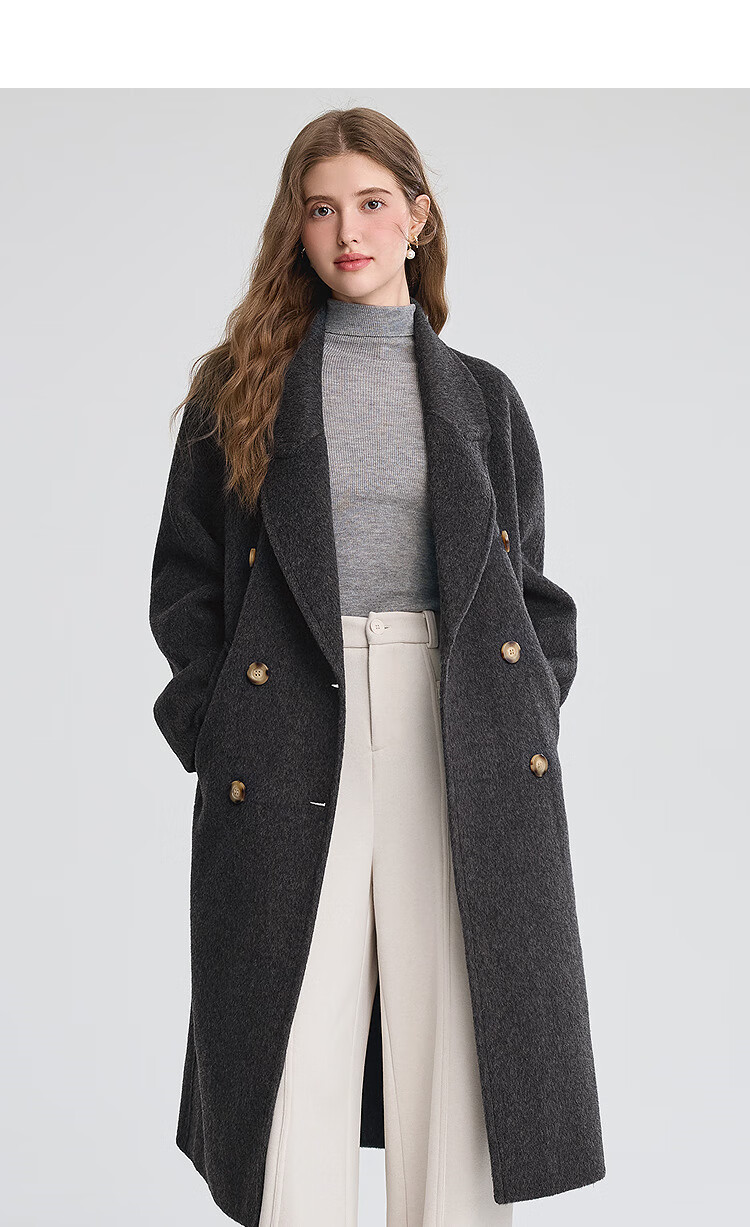 百图(betu)女装2025年冬季新款毛呢外套高级感100%绵羊毛毛呢大衣女2511T22 深灰 L
