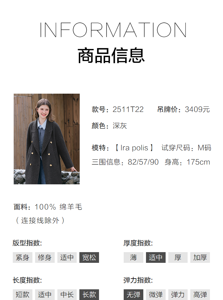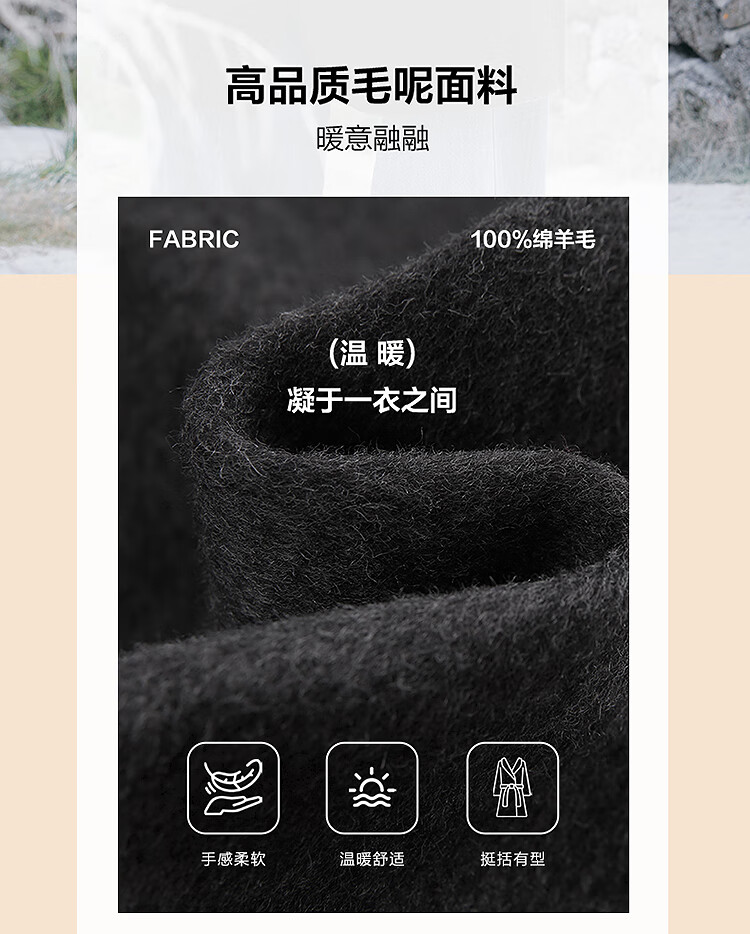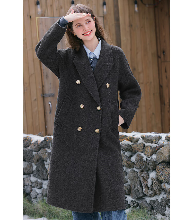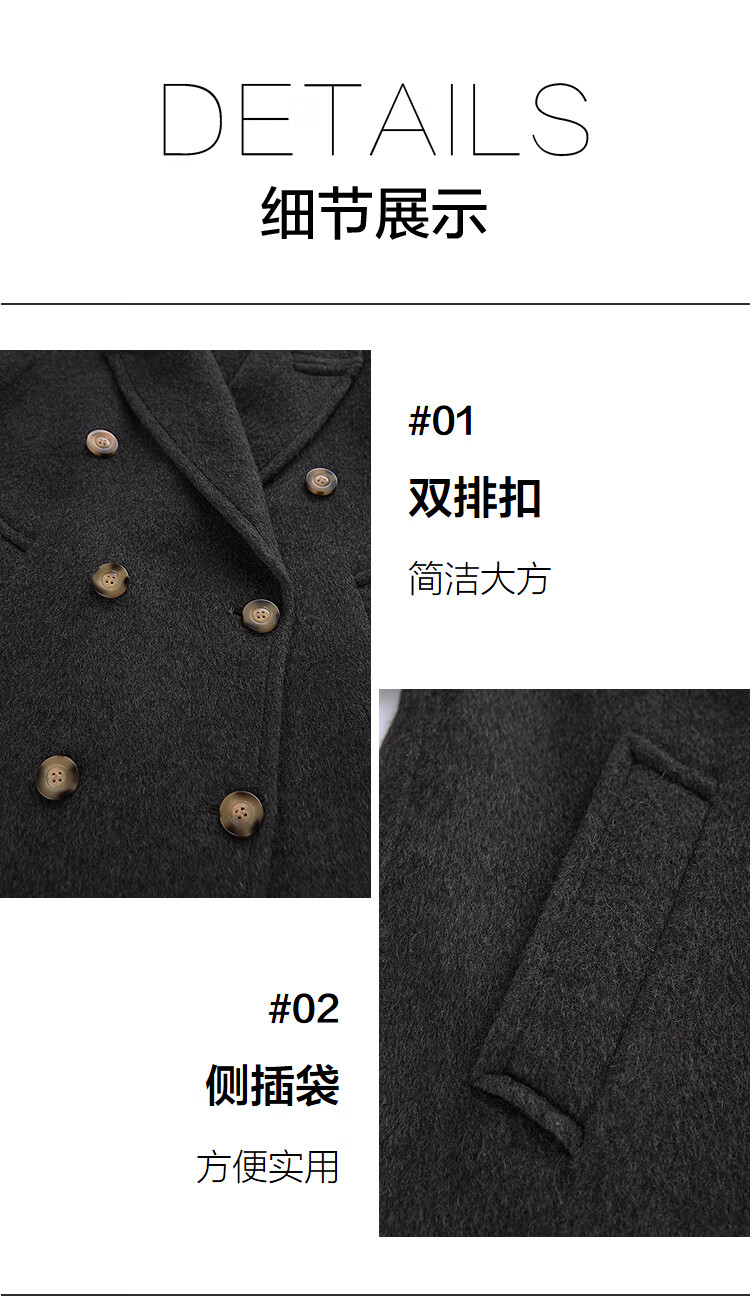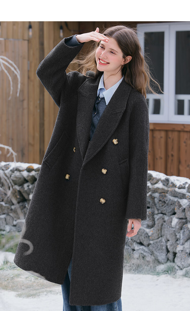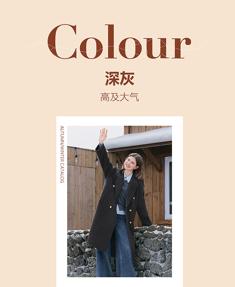 百图(betu)女装2025年冬季新款毛呢外套高级感100%绵羊毛毛呢大衣女2511T22 深灰 L