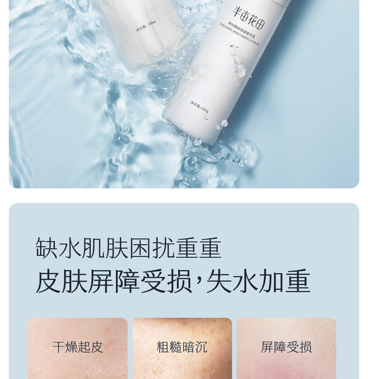 半亩花田神经酰胺水乳套装补水保湿盈润舒缓护肤品化妆品男女士水乳2件套