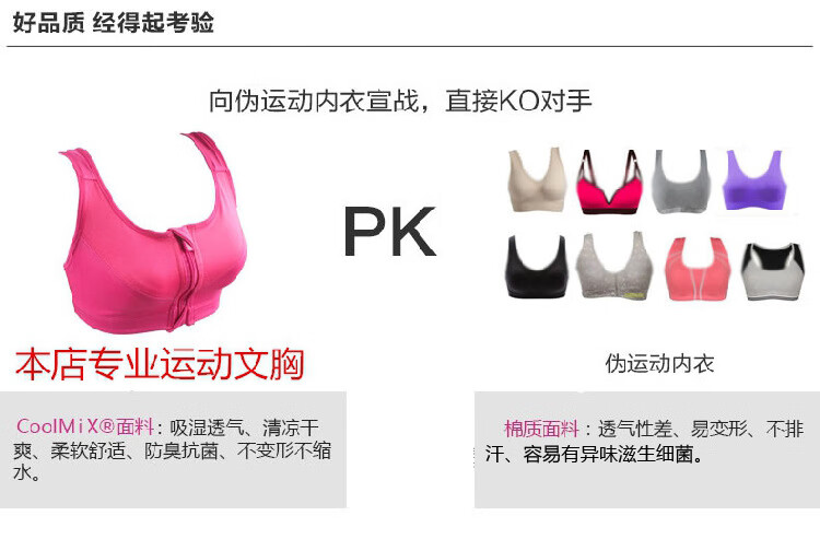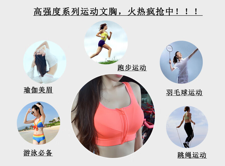 【严选好物】厂家无钢圈专业高强度四级防震运动文胸前拉链运动内 白色 S