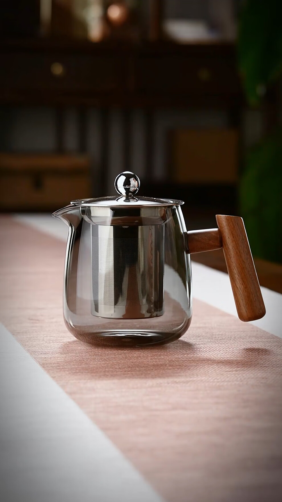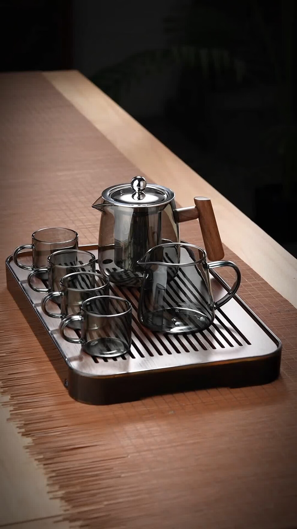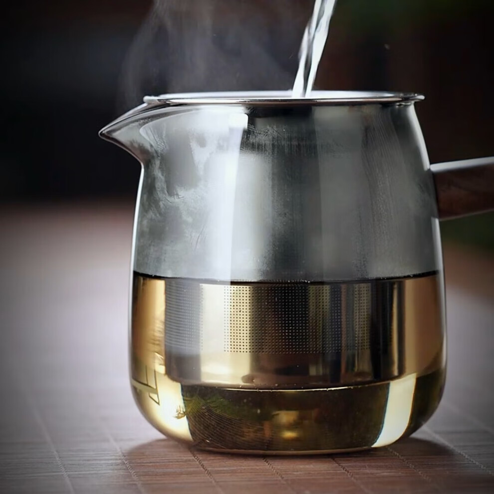 全度全度玻璃泡茶壶单壶过滤茶水分离耐高温壶日式功夫茶具花茶壶家用 不锈钢木企鹅套装【灰】 6件