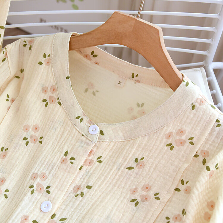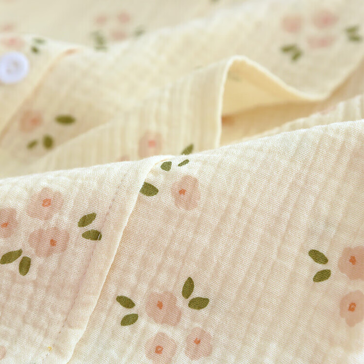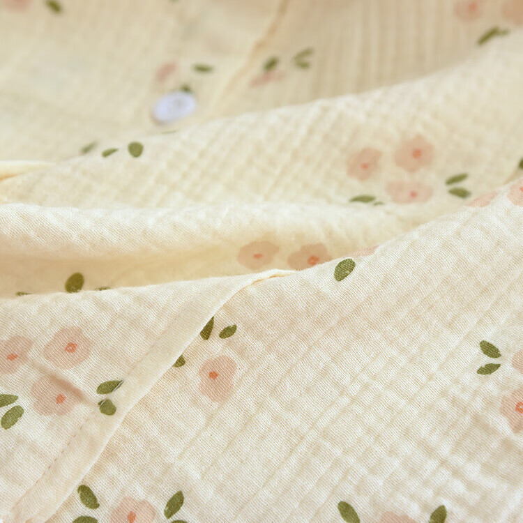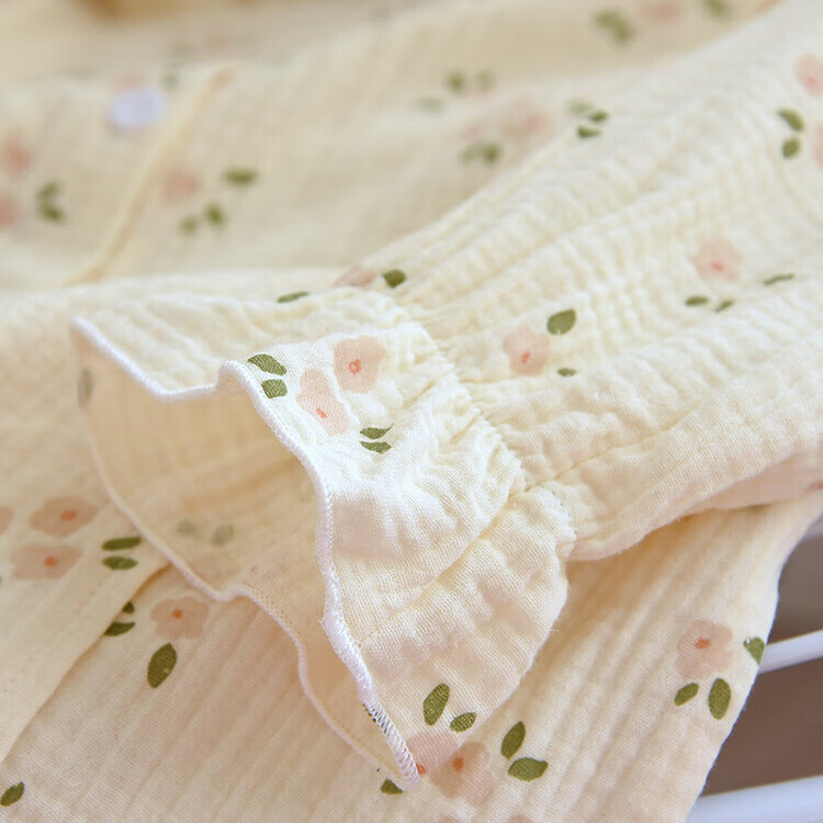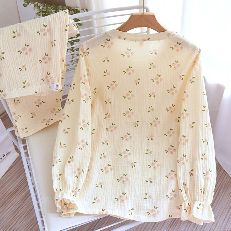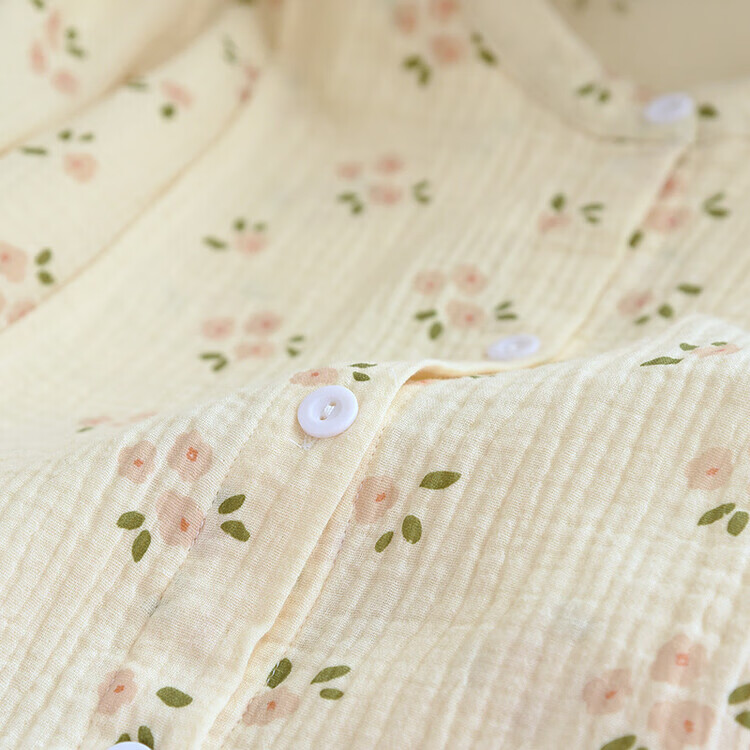 孕妇月子服产后哺乳衣超薄棉纱透气睡衣女大码家居服可外穿 梅花绉布哺乳-黄(带哺乳口) L(115-125斤)
