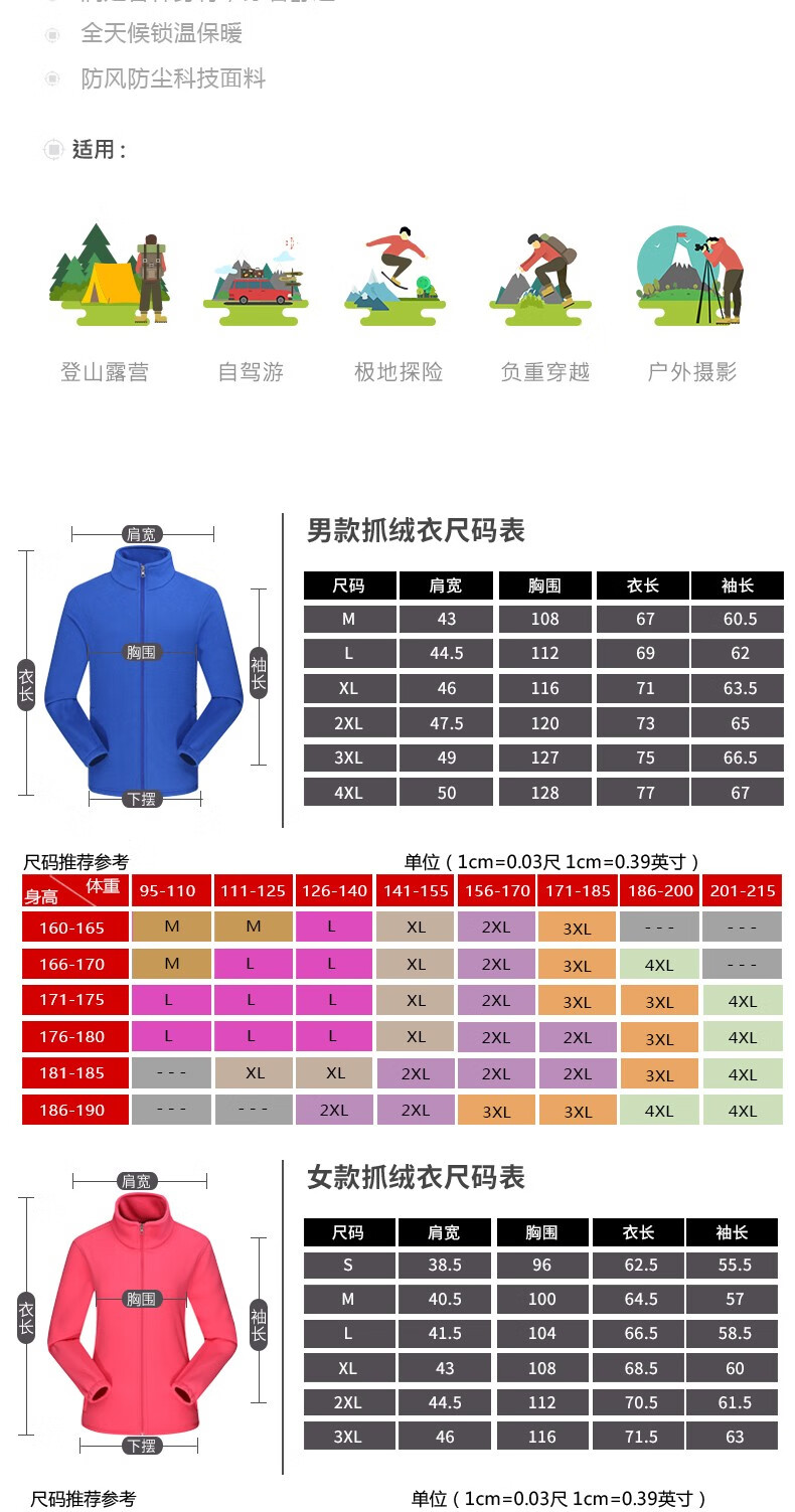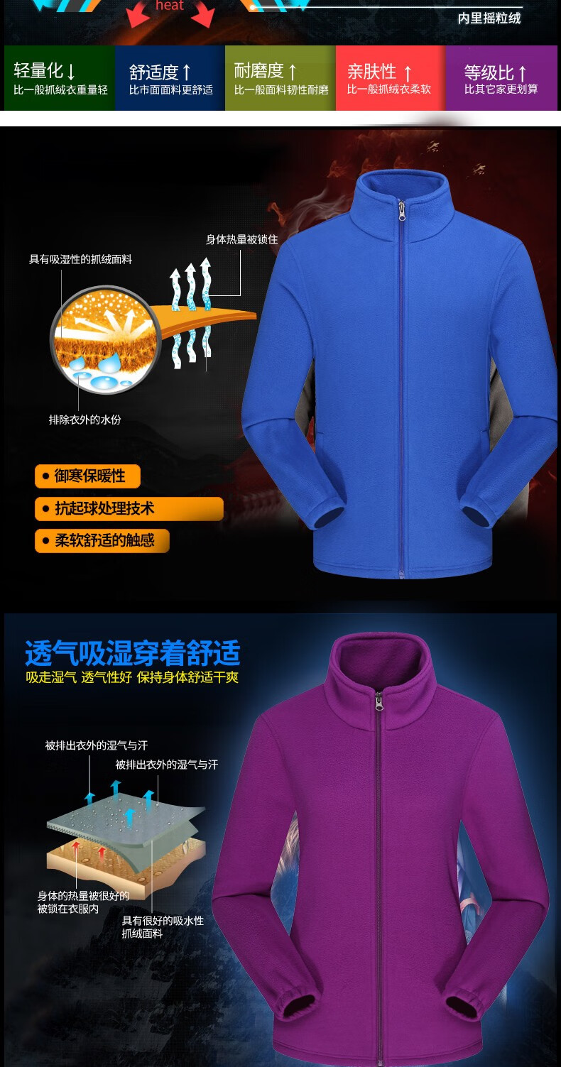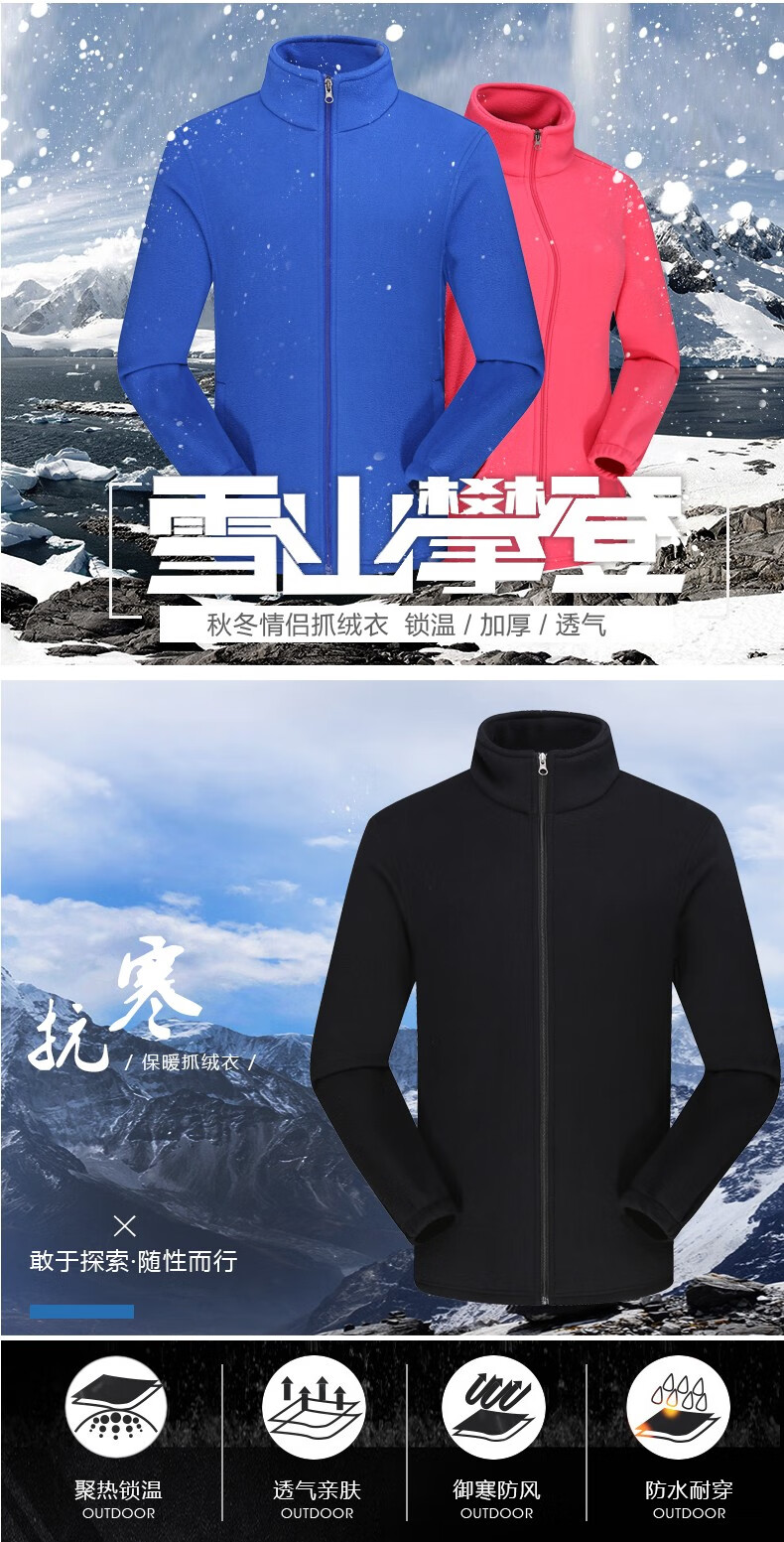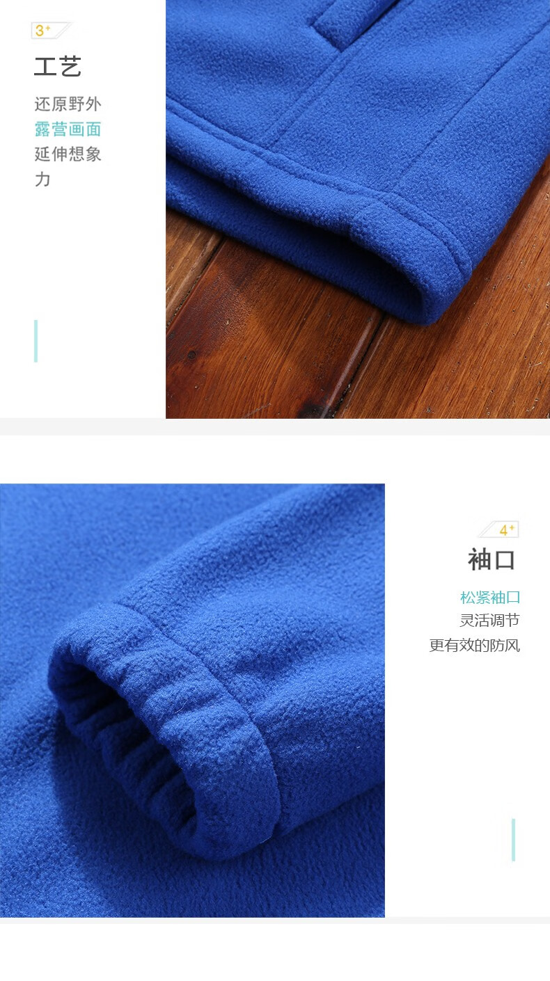 罗蒙户外抓绒衣男女 秋冬季加绒加厚摇粒绒冲锋衣内胆运动保暖外套 男款彩蓝色 XL