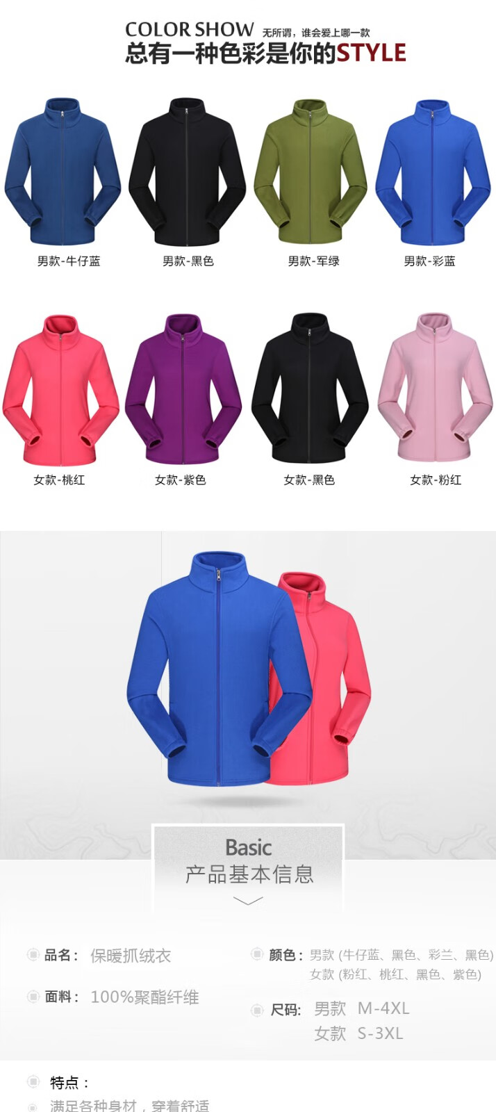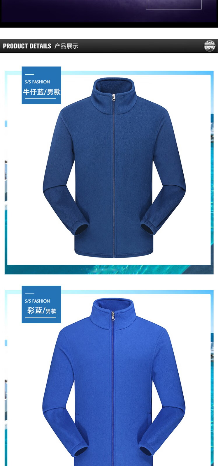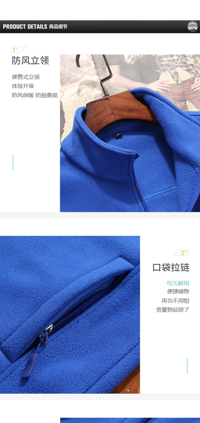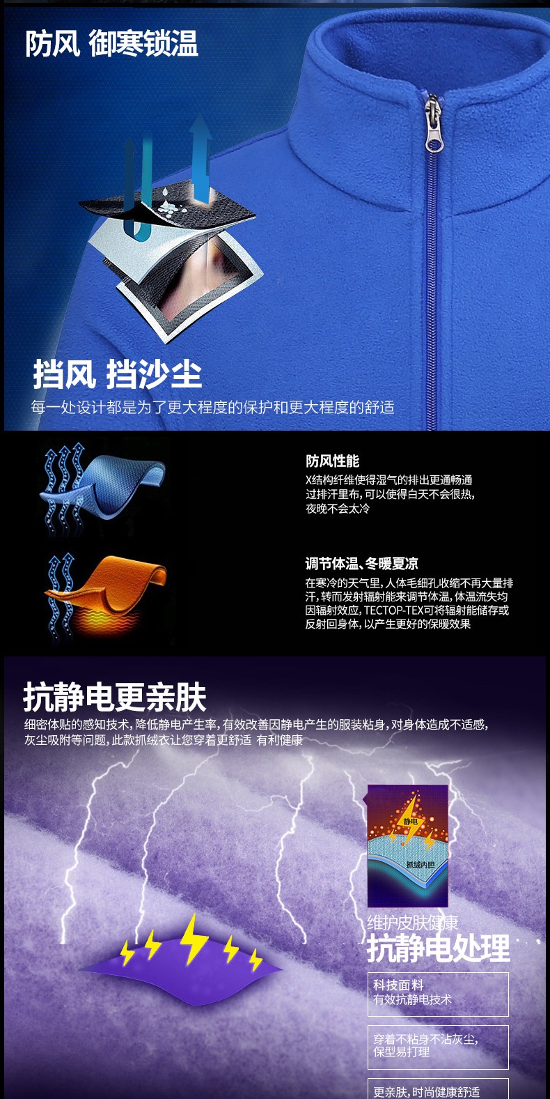 罗蒙户外抓绒衣男女 秋冬季加绒加厚摇粒绒冲锋衣内胆运动保暖外套 男款彩蓝色 XL