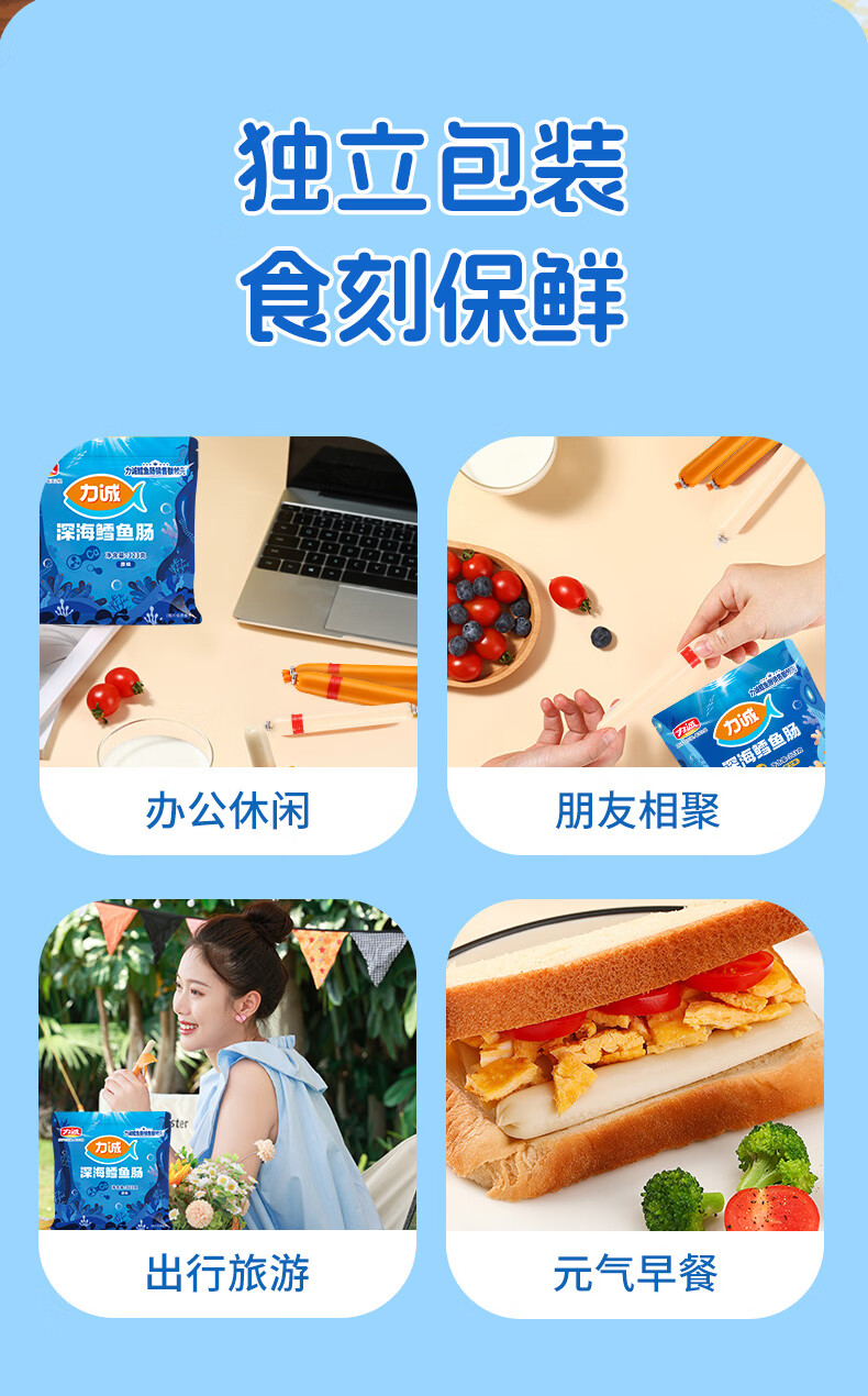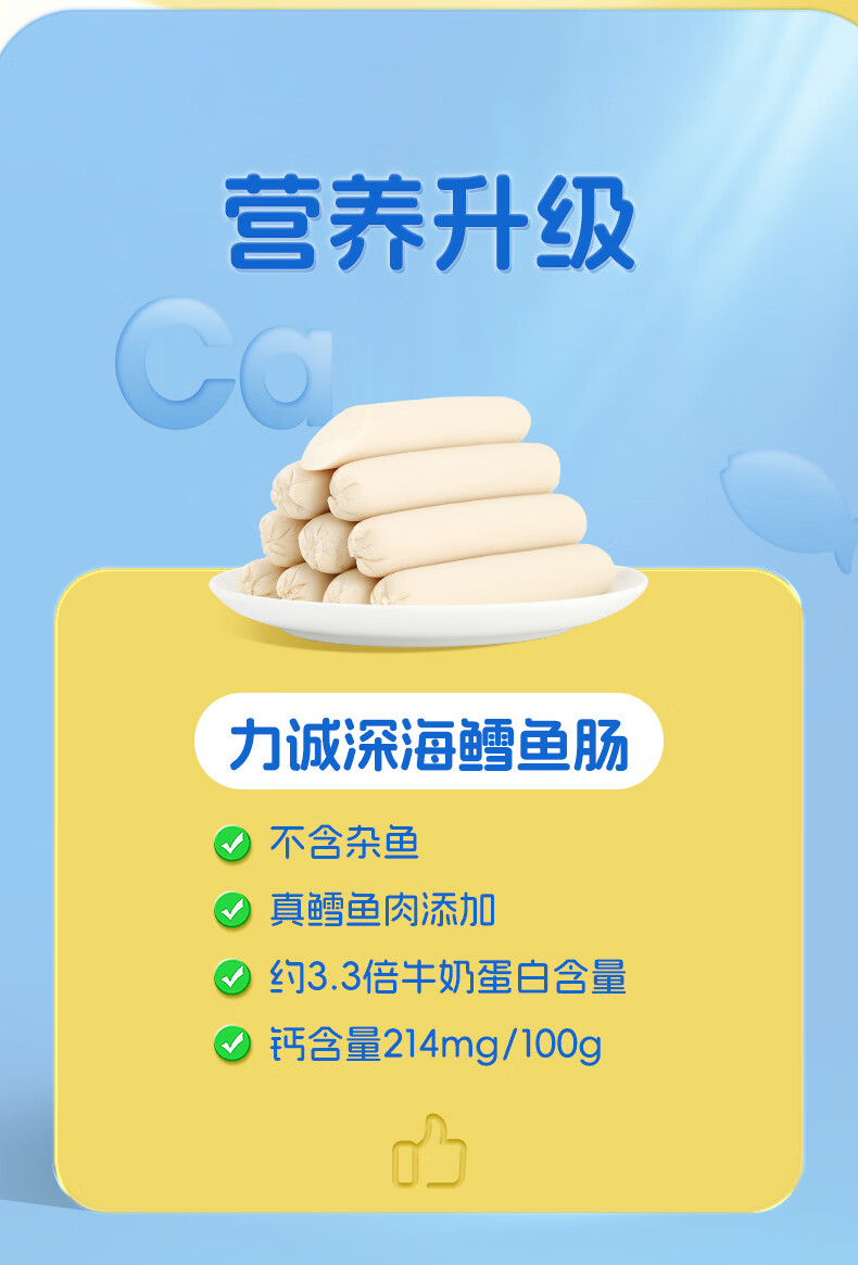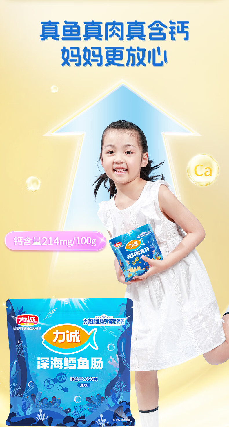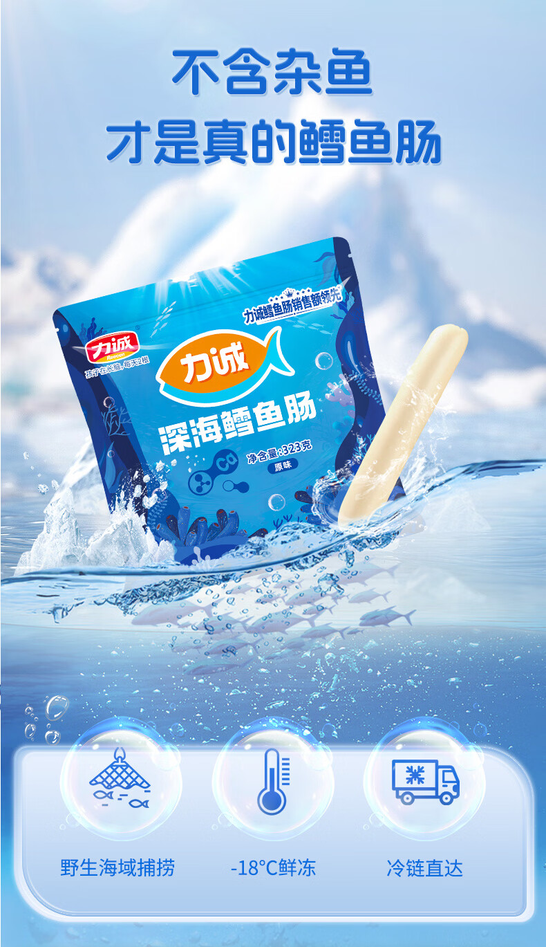 力诚鳕鱼肠儿童香肠深海真鳕鱼肉宝宝零食火腿肠含钙休闲小孩食谱 深海鳕鱼肠原味323g*1袋+随机赠品*2份
