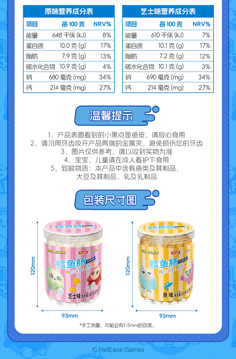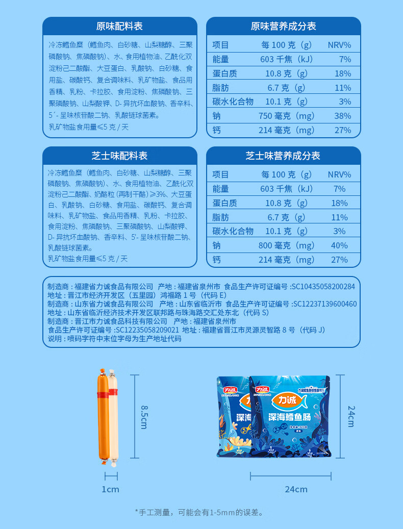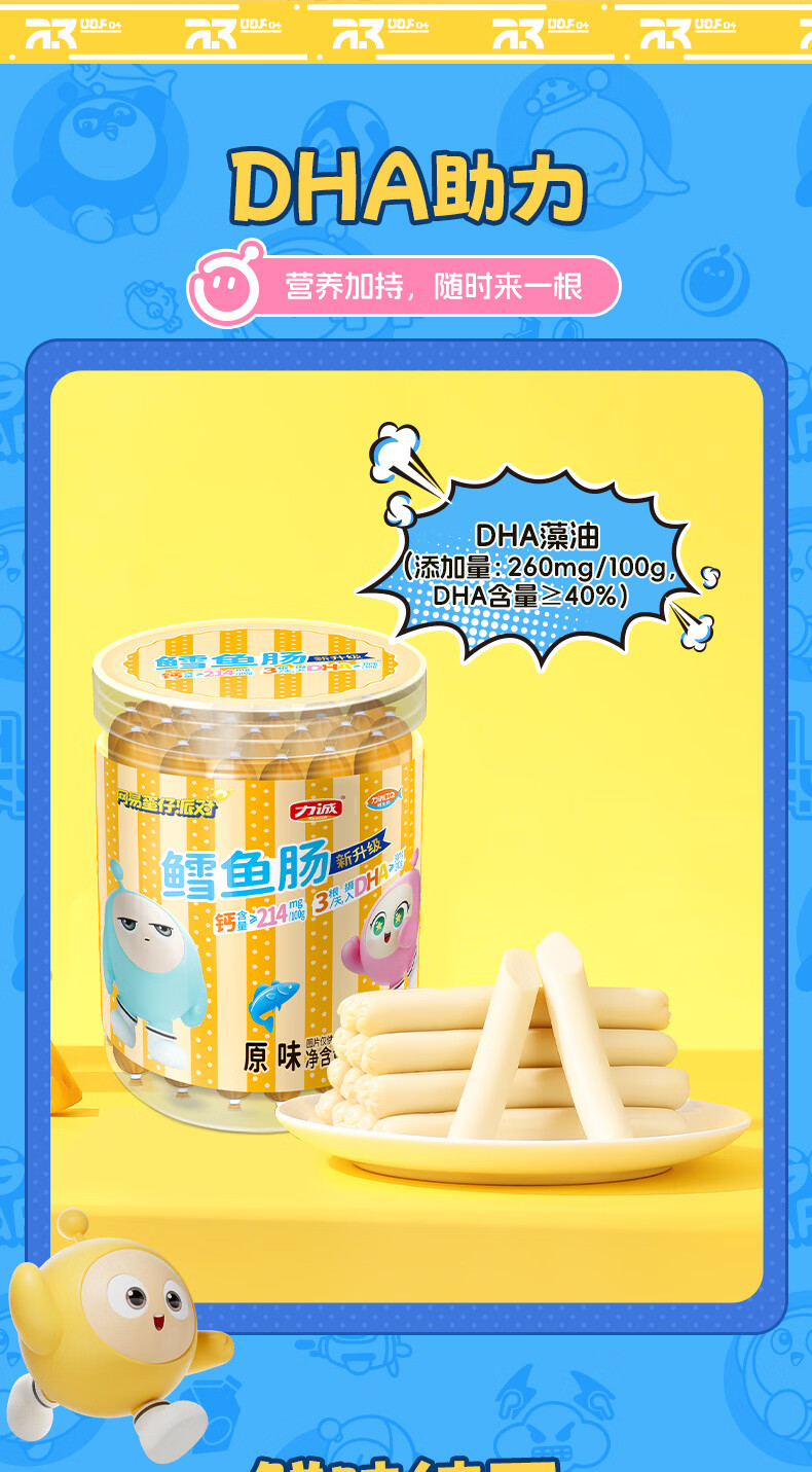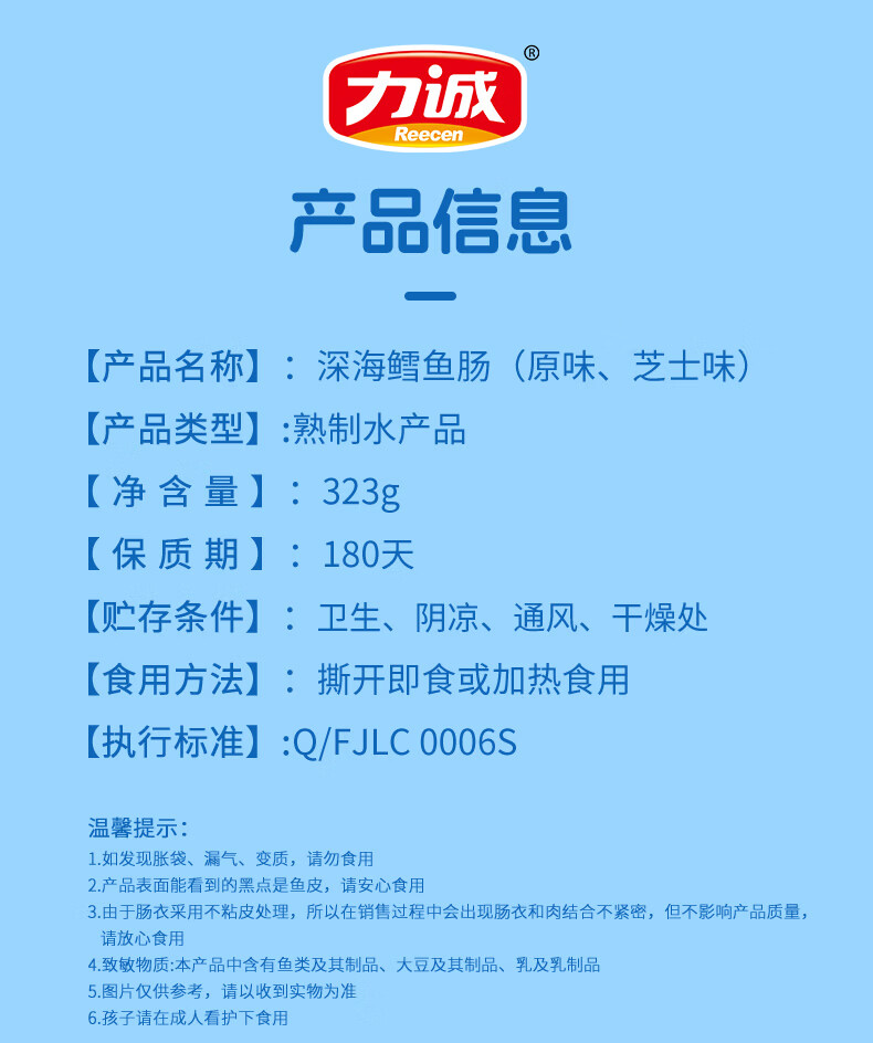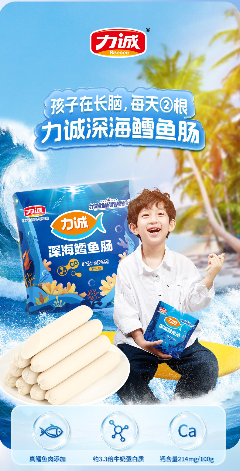 力诚鳕鱼肠儿童香肠深海真鳕鱼肉宝宝零食火腿肠含钙休闲小孩食谱 深海鳕鱼肠原味323g*1袋+随机赠品*2份