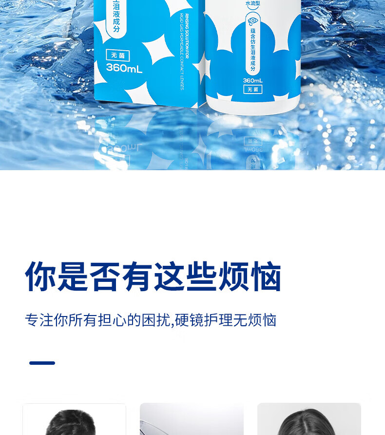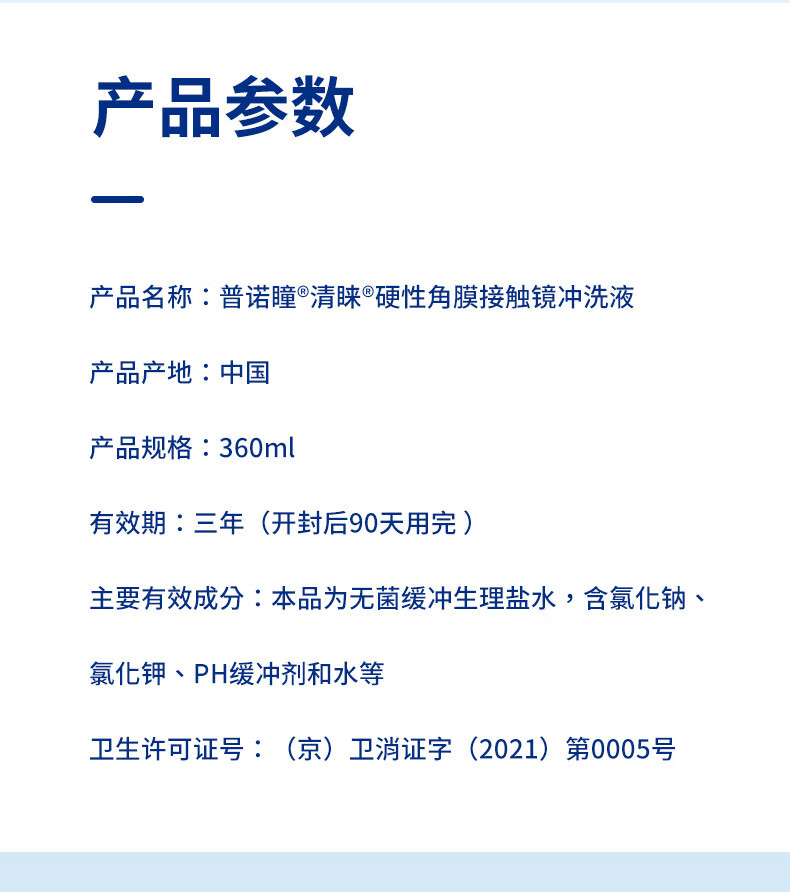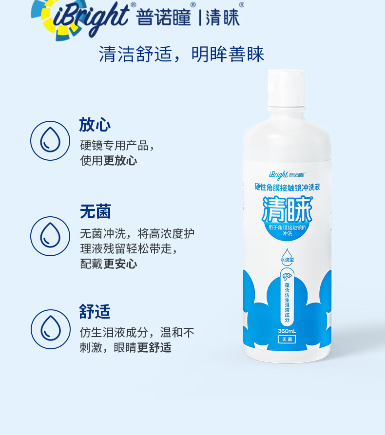 普诺瞳清睐OK镜RGP硬性角膜接触镜冲洗液生理盐水无菌冲洗液360ml*4瓶
