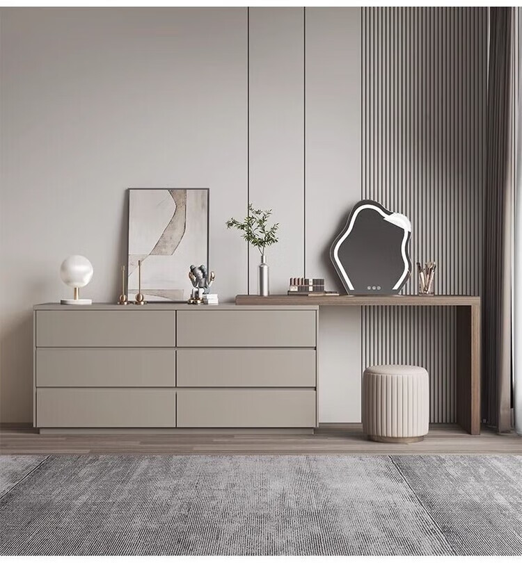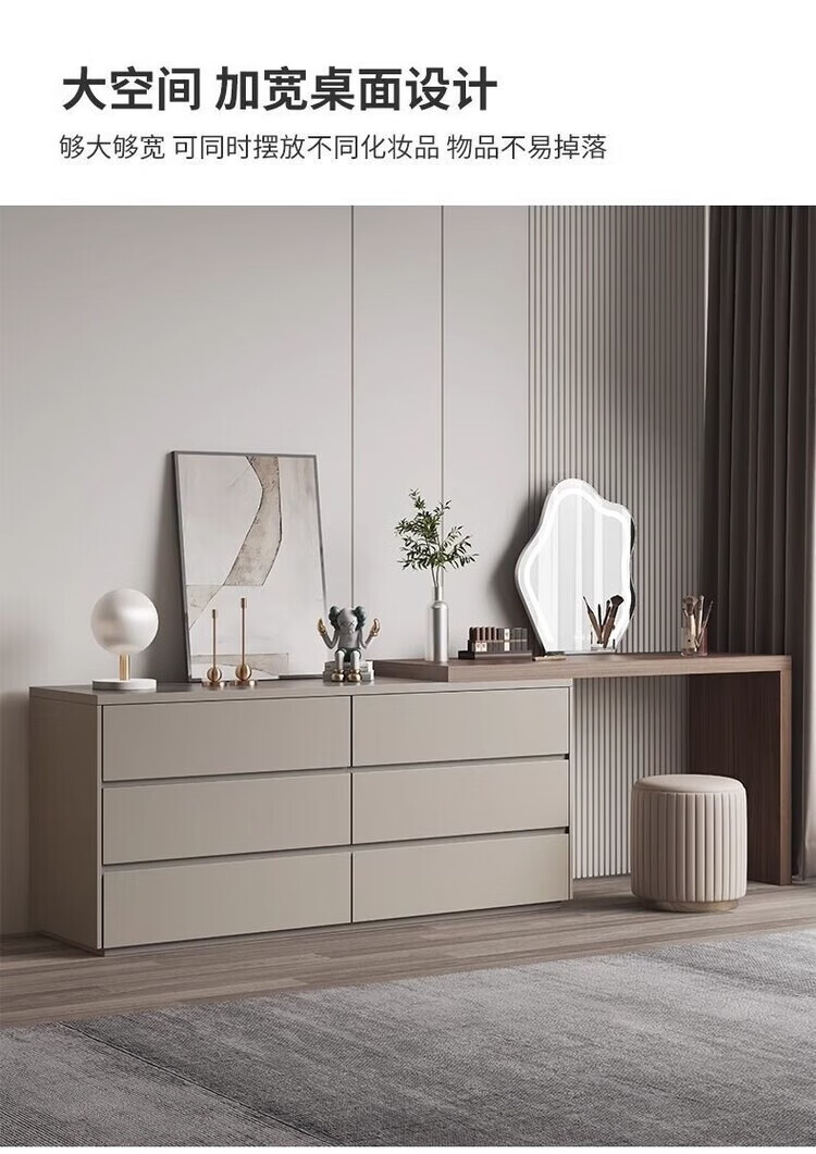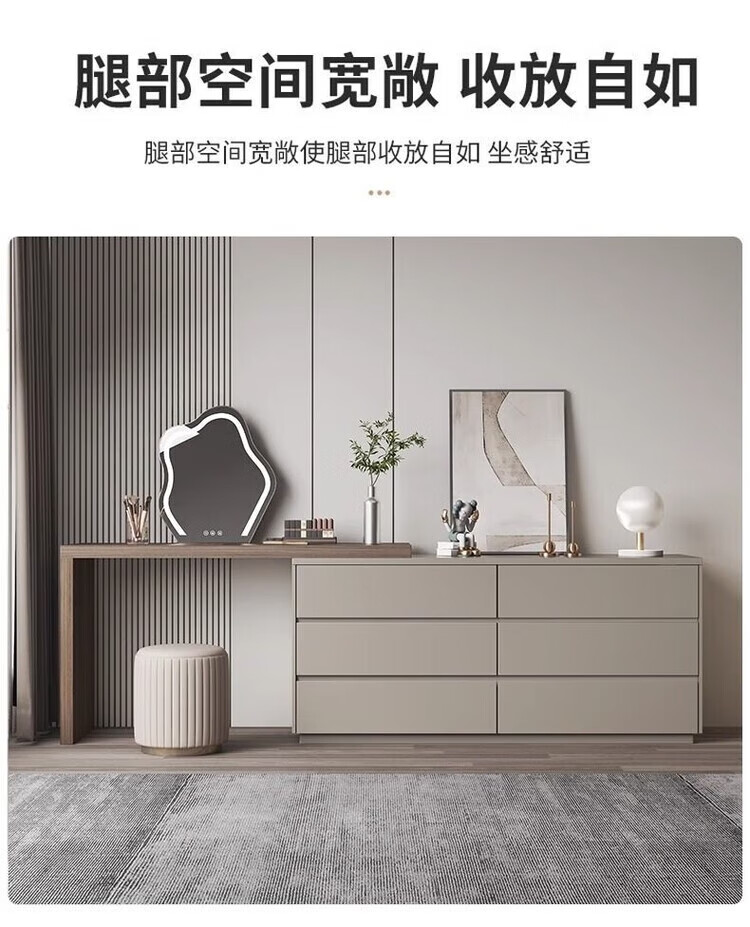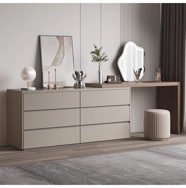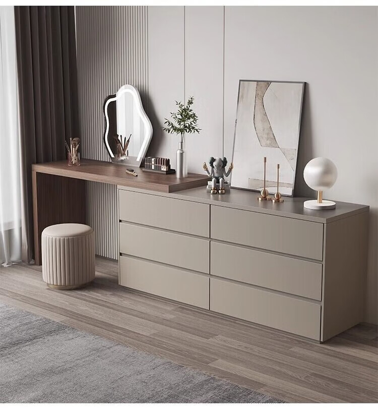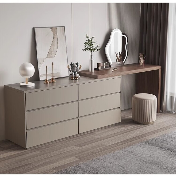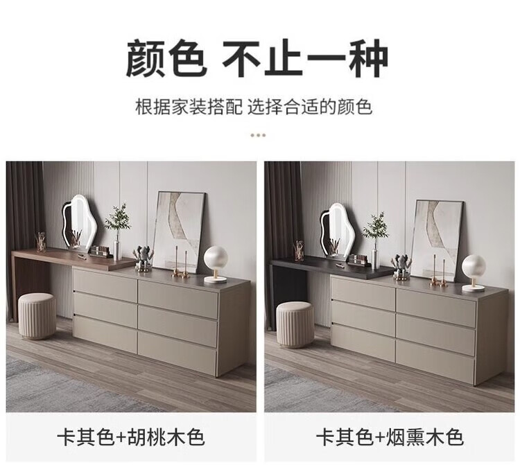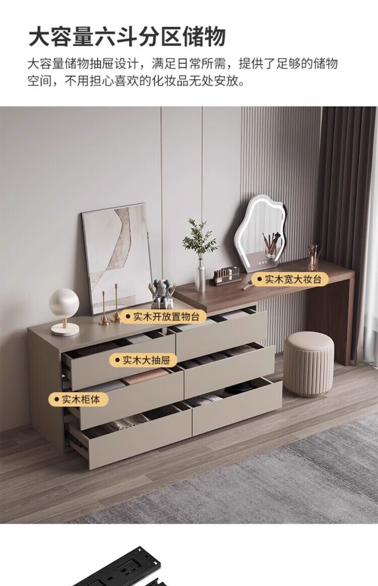 倘然之家意式极简梳妆台储物柜一体卧室轻奢小型化妆桌床尾收纳柜斗柜 胡桃色120桌+120卡其色六抽柜 入户包安装【实木生态板】/
