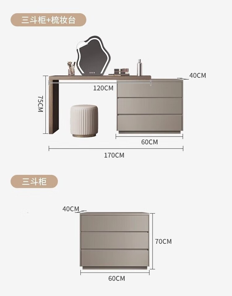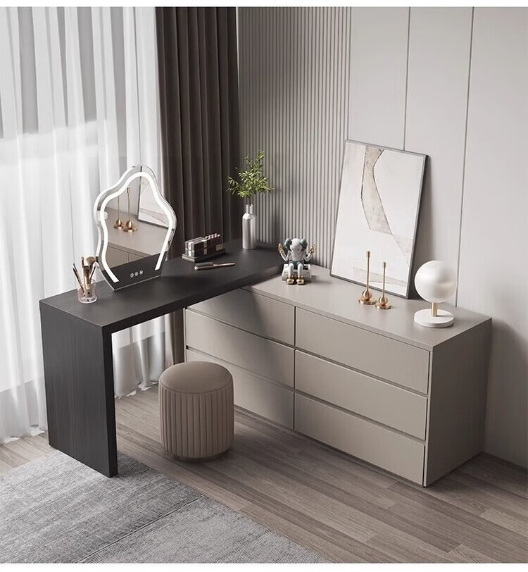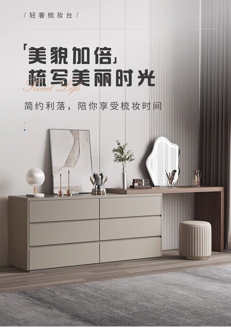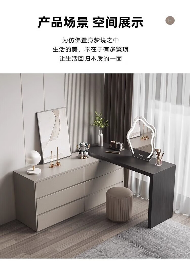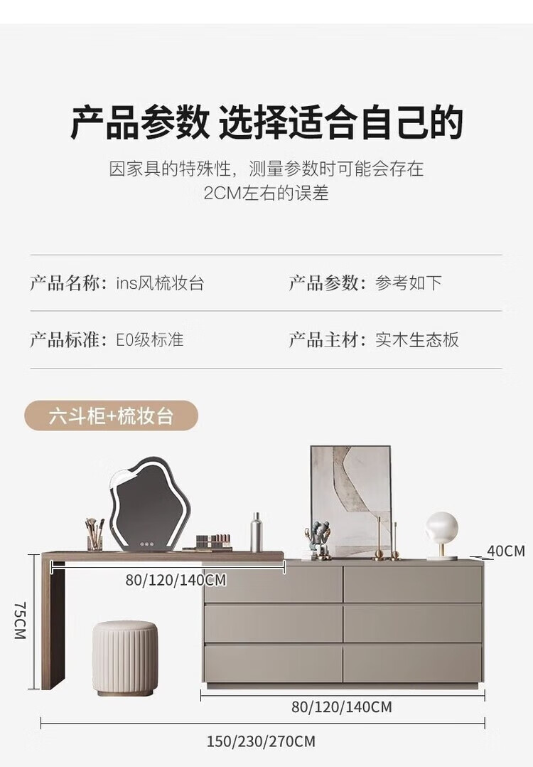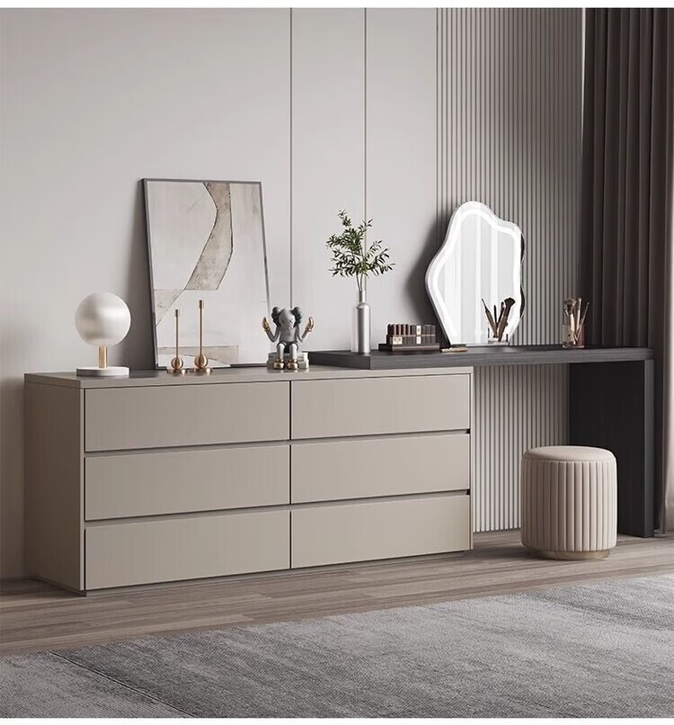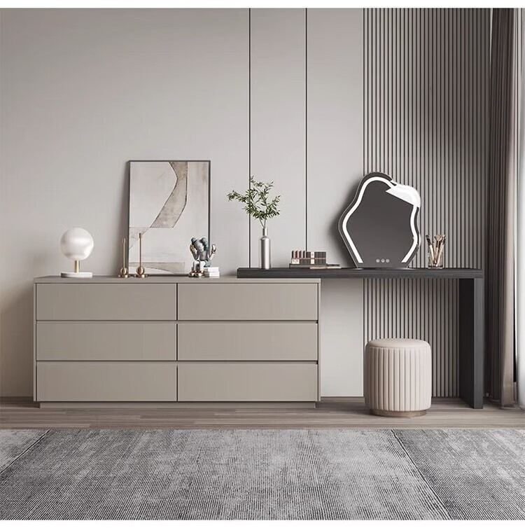 倘然之家意式极简梳妆台储物柜一体卧室轻奢小型化妆桌床尾收纳柜斗柜 胡桃色120桌+120卡其色六抽柜 入户包安装【实木生态板】/