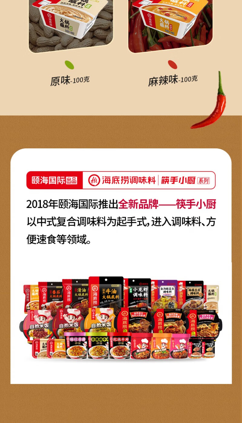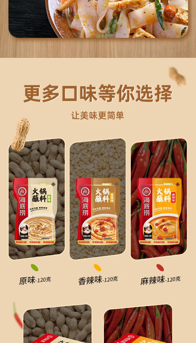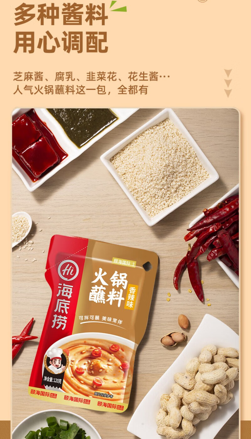海底捞火锅蘸料120g原味香辣麻辣芝麻酱火锅麻辣烫油碟一人份家用酱料 火锅蘸料120克 【香辣】