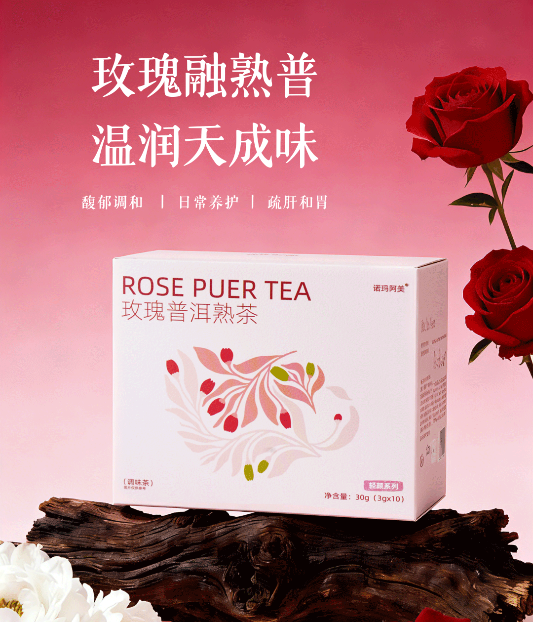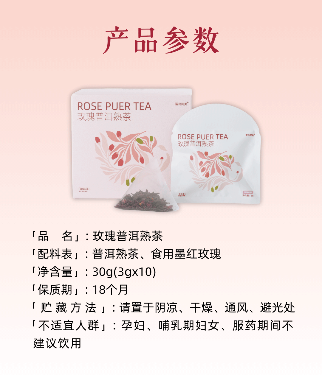 诺玛阿美玫瑰普洱熟茶 补气血舒心美容养颜解腻养胃养生袋泡茶叶包女神茶 1盒10包(养胃消食解腻疏肝补气血养颜)