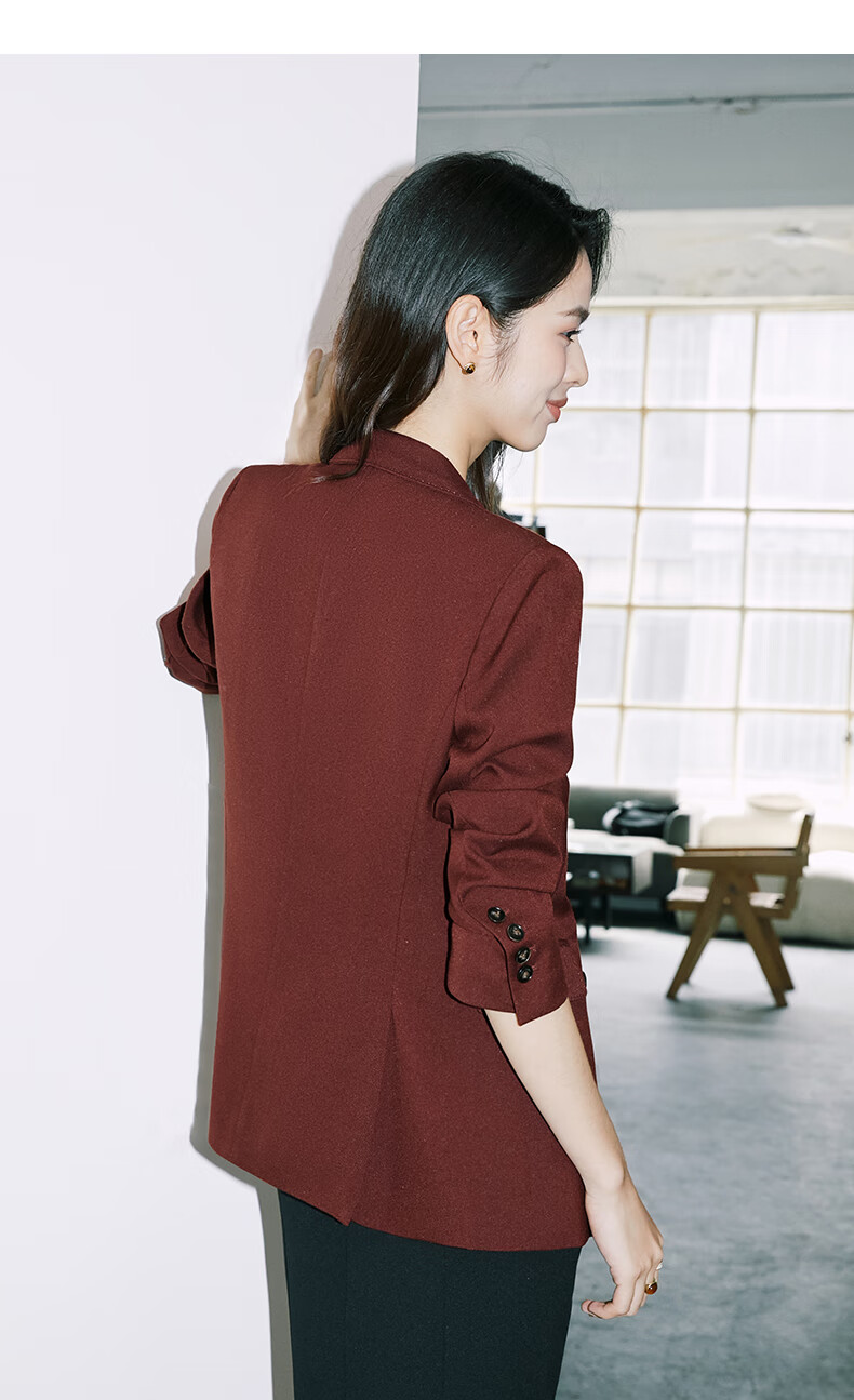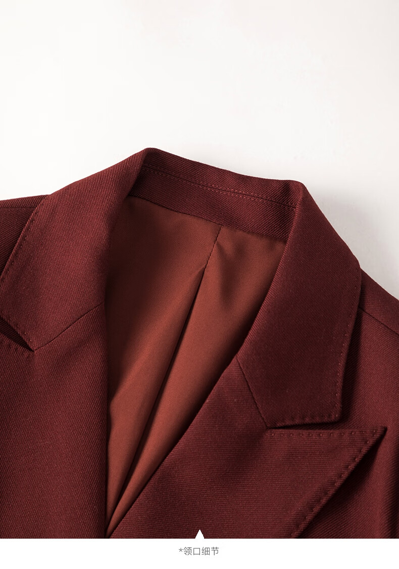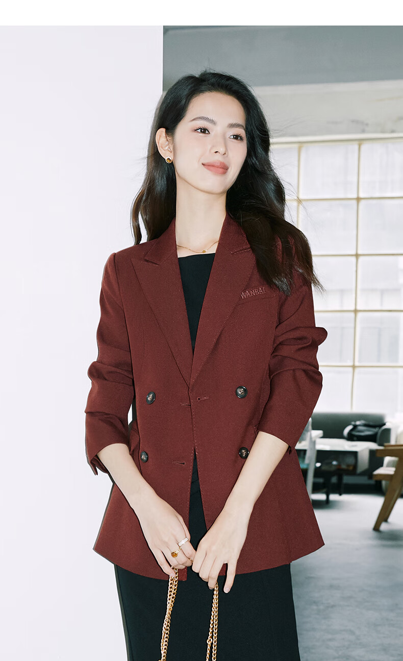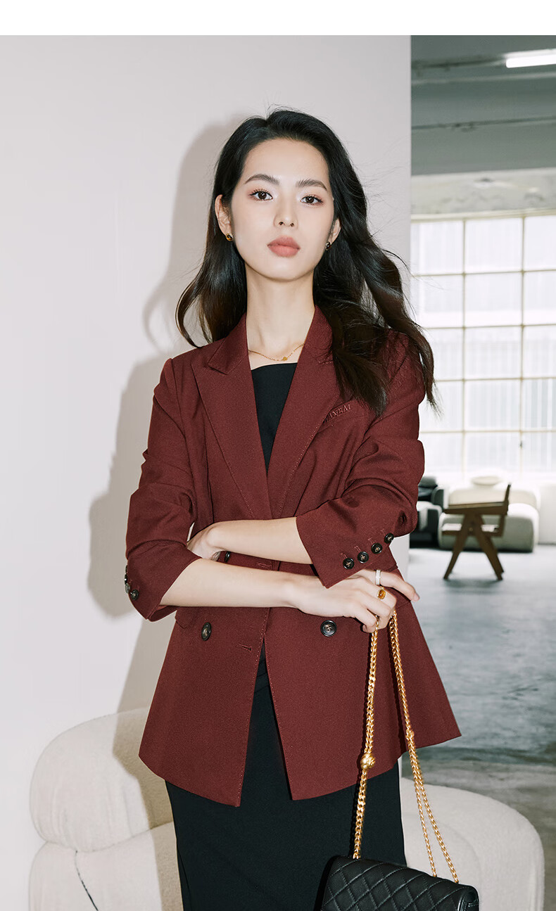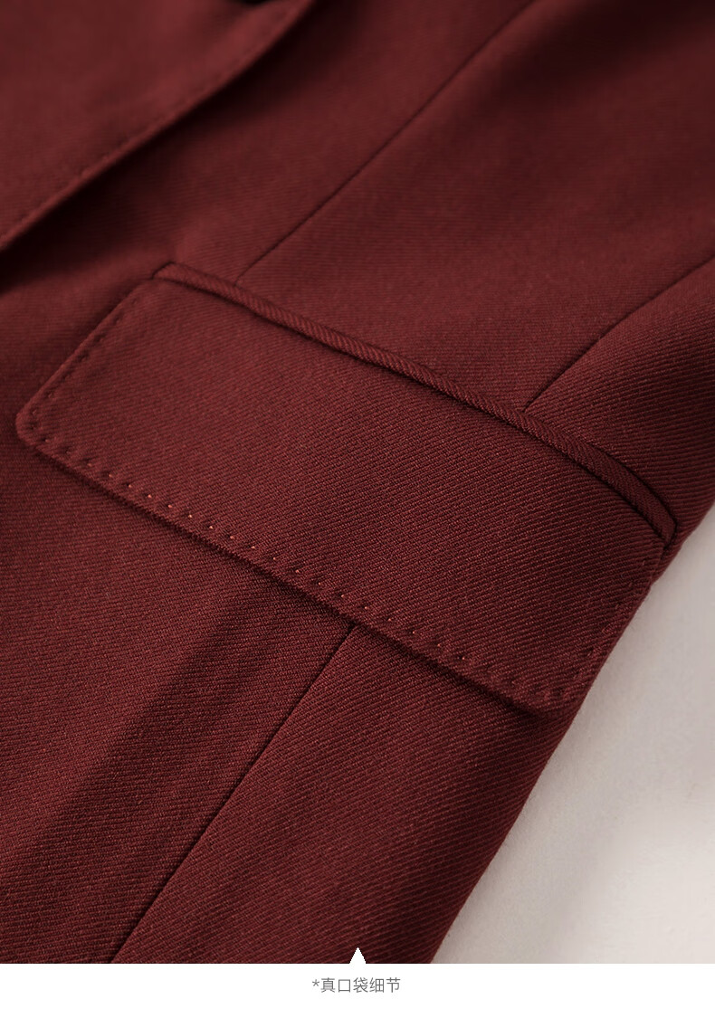 晚白【专享】2026春季气质翻驳领通勤减龄休闲百搭羊毛西装外套女 深红色 S