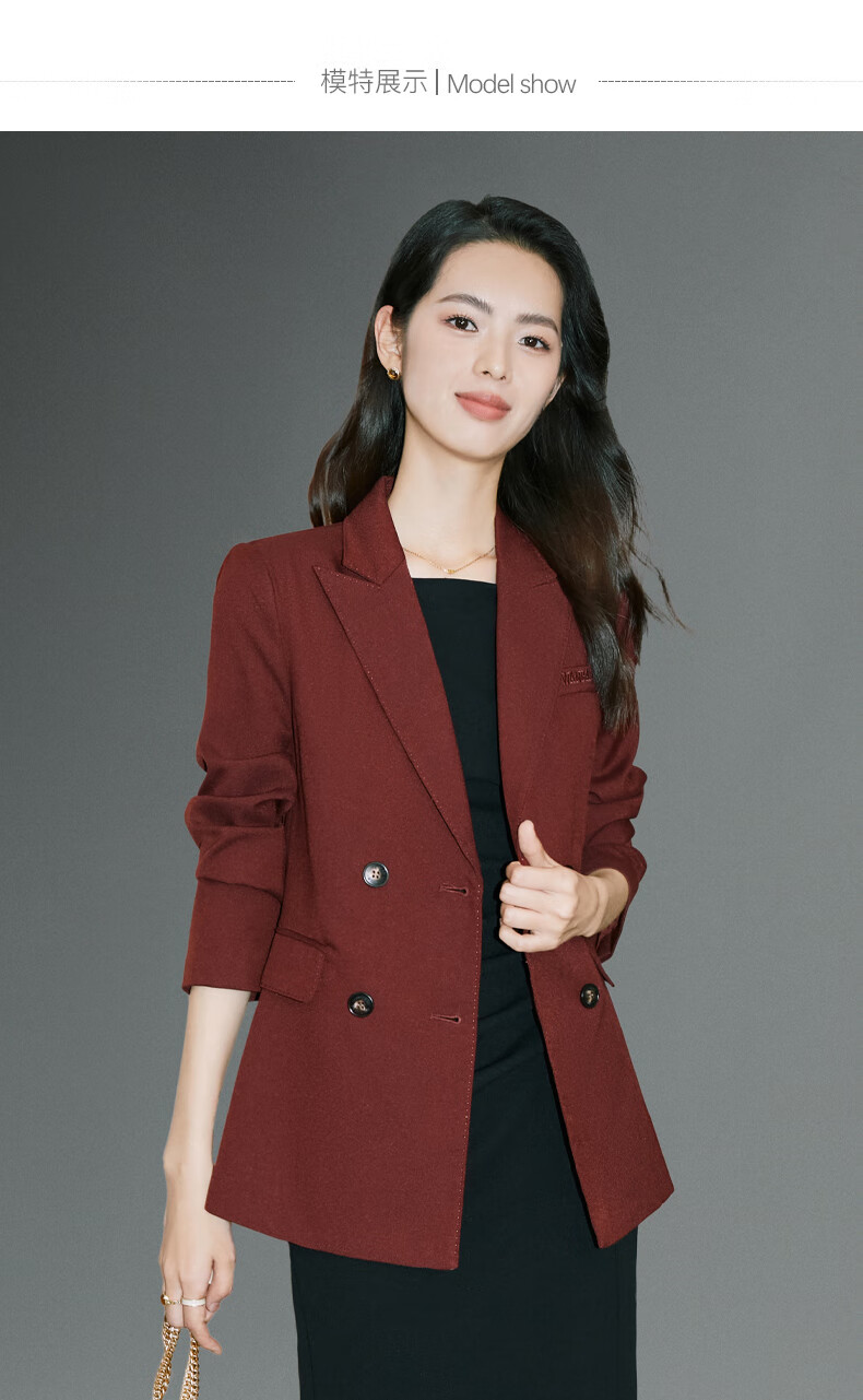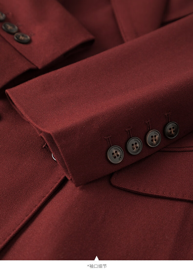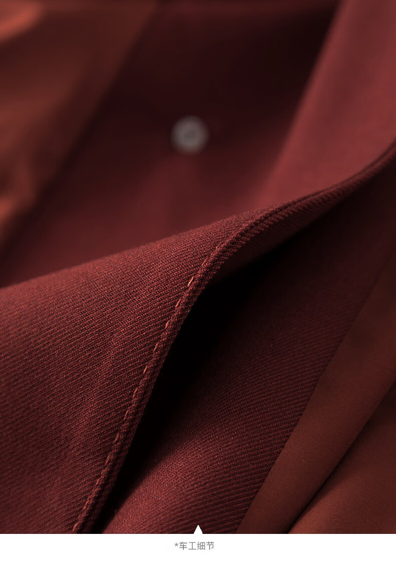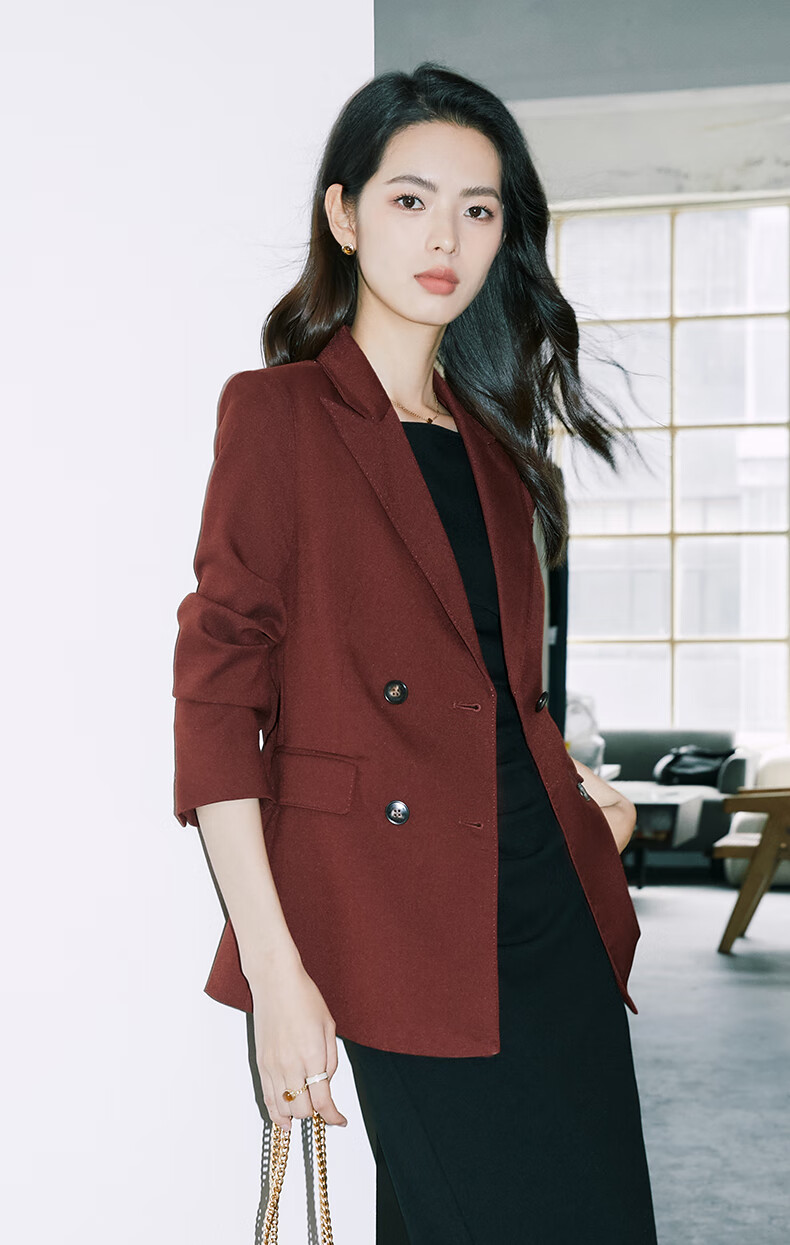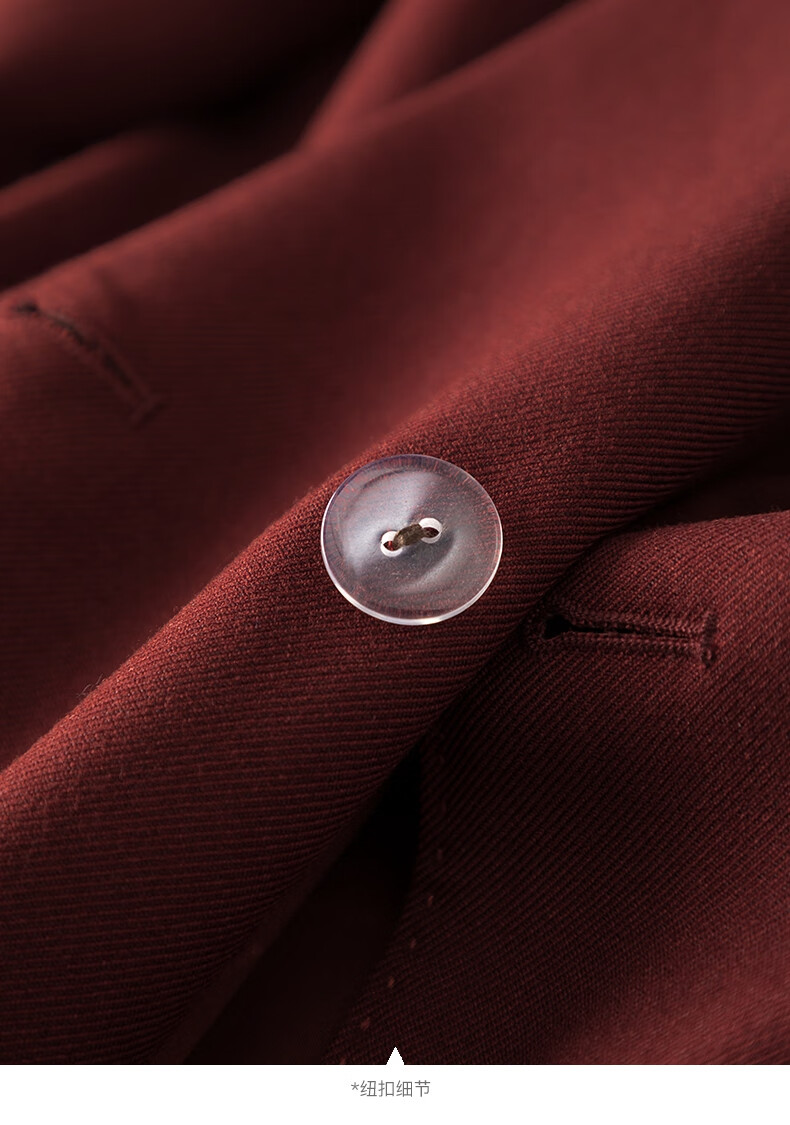 晚白【专享】2026春季气质翻驳领通勤减龄休闲百搭羊毛西装外套女 深红色 S