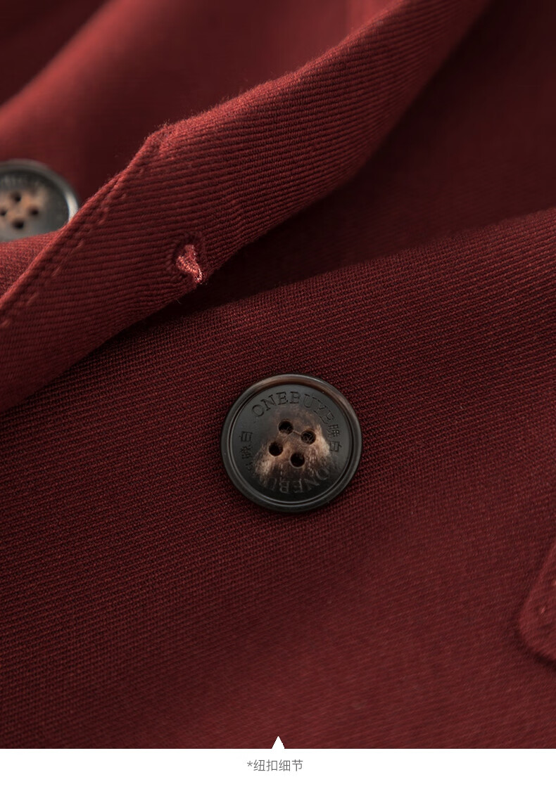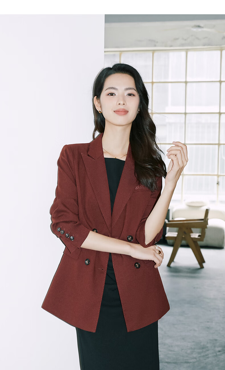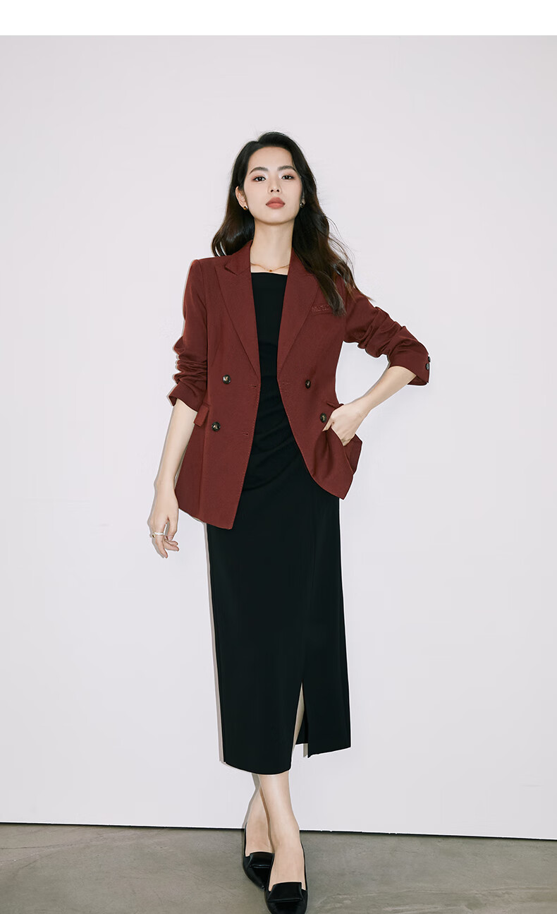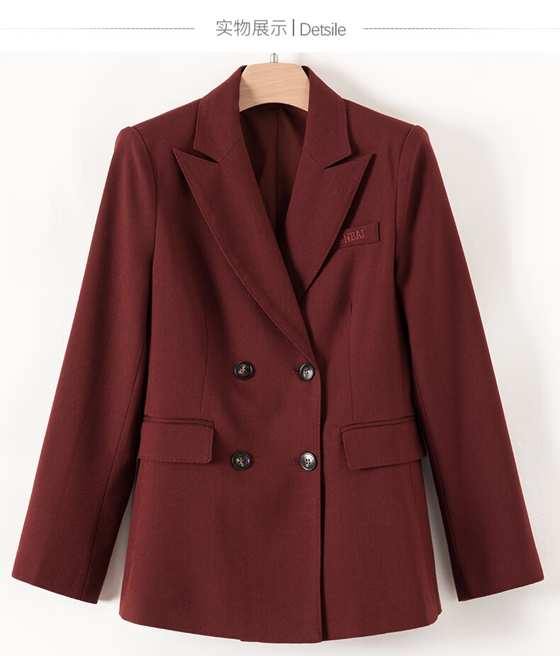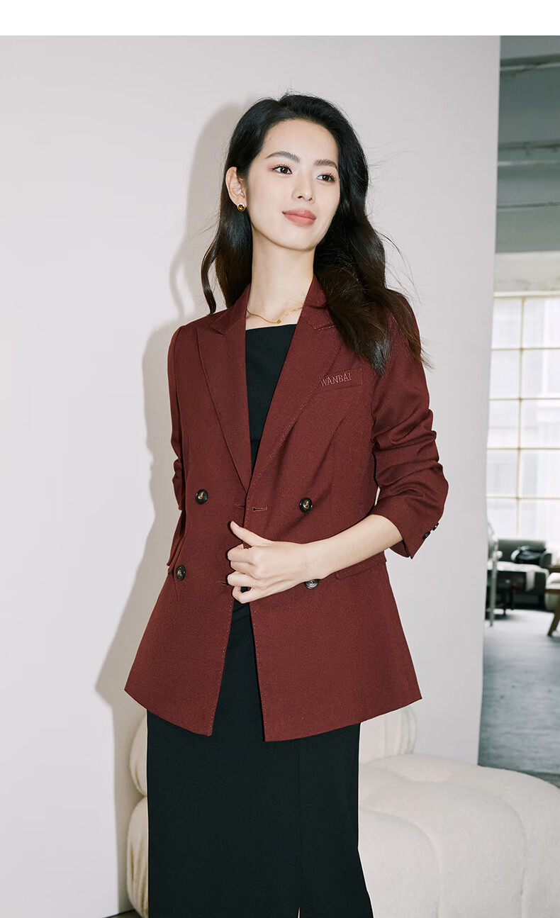 晚白【专享】2026春季气质翻驳领通勤减龄休闲百搭羊毛西装外套女 深红色 S