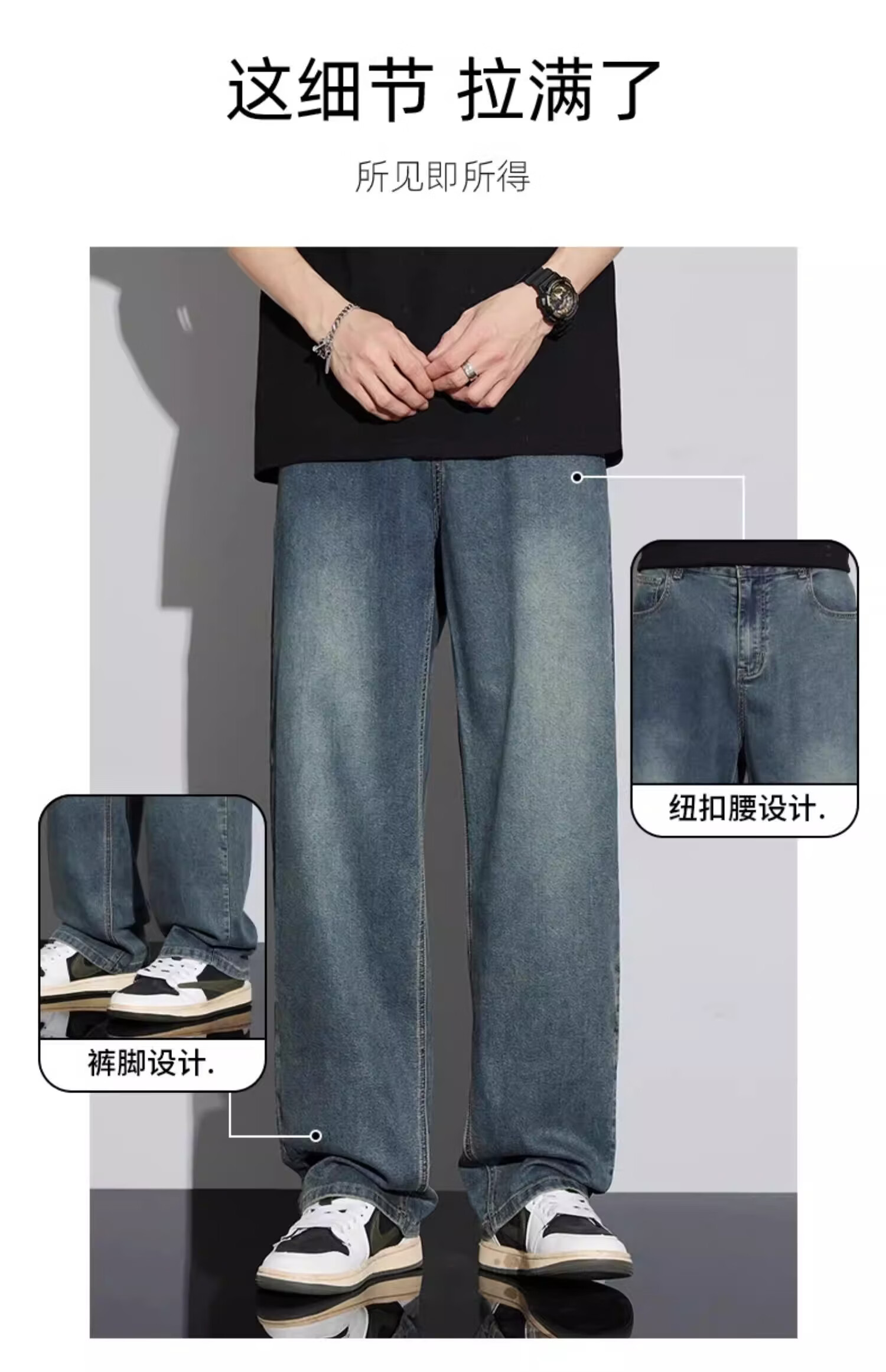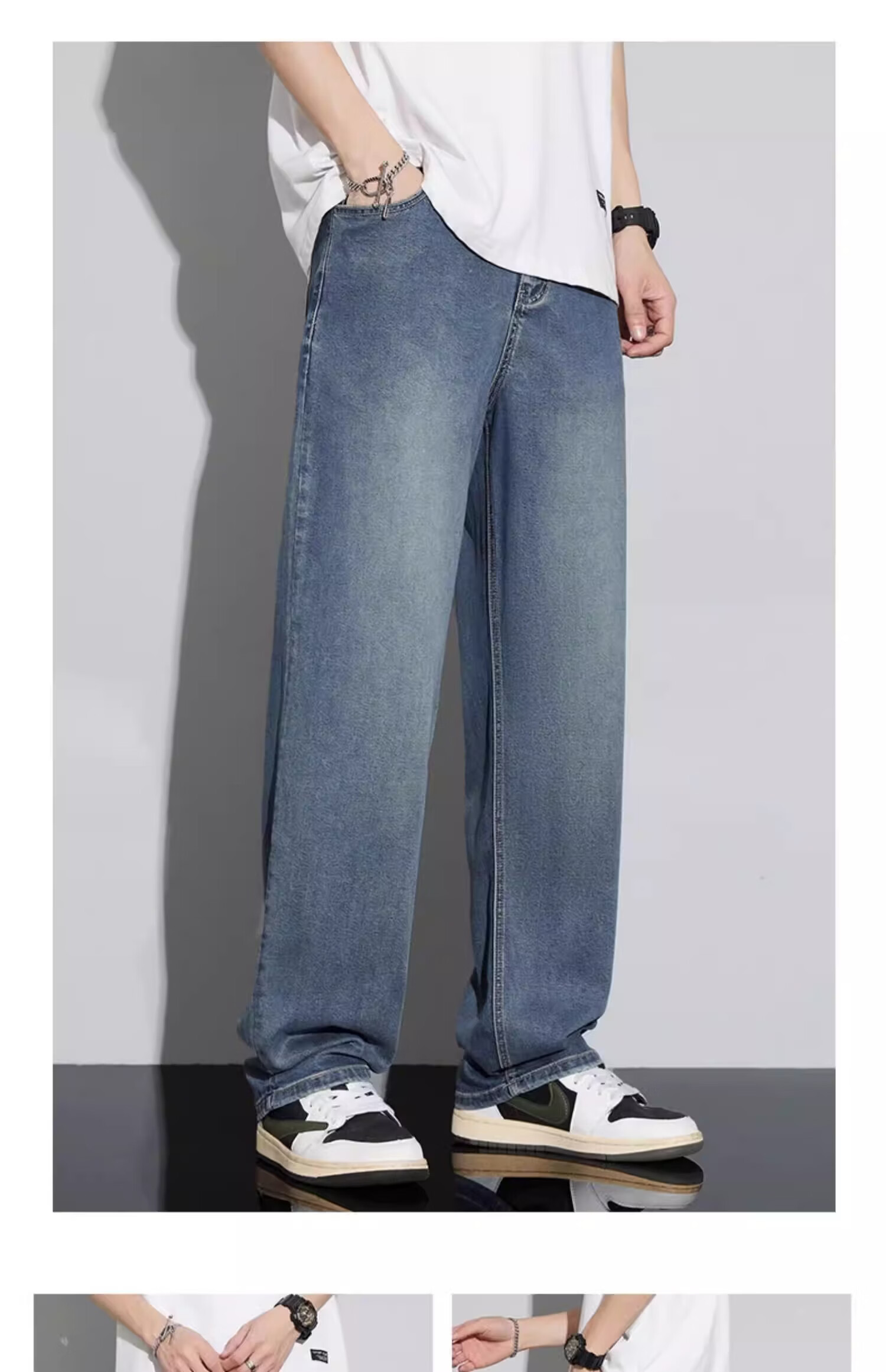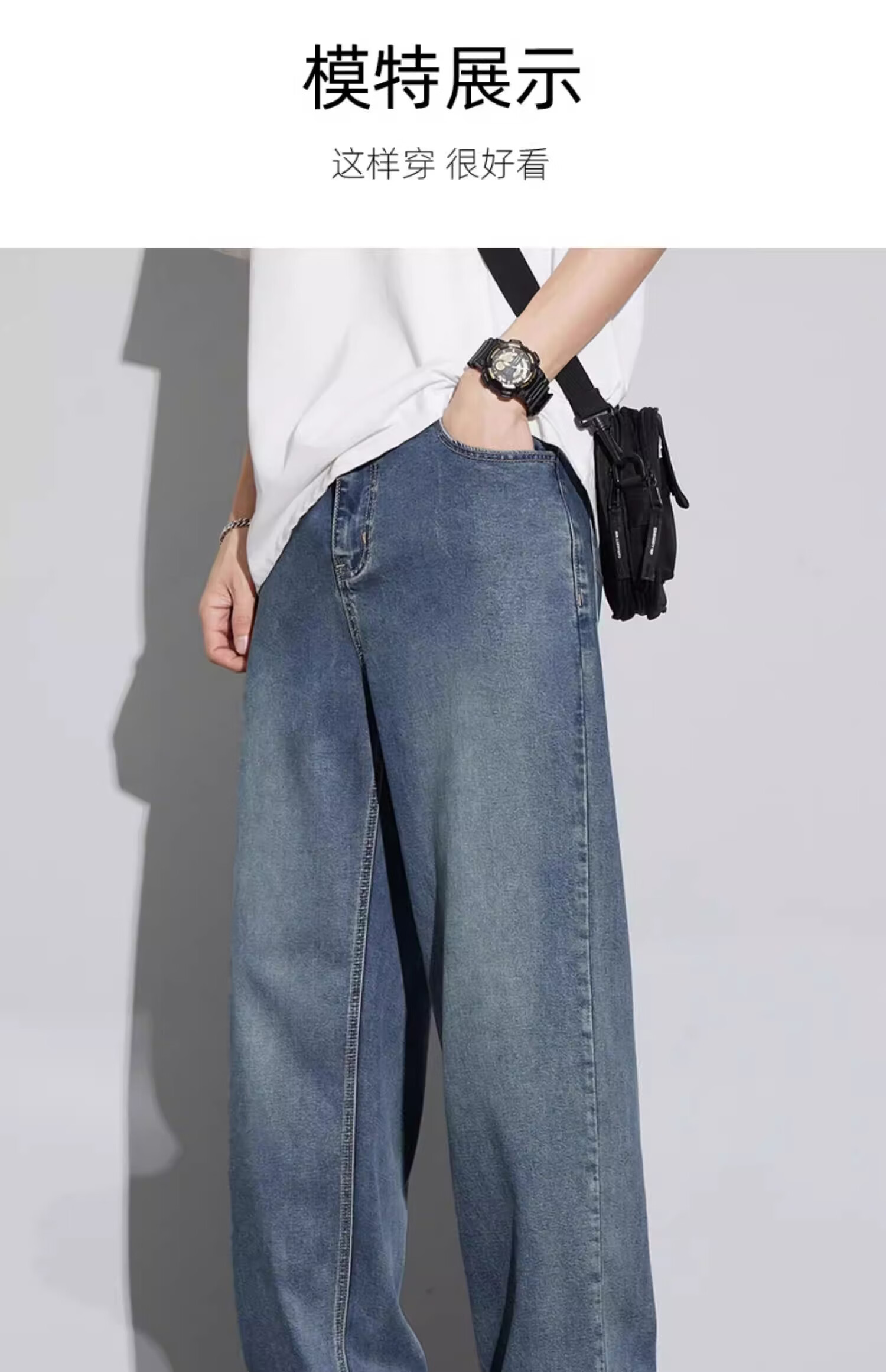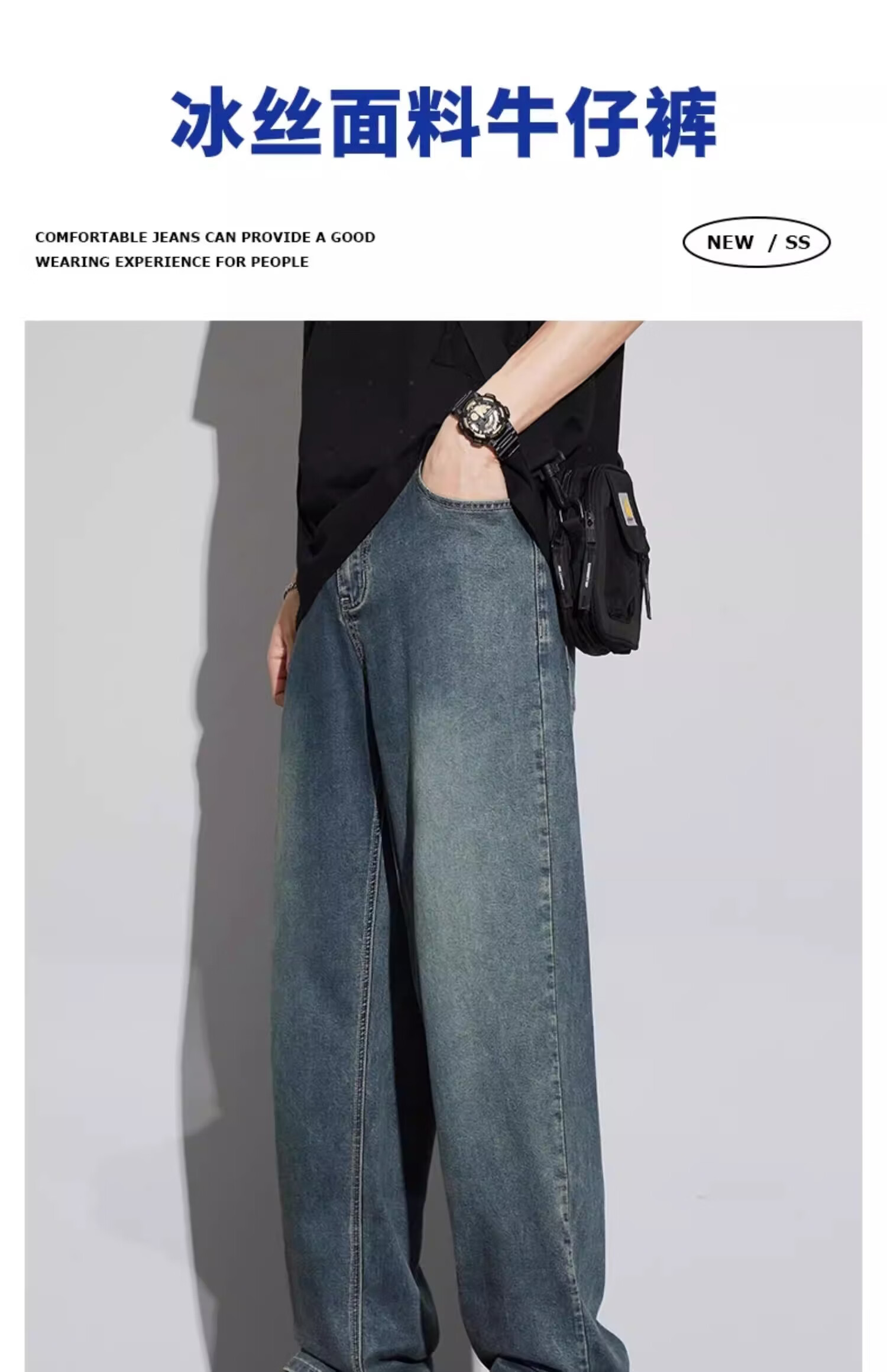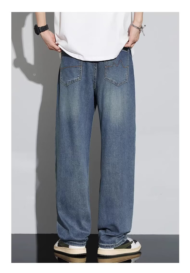 真维斯(Jeanswest)夏季薄款天丝牛仔裤男士2026新款潮牌复古直筒宽松阔腿冰丝长裤子 817复古蓝(拉链裤腰) 28 【建议90-100斤】