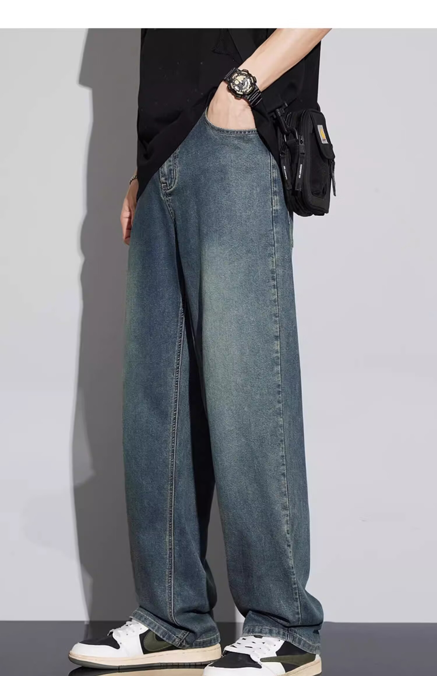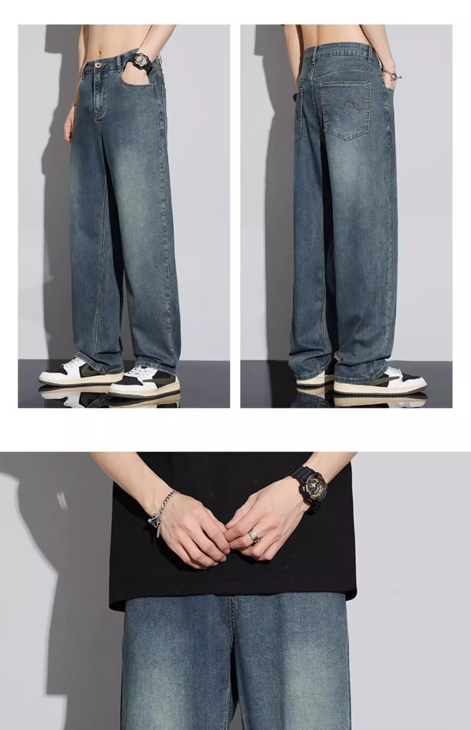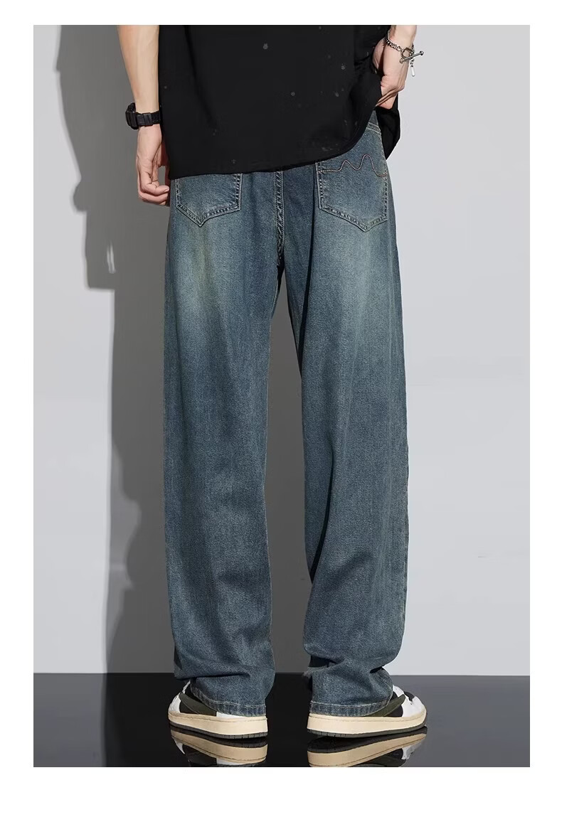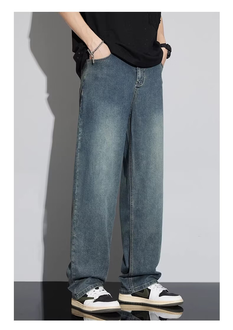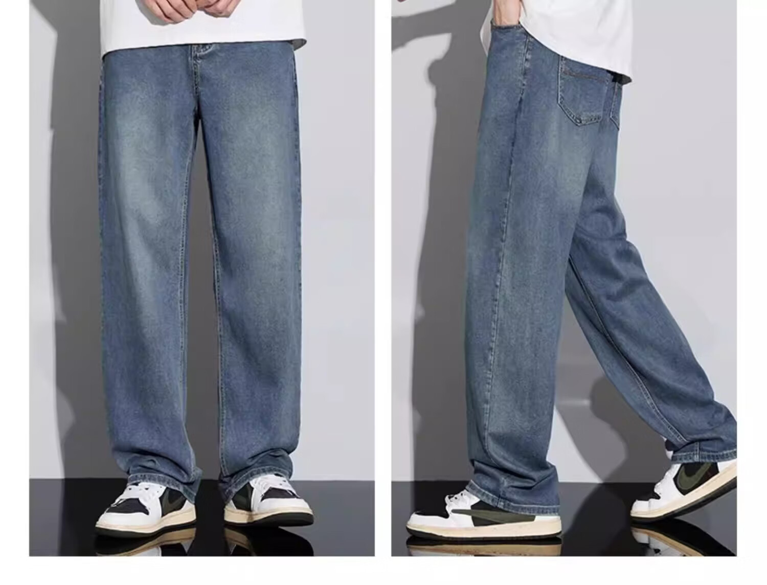 真维斯(Jeanswest)夏季薄款天丝牛仔裤男士2026新款潮牌复古直筒宽松阔腿冰丝长裤子 817复古蓝(拉链裤腰) 28 【建议90-100斤】