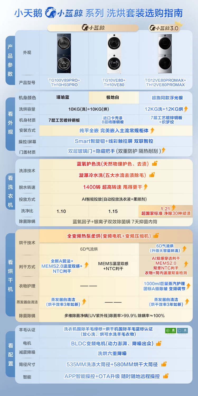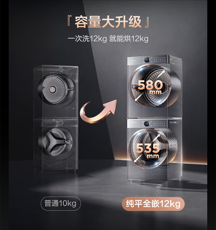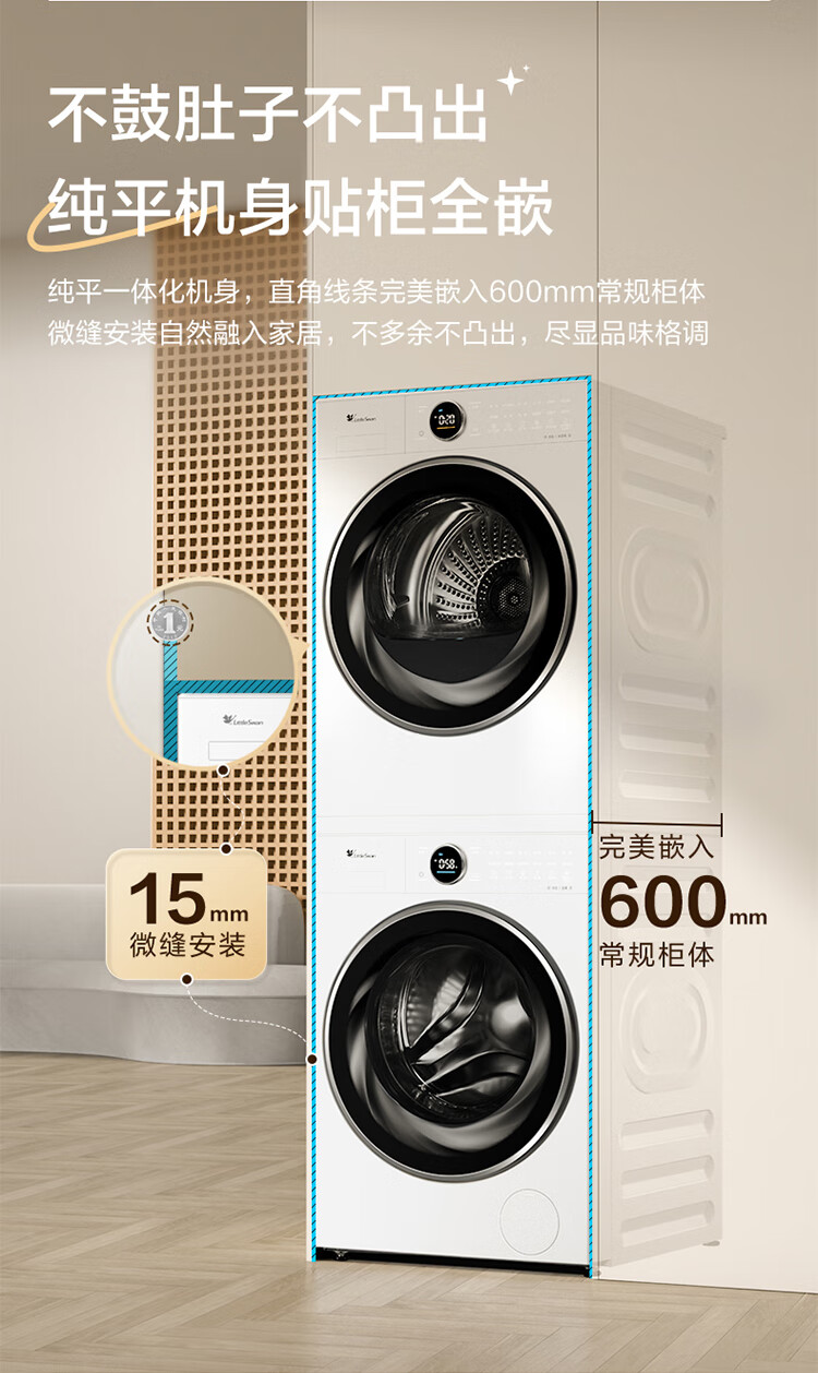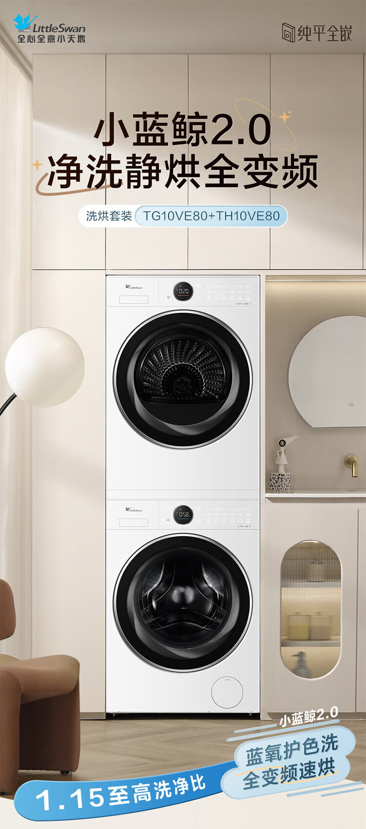 小天鹅(LittleSwan)洗烘套装大容量滚筒洗衣机+热泵烘干机全变频国际羊毛双标认证蓝氧护色除菌纯平全嵌 12VE80PROMAX+80P【小蓝鲸3.0】
