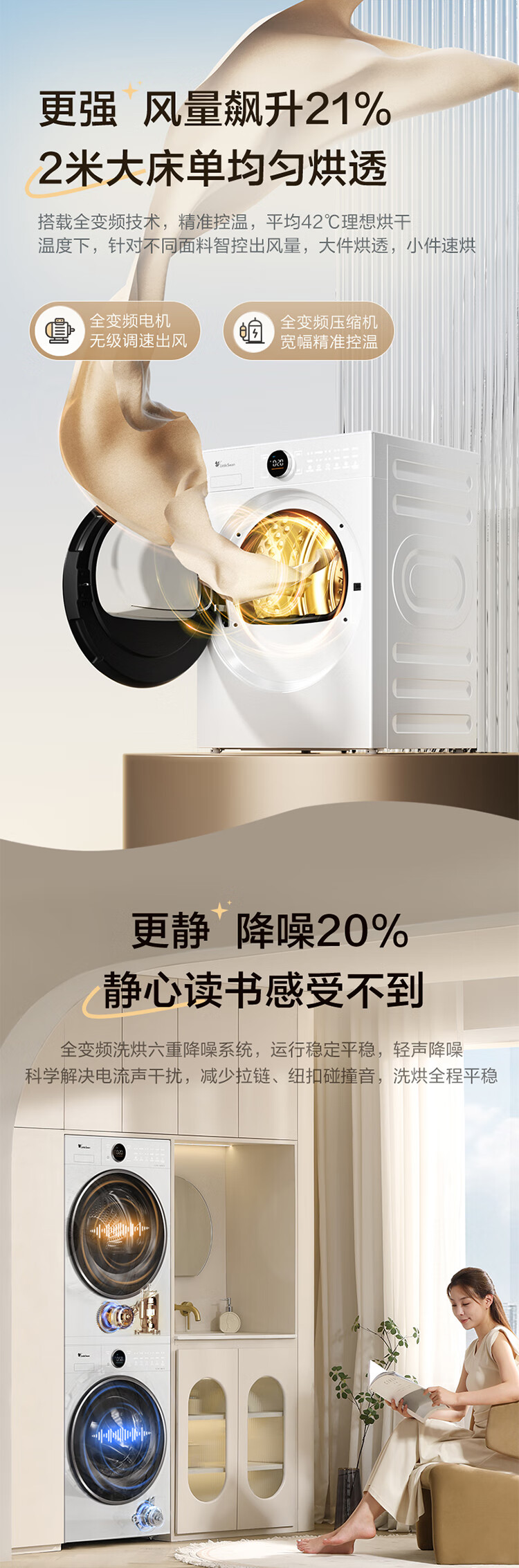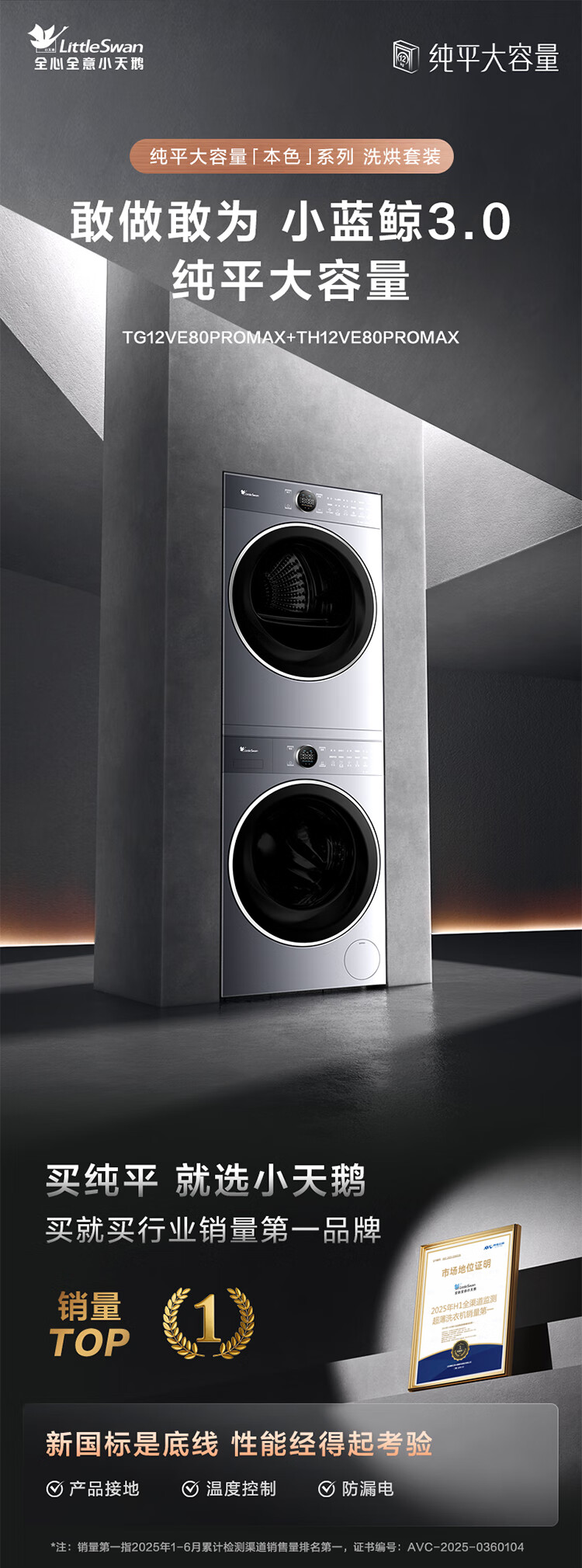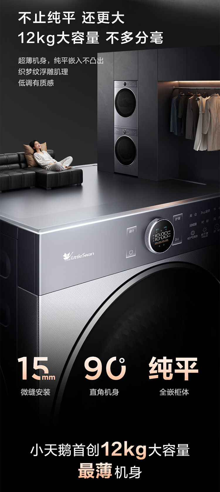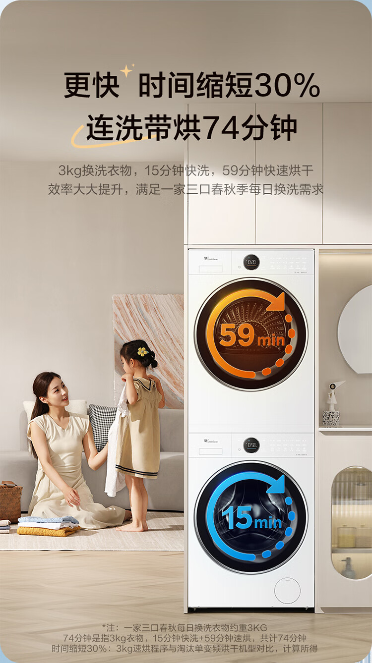 小天鹅(LittleSwan)洗烘套装大容量滚筒洗衣机+热泵烘干机全变频国际羊毛双标认证蓝氧护色除菌纯平全嵌 12VE80PROMAX+80P【小蓝鲸3.0】