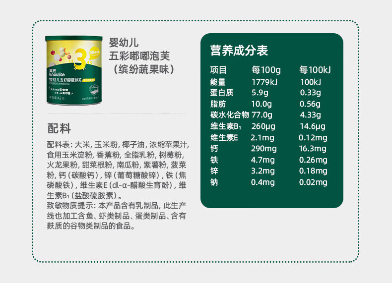 英氏婴幼儿谷物牛肉快冲粥营养即食婴儿冲泡粥宝宝辅食粥 (牛肉甘蓝番茄) 50g*1盒