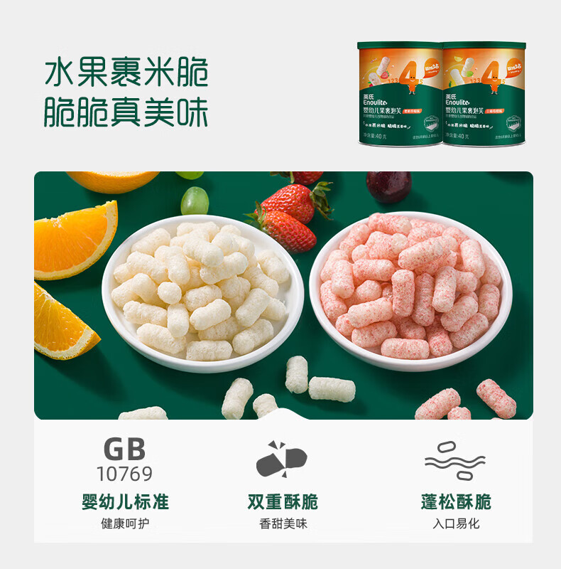 英氏【买一送1】英氏婴幼儿宝宝零食任选 溶豆泡芙米饼饼干爆米花 4阶 泡芙(樱桃草莓味)38g