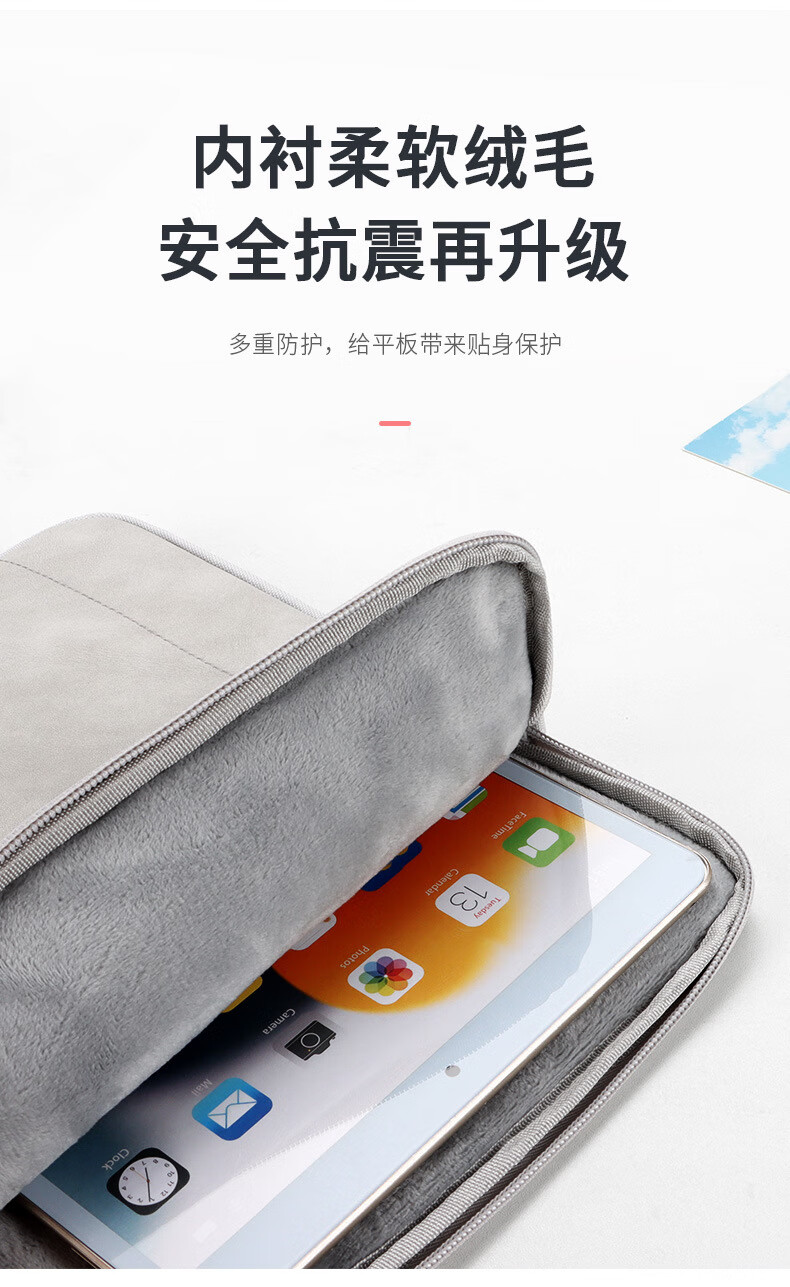 【精选直发】ipad平板电脑包内胆包手提收纳包适合商务出行轻薄可 浅灰色 9.7-10.8寸通用(适用IPAD新款11寸
