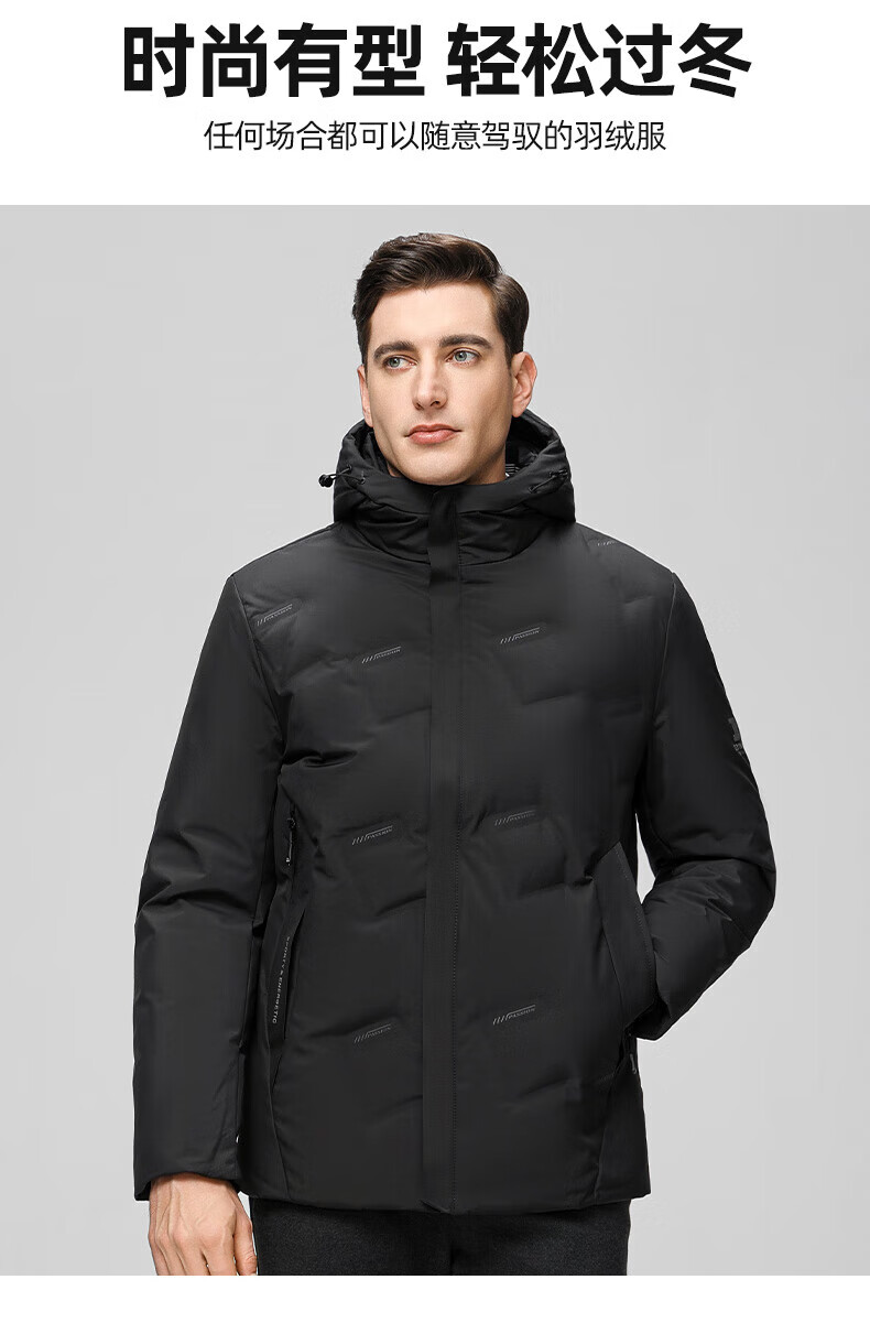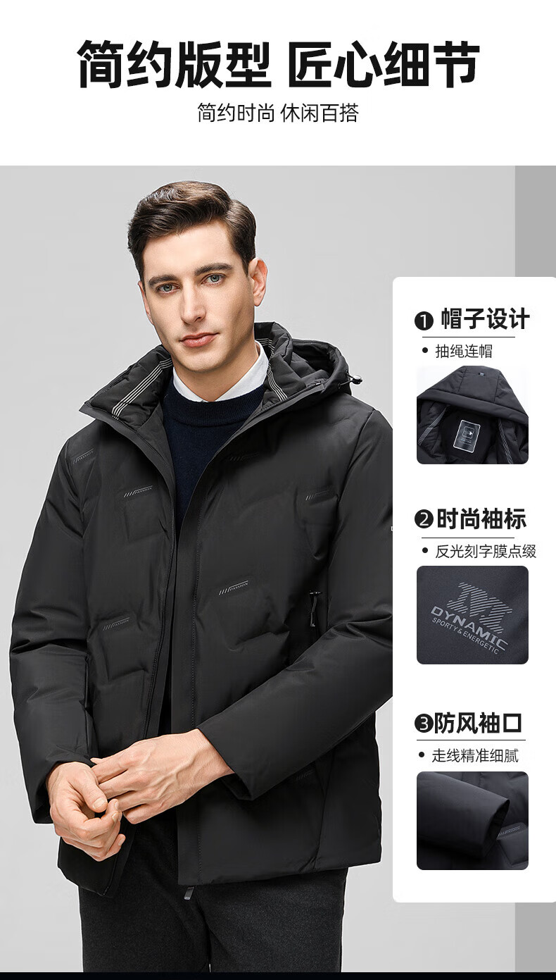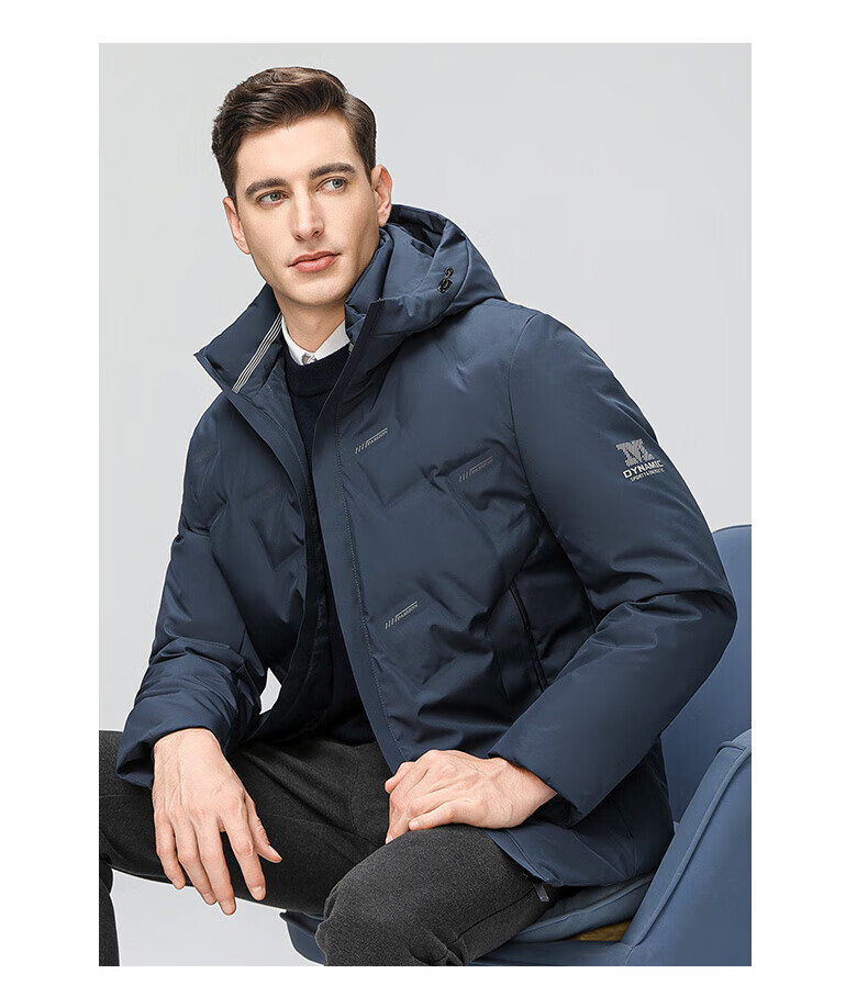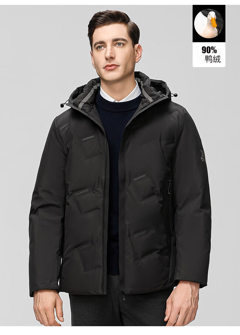 鸭鸭(YAYA)羽绒服男连帽立领短款厚款保暖中青年冬季新款休闲户外工装外套 藏青 XL 180 (建议125-140斤)