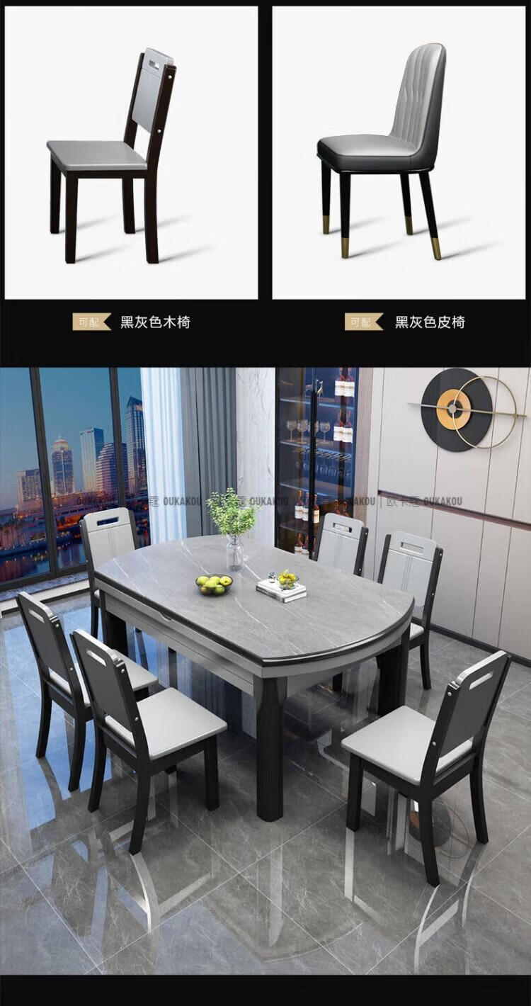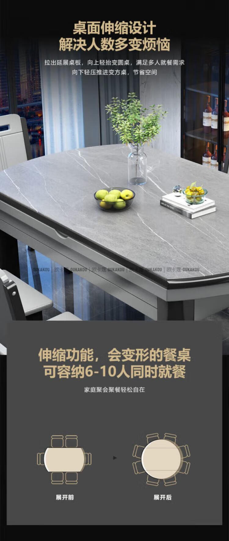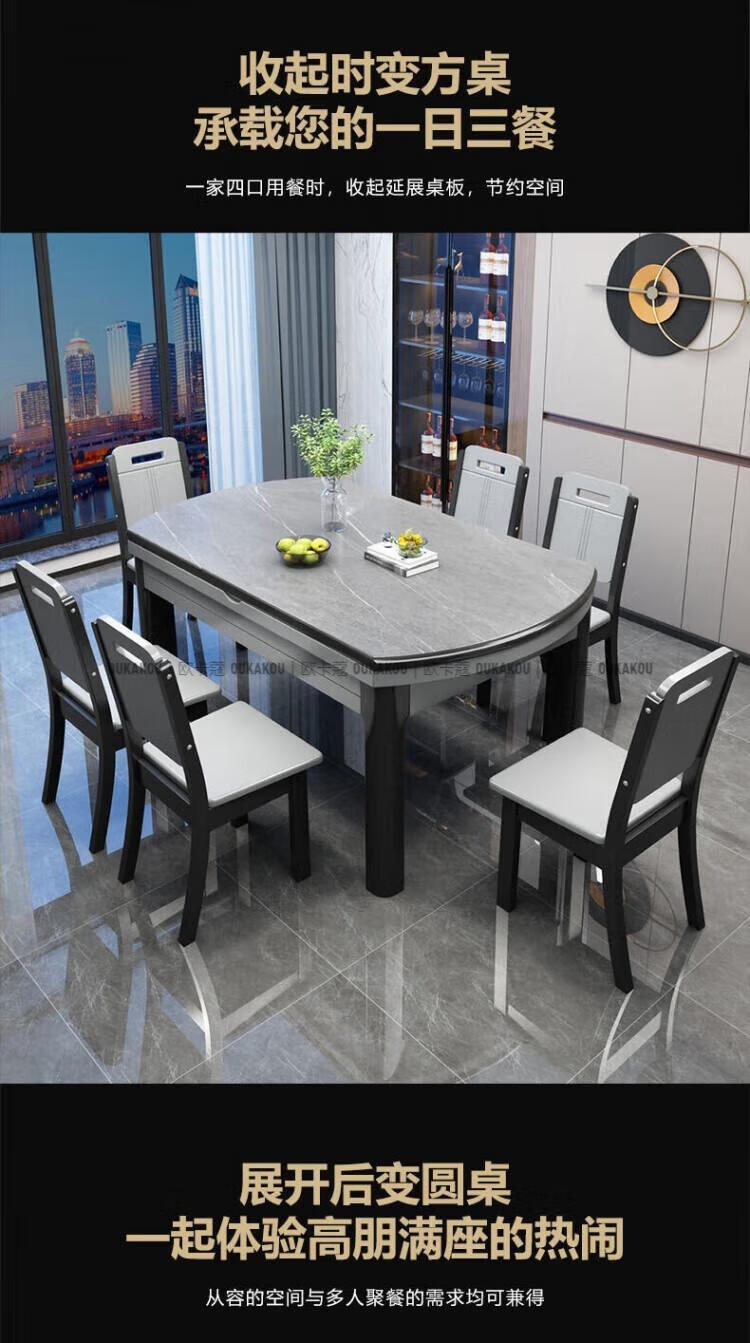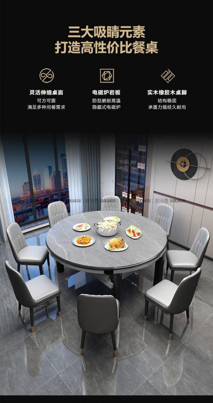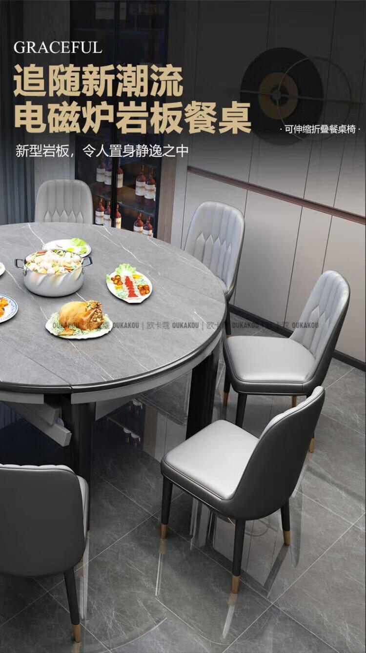 欧卡蔻2026新款岩板餐桌椅组合现代简约轻奢可伸缩折叠大小户型家用饭桌 配木椅【进口岩板】 1.35m 一桌四椅【不带电磁炉】.