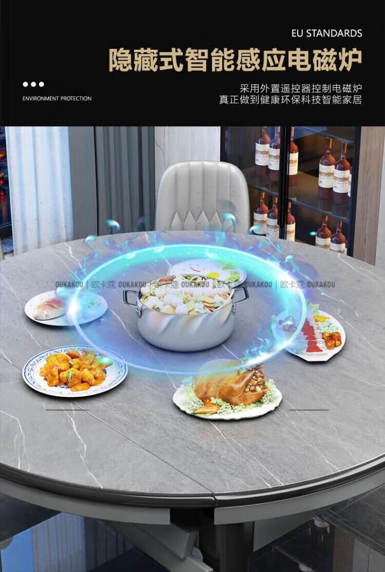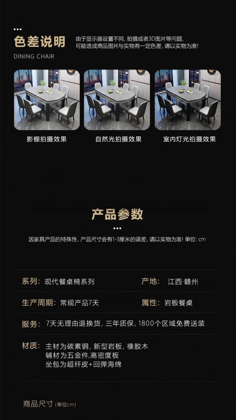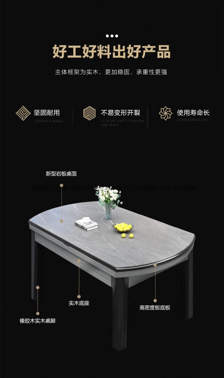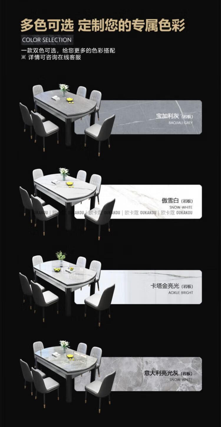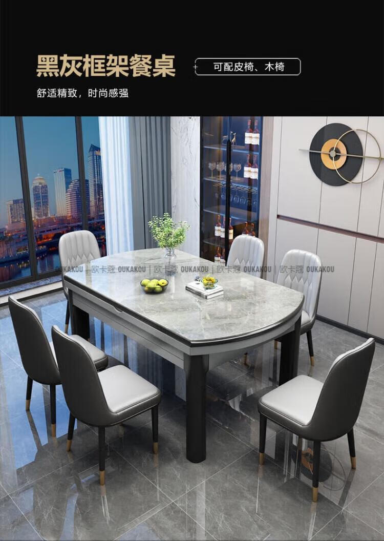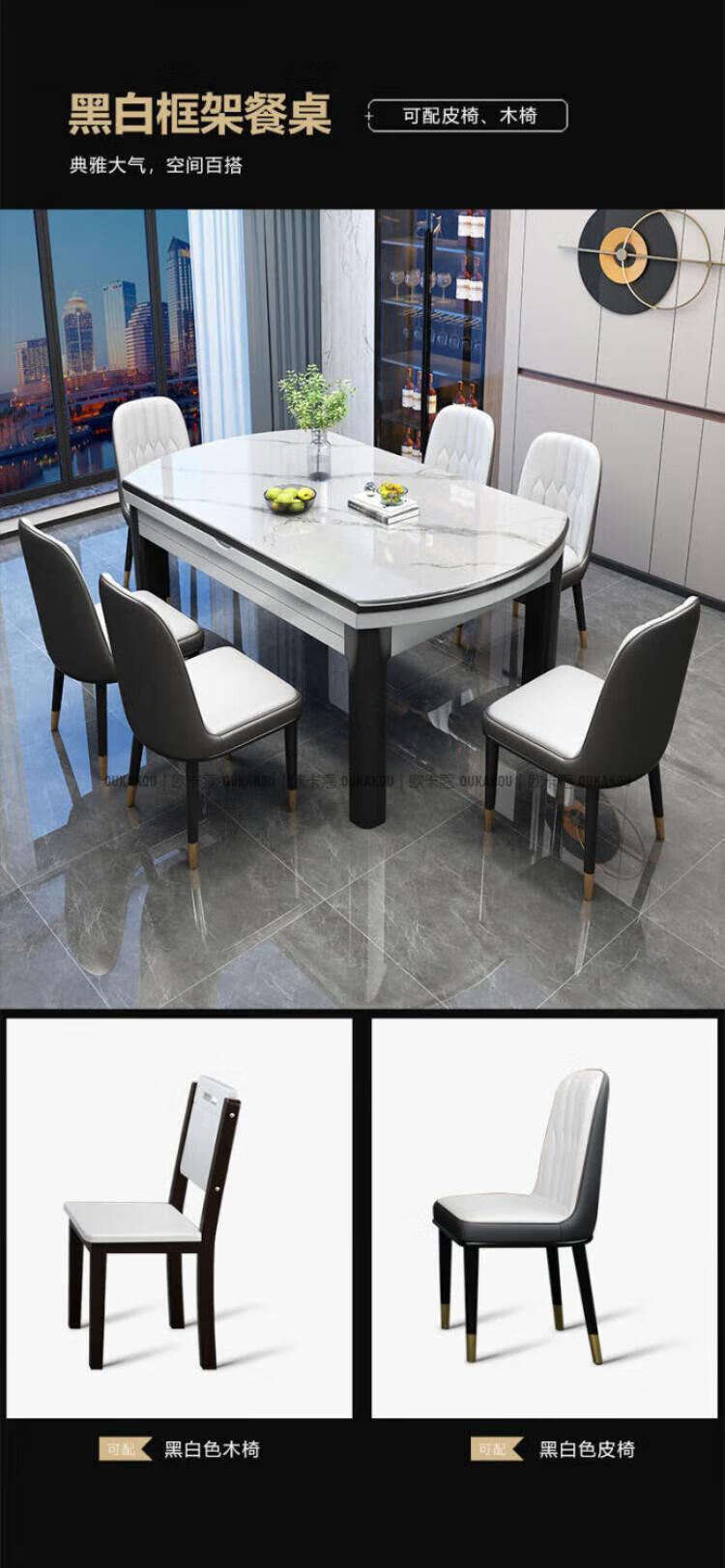 欧卡蔻2026新款岩板餐桌椅组合现代简约轻奢可伸缩折叠大小户型家用饭桌 配木椅【进口岩板】 1.35m 一桌四椅【不带电磁炉】.