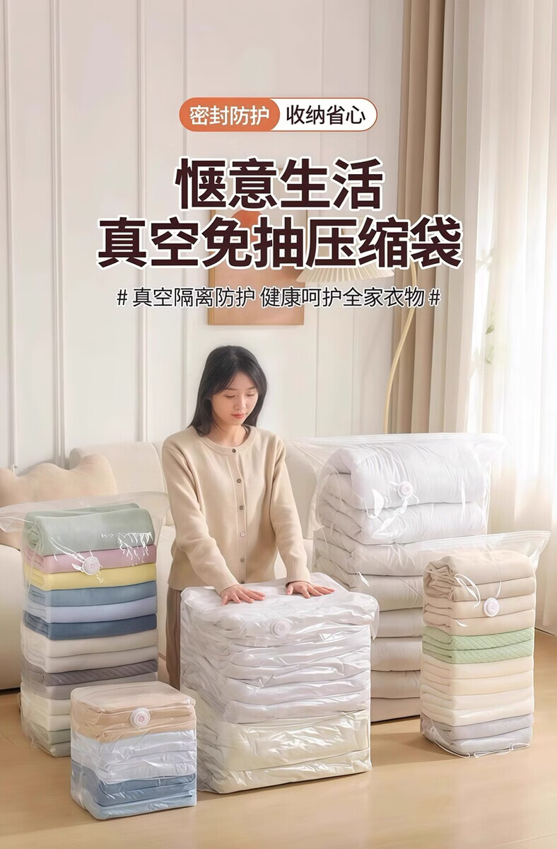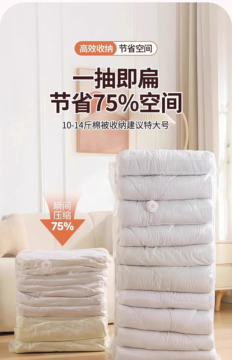 溥畔真空压缩袋装棉被子衣物收纳袋学生行李免抽气搬家打包袋宿舍家用 免抽真空袋特大号[2个装]适用被子储存