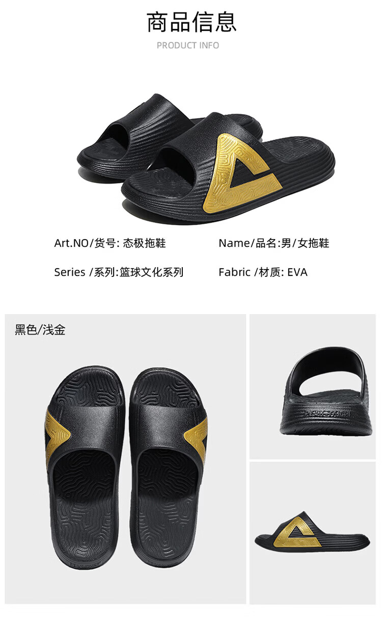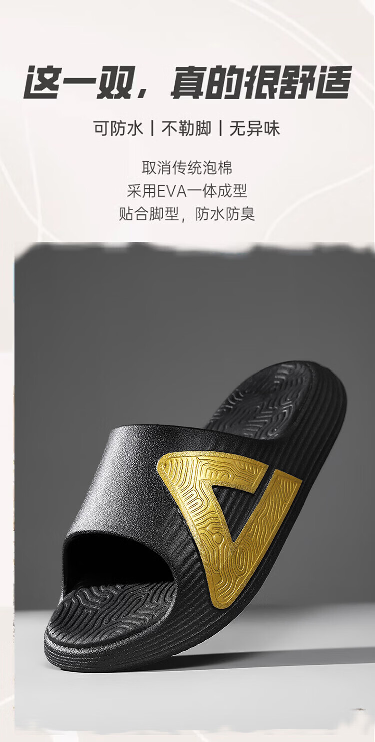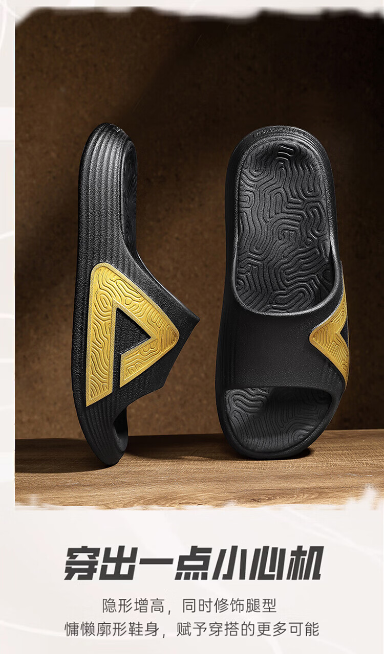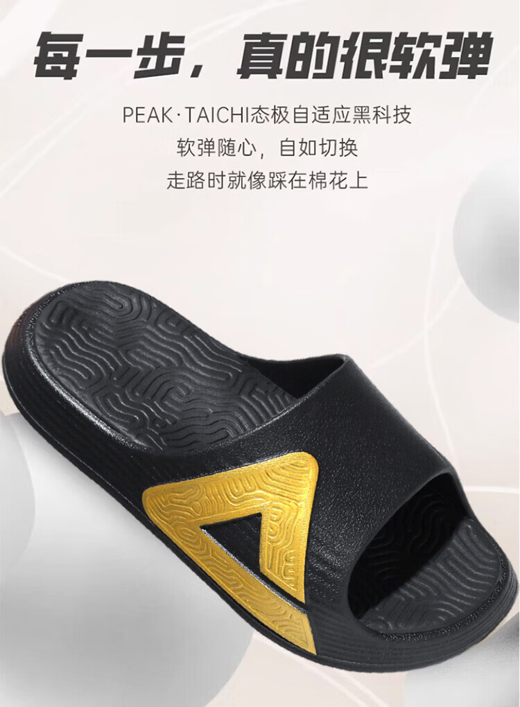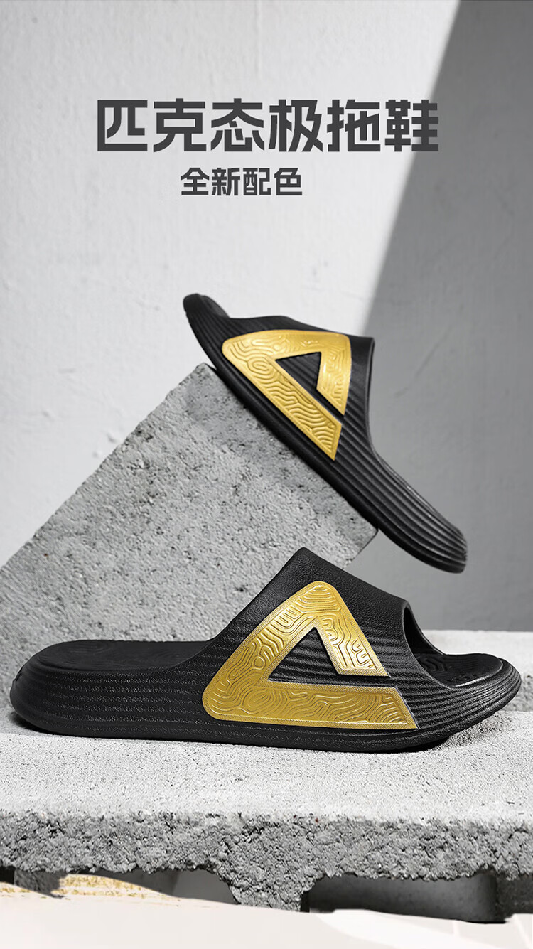 匹克(PEAK)态极拖鞋夏季情侣外穿厚底防滑户外室内家居浴室凉拖鞋 黑色/浅金 42