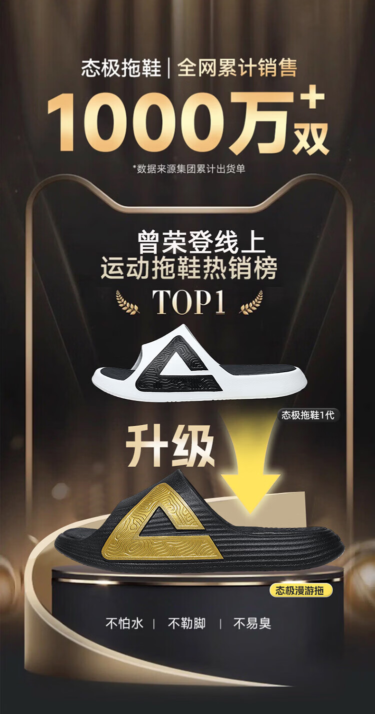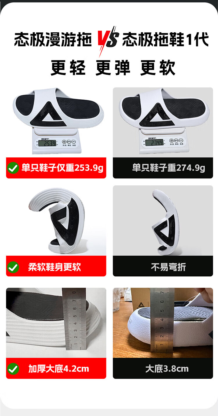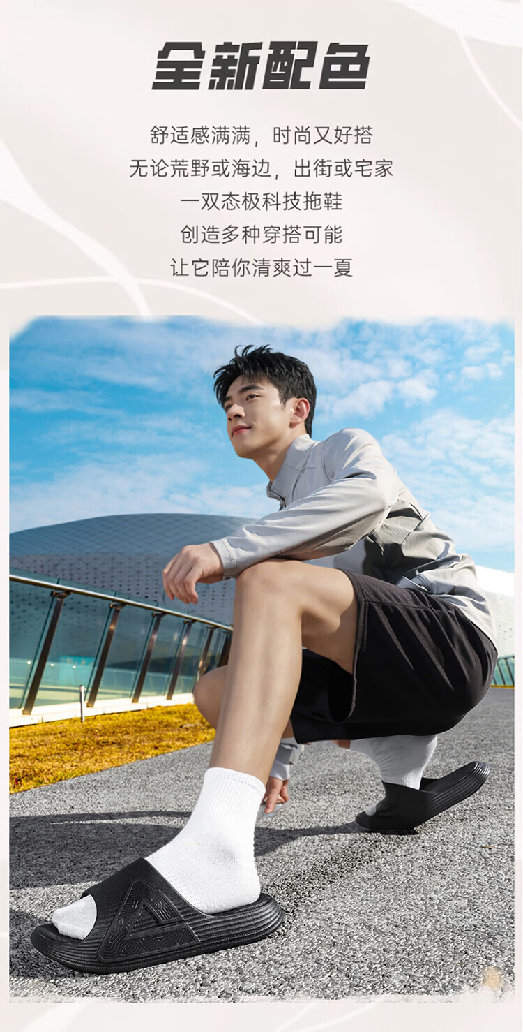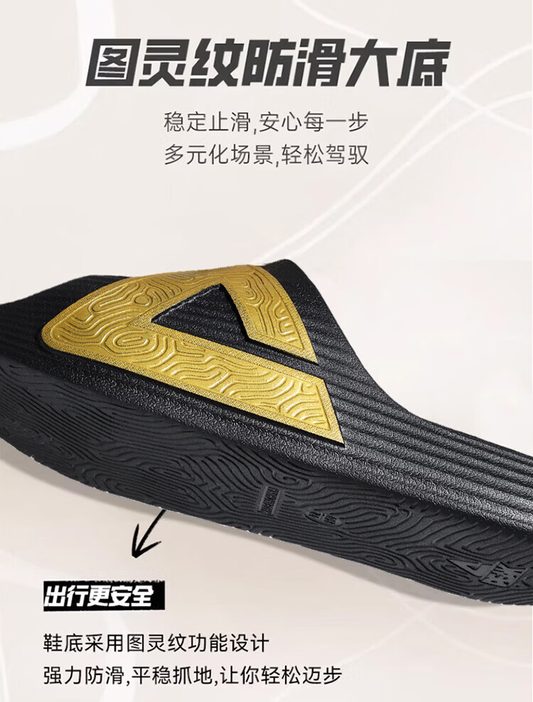 匹克(PEAK)态极拖鞋夏季情侣外穿厚底防滑户外室内家居浴室凉拖鞋 黑色/浅金 42