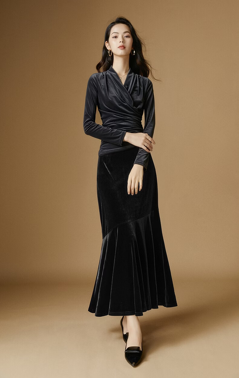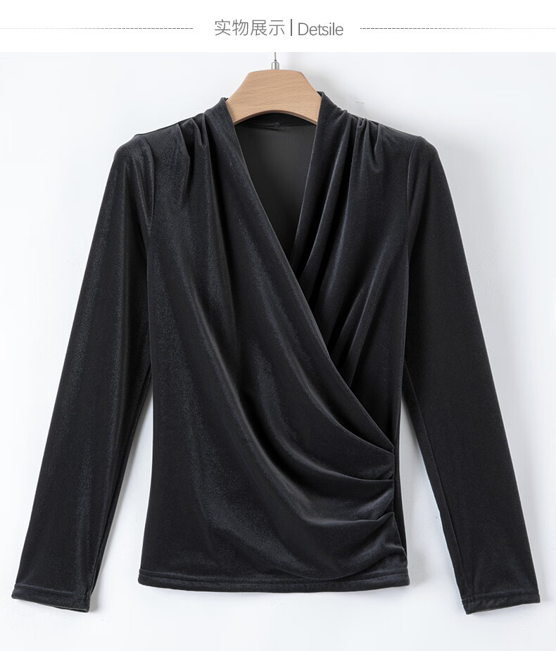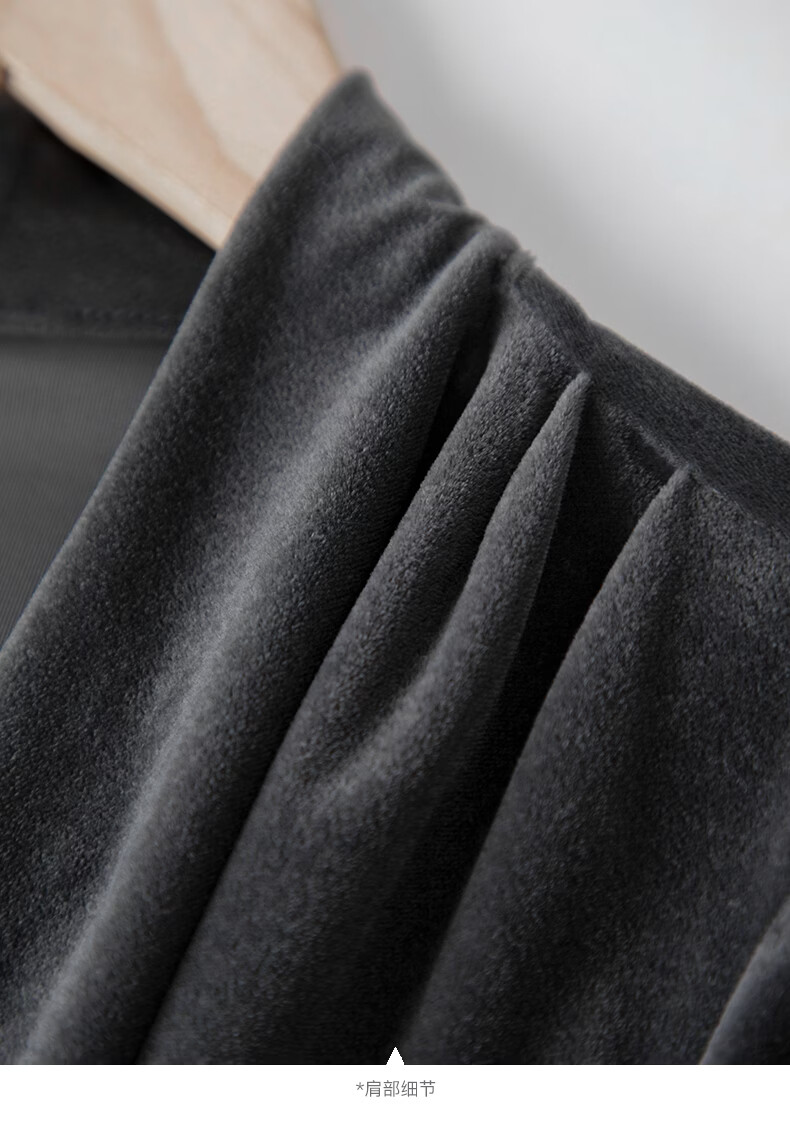 晚白【断码清仓】2026春款时尚优雅V领丝绒上衣弹力修身亲肤打底衫女 灰色 2XL