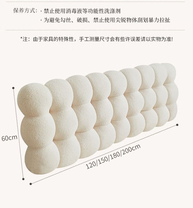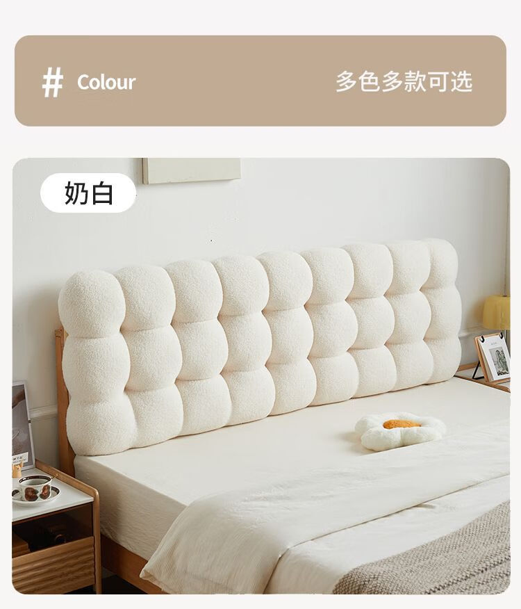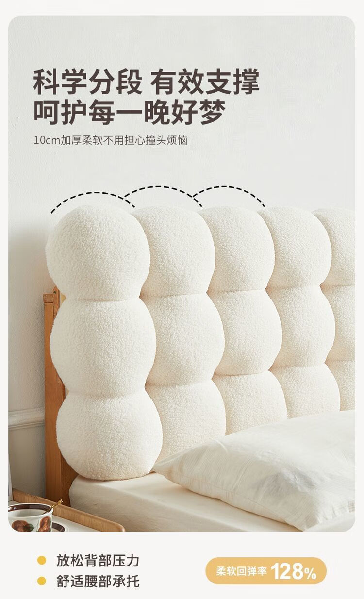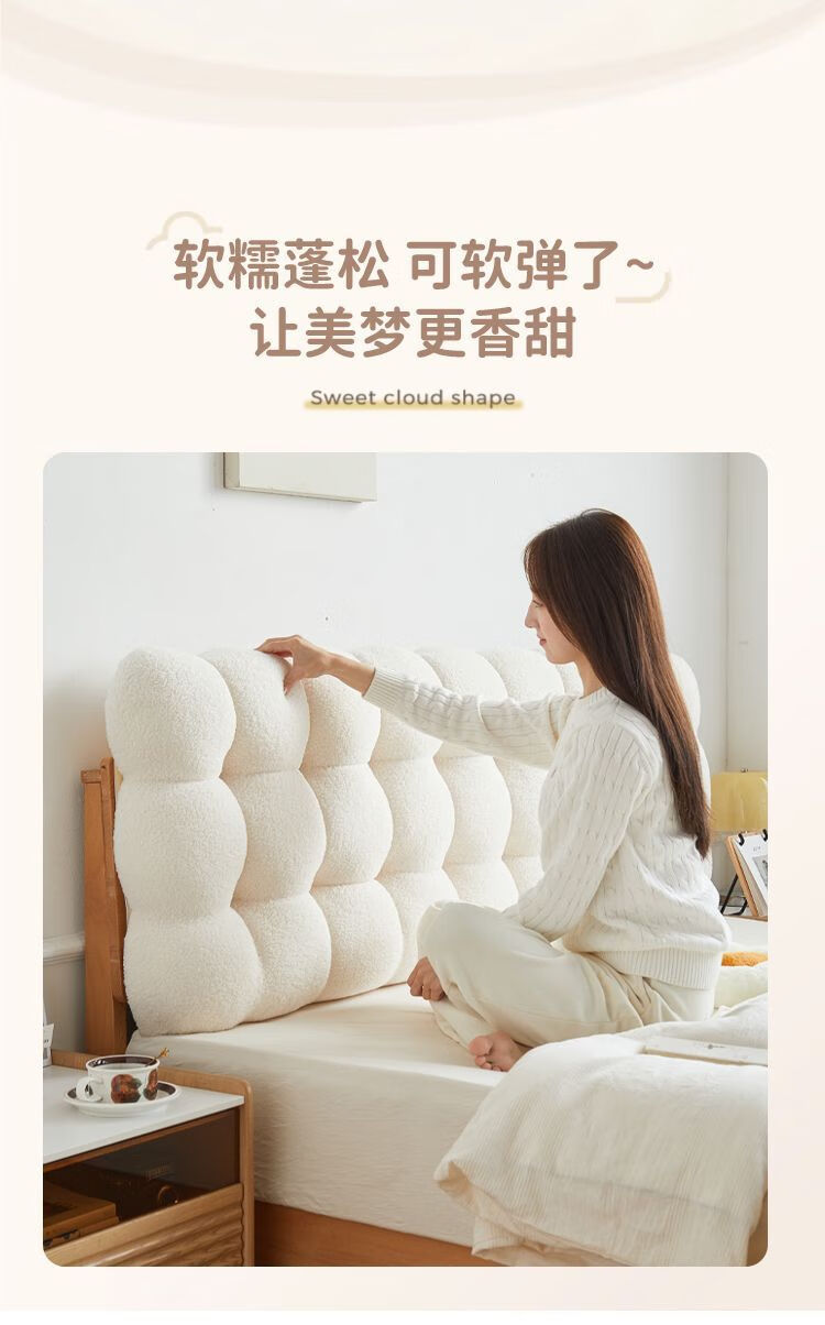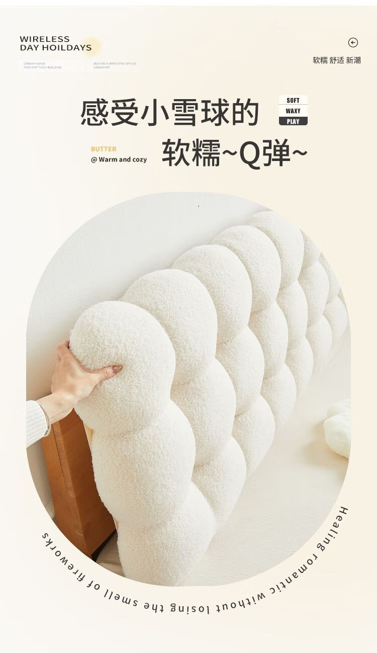 欣慕雅小雪球床头软包靠背垫榻榻米无床头靠垫奶油风2025新款大靠枕定制 奶白色*有床头使用 长90*高60*厚10CM(小雪球款)